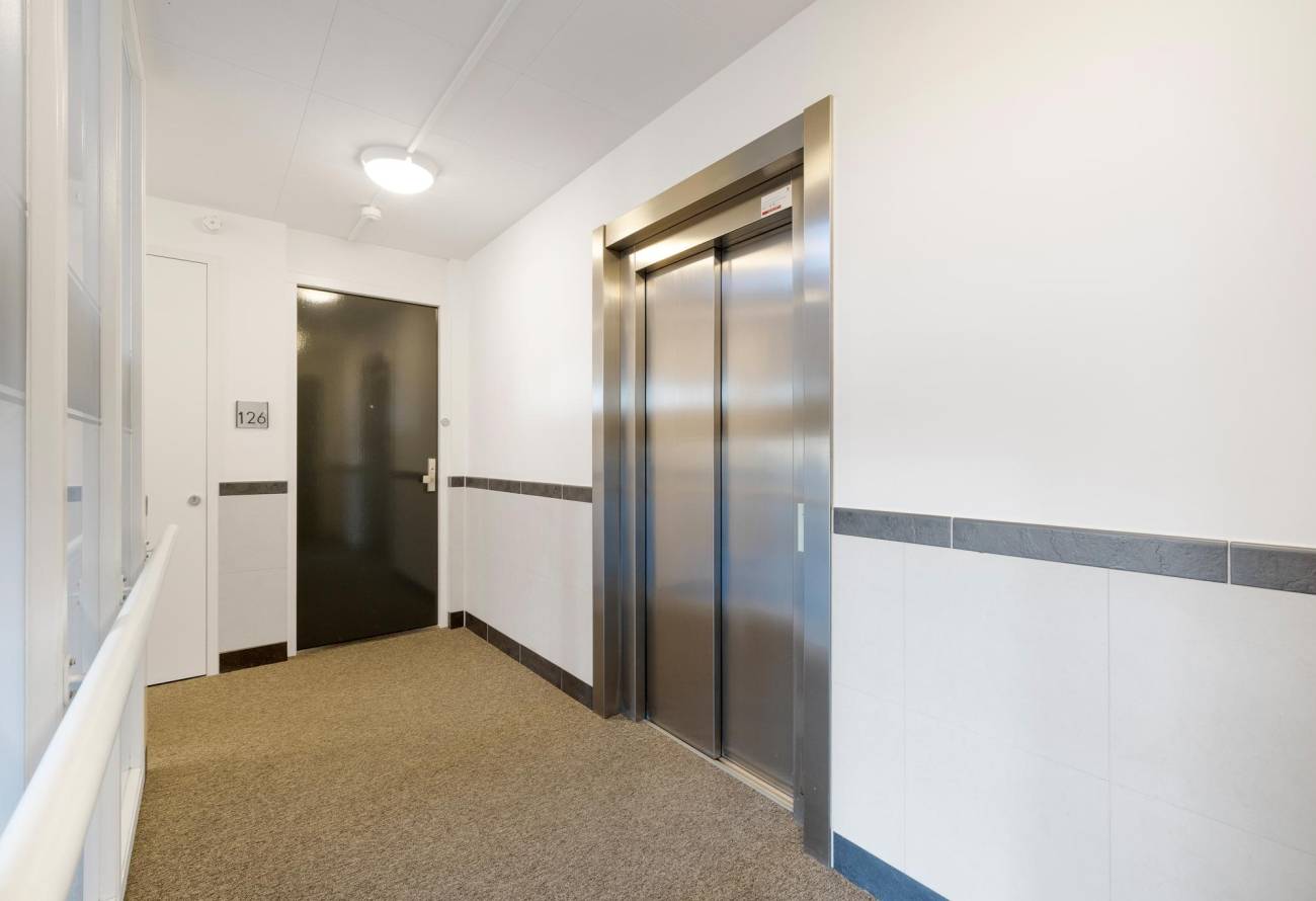 • Trap en lift naar de ingang van het complex