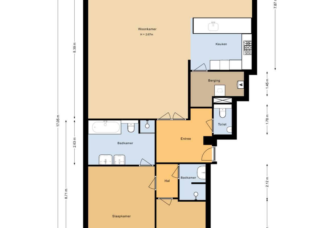 | Badkamers | 2 badkamers, 1 aparte toiletten |