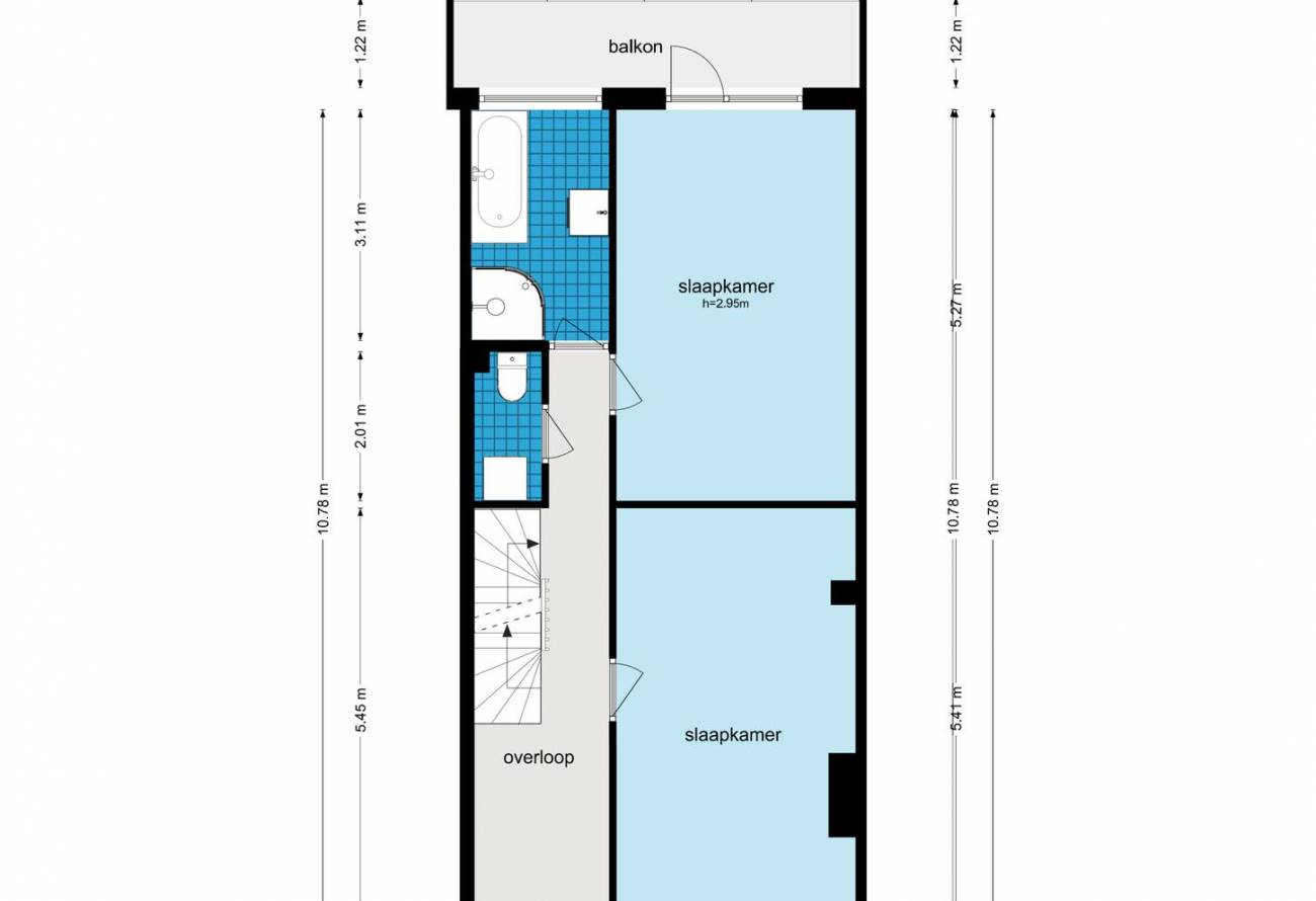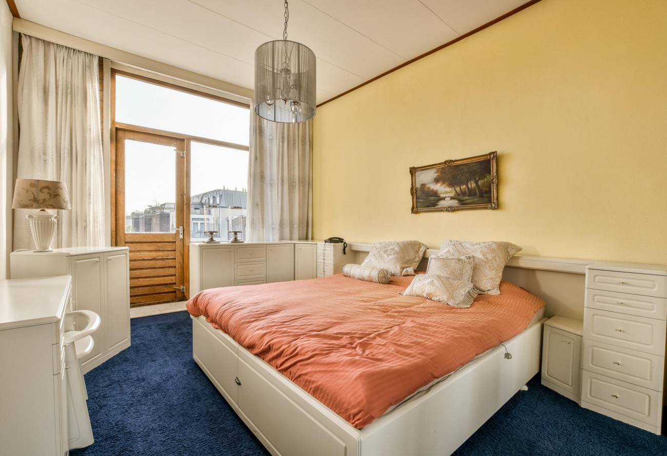 De slaapkamer aan de achterzijde heeft een deur naar een ruim balkon. De naastgelegen badkamer heeft eveneens zicht op het balkon.