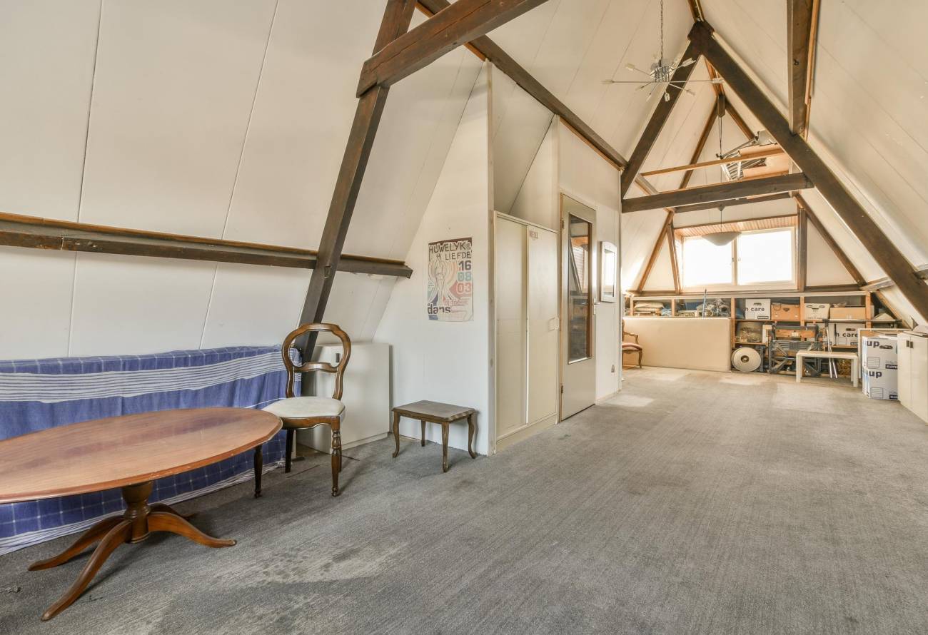 Vanuit de overloop is er een vaste trap naar de 2e etage met zeer grote nog vrij in te delen ruimte met twee kleine dakkapellen welke thans in gebruik is als opbergzolder.
