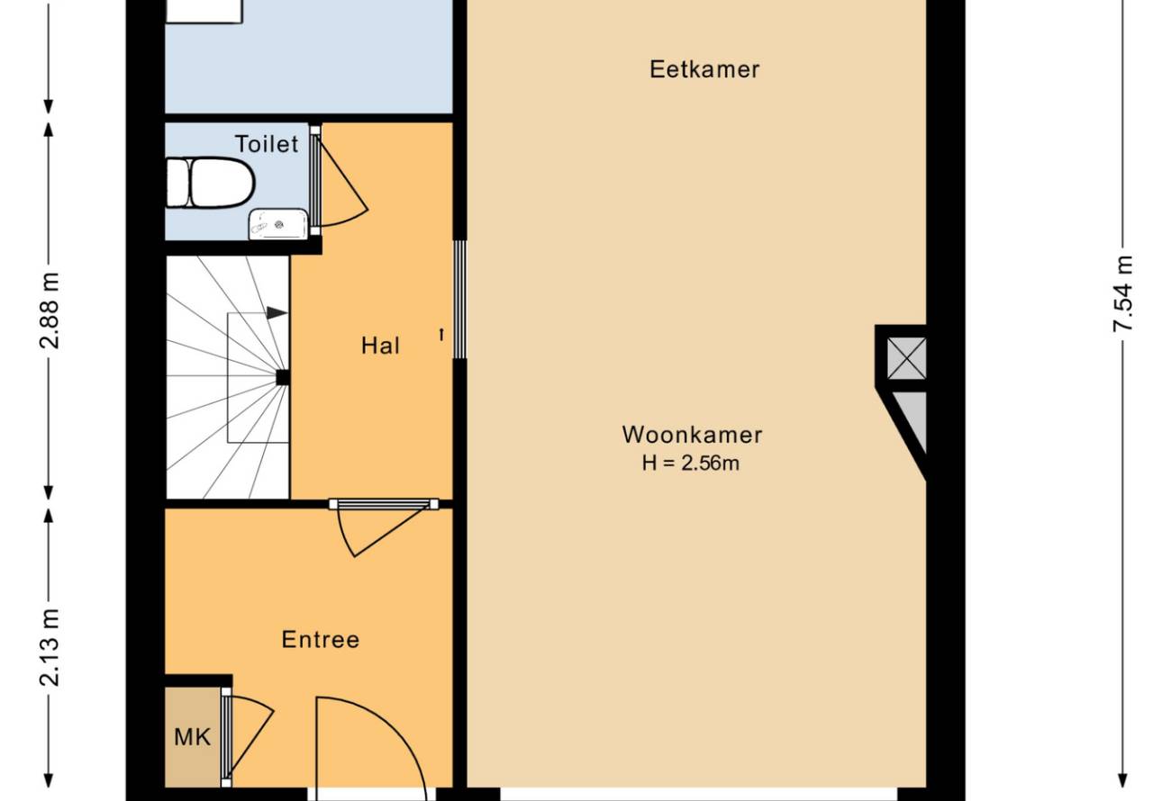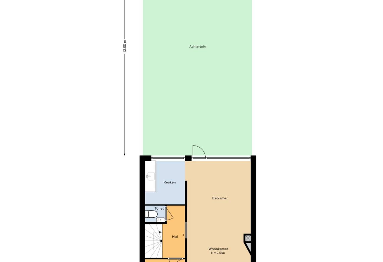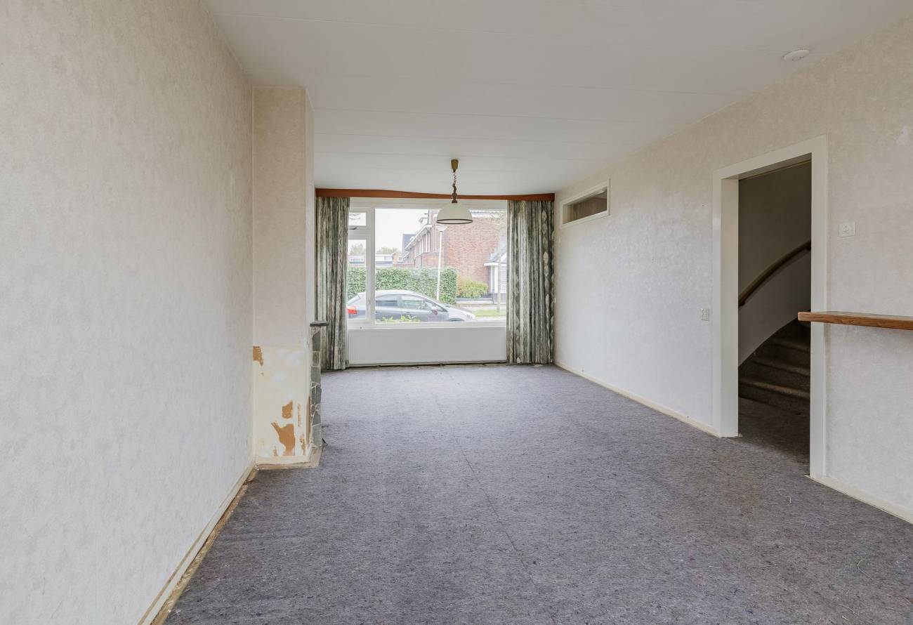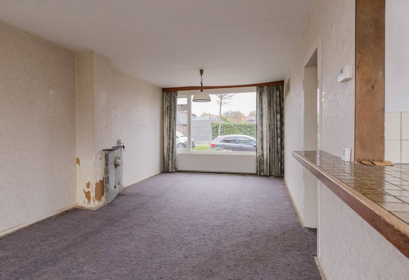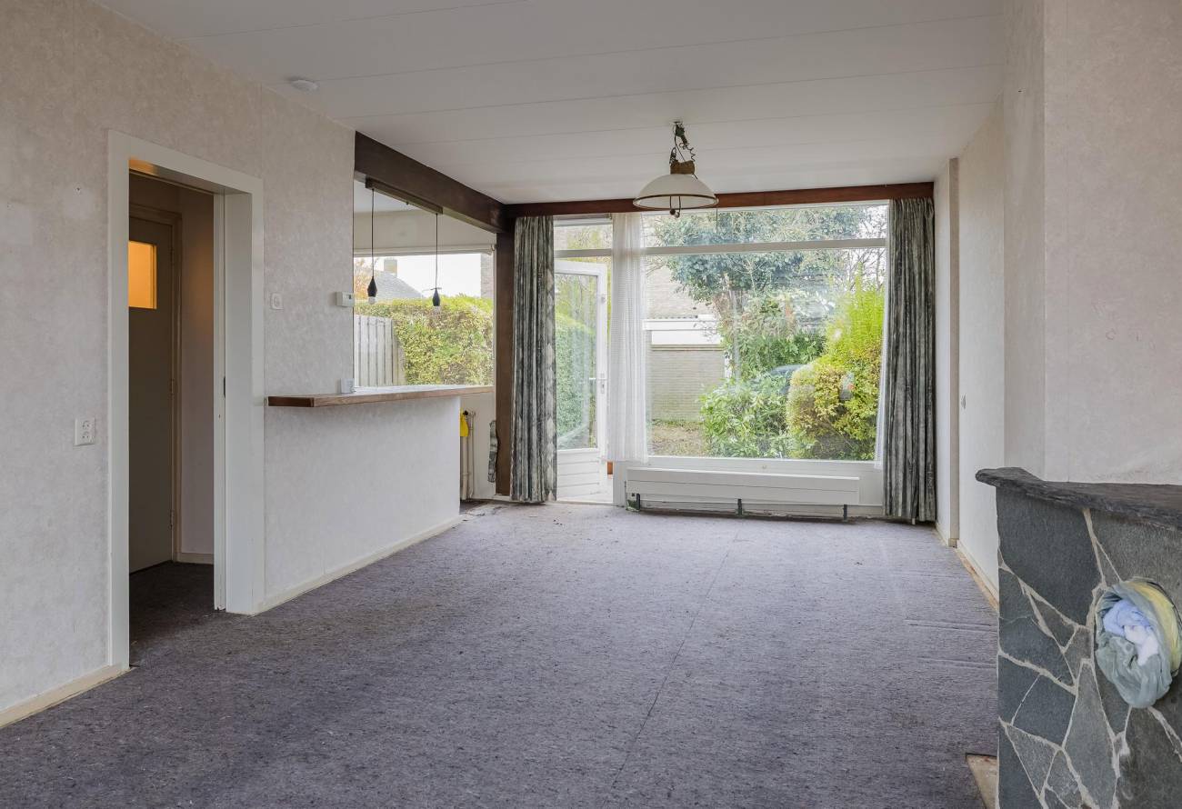Entree brede vestibule hal met meterkast en toegang tot het toilet. Lichte doorzonwoonkamer met half-openkeuken. Mogelijkheid is om de woonkamer en keuken uit te bouwen.