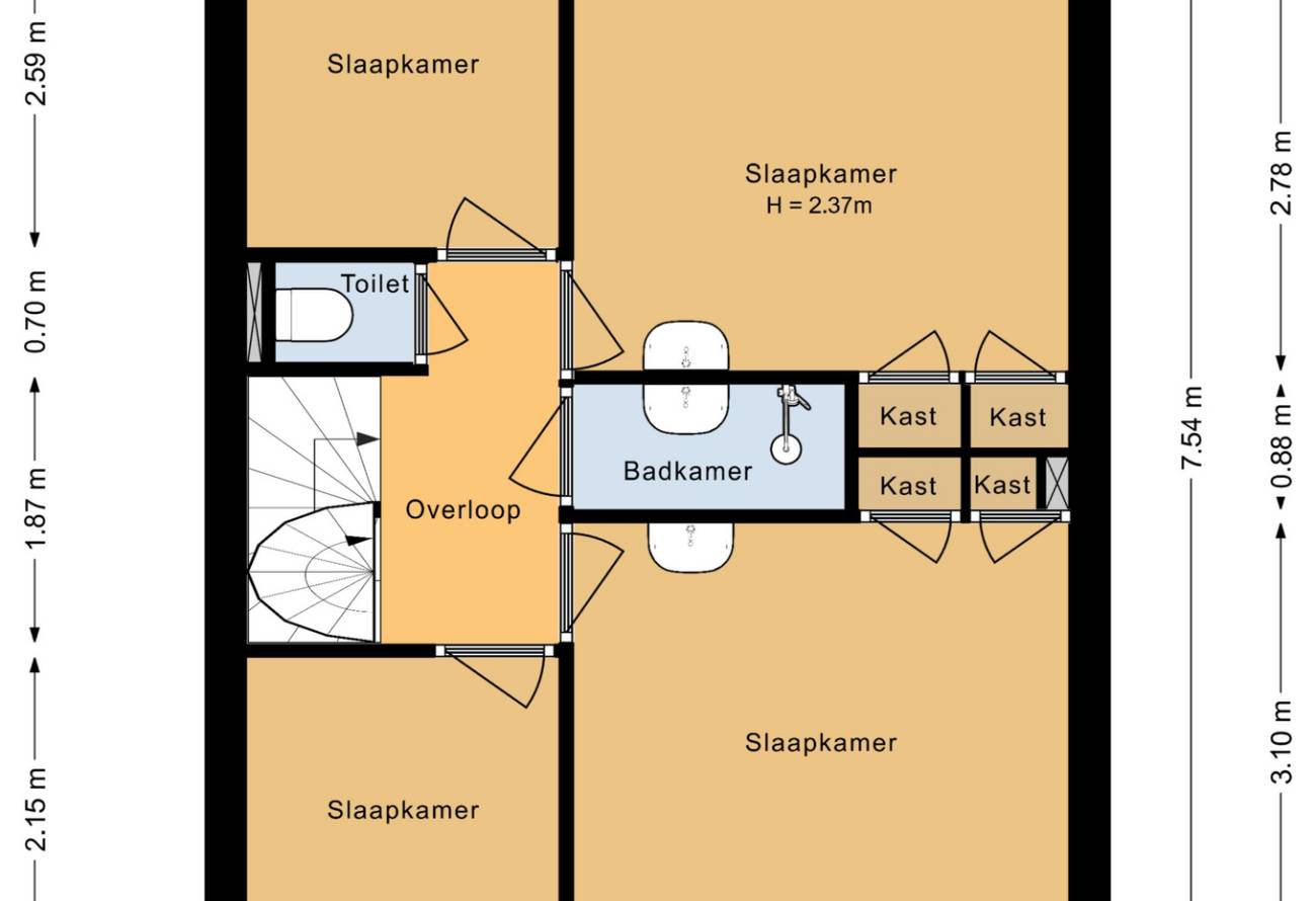 Op deze verdieping zijn maar liefst 4 slaapkamers en de badkamer is in midden gesitueerd. De hoofdslaapkamer bevindt zich aan de voorzijde en is voorzien van inbouwkasten. Met de huidige indeling is er na verbouwing veel mogelijk, bijvoorbeeld één master bedroom met eigen walk in closet.