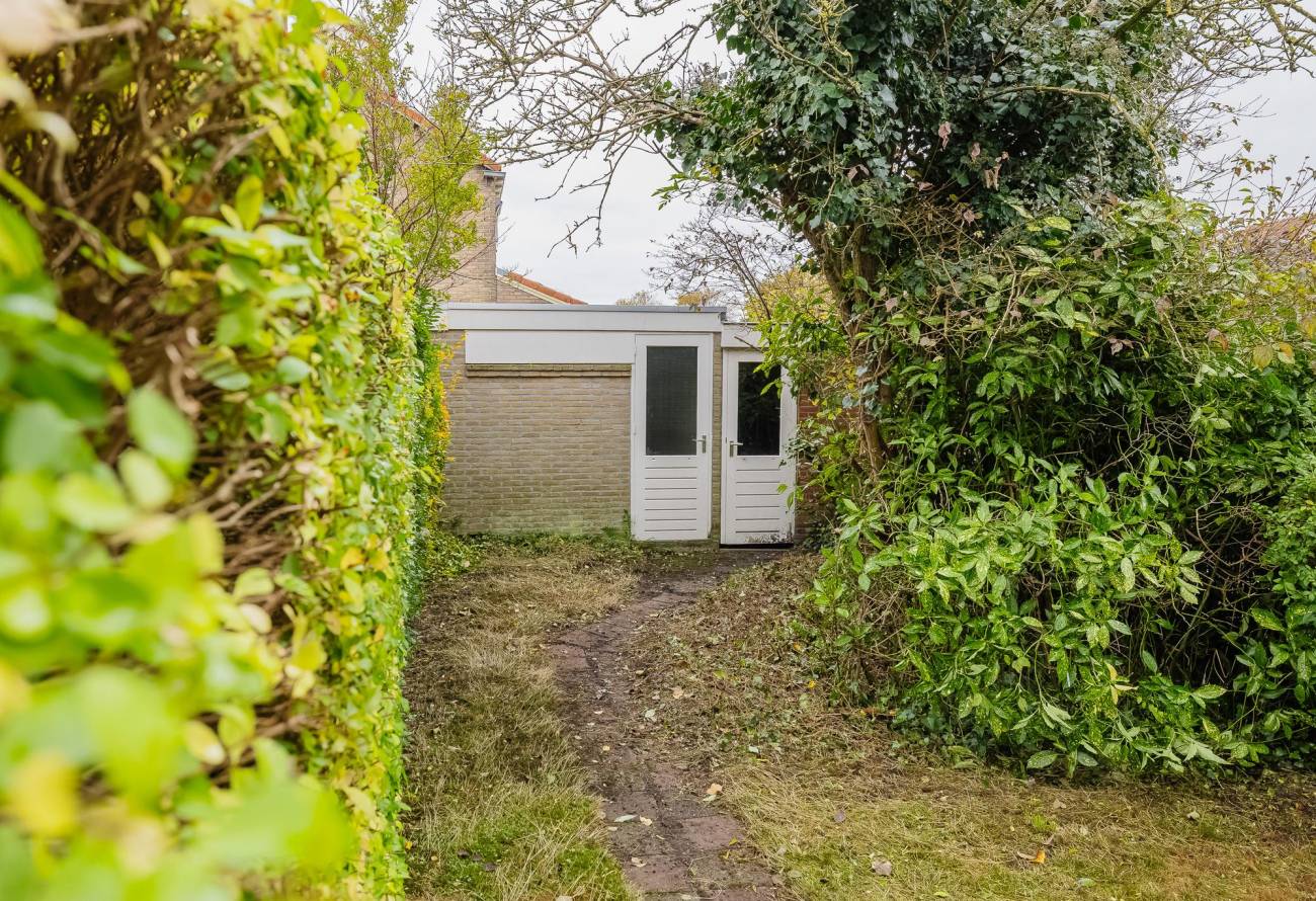 Diepe achtertuin van 12 meter, welke is gelegen op het zonnige zuidwesten. Achterin de tuin bevinden zich twee vrijstaande stenen bergingen met achterom.