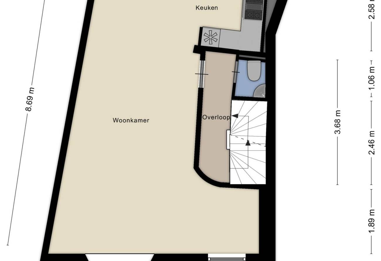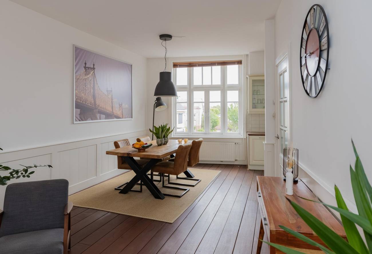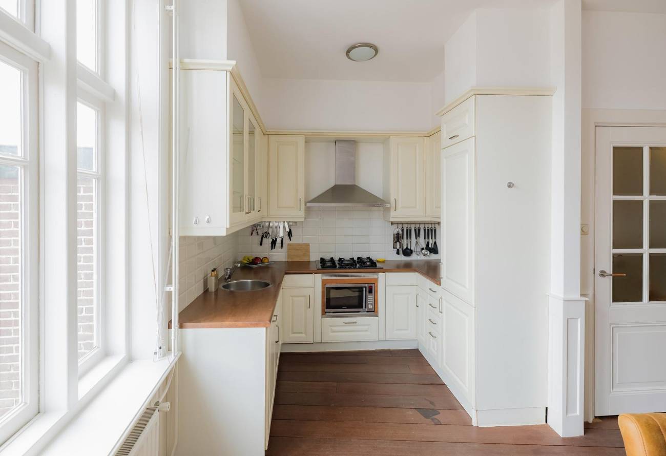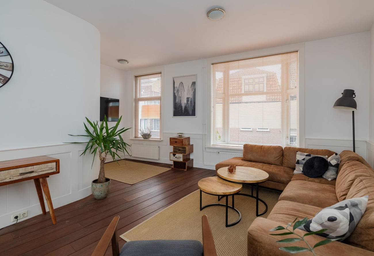 Via de entree aan de voorzijde bereik je dit charmante appartement boven een winkelpand (momenteel een kapsalon). Binnen stap je in een lichte woon-eetkamer met een frisse uitstraling en een nette open keuken voorzien van diverse inbouwapparatuur – als jij lekker staat te koken zitten je vrienden aan de grote eettafel.