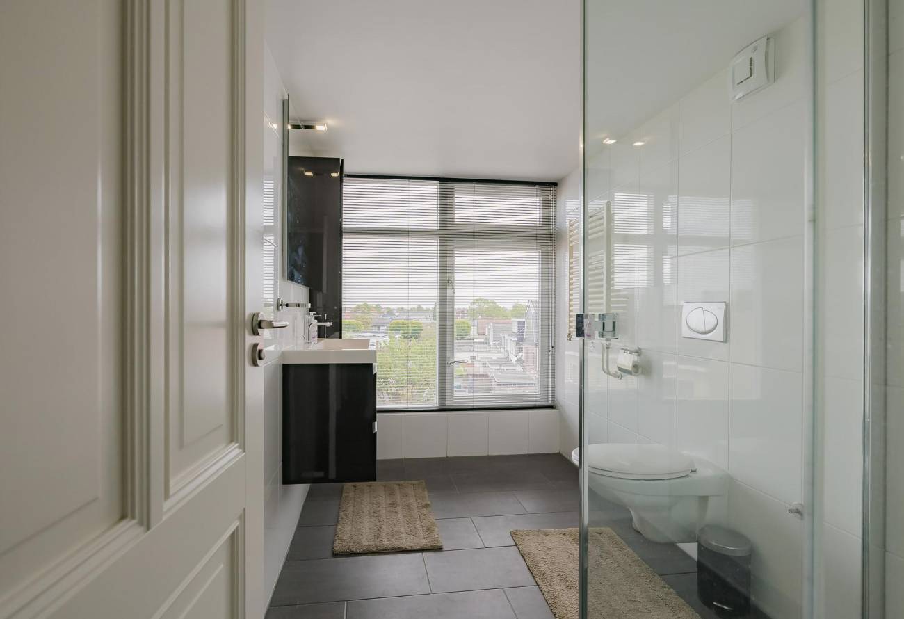 • Moderne badkamer met daglicht, uitzicht over Lisse, douche, tweede toilet en wastafel;