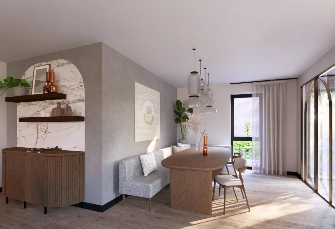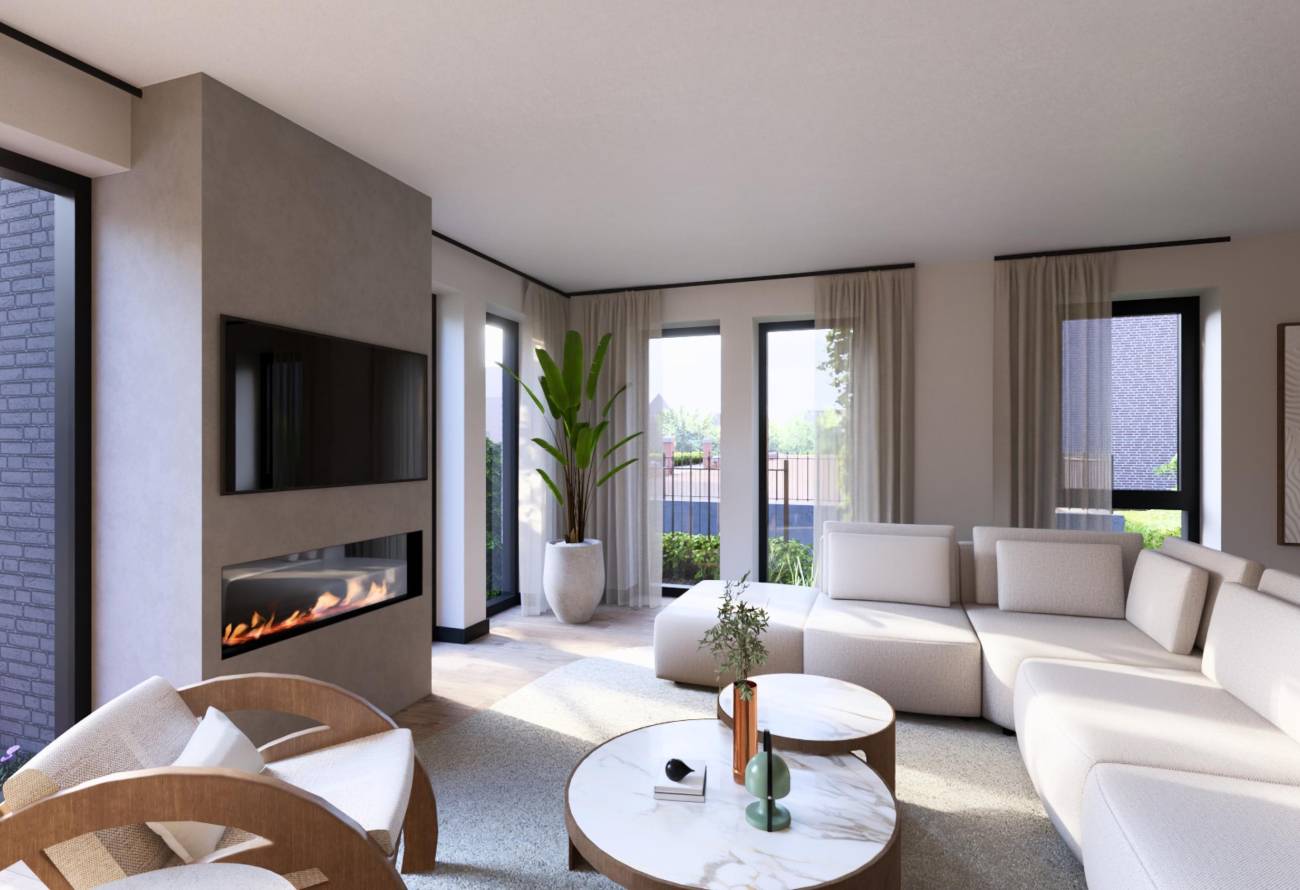 Zeer luxe en royaal geheel nieuw te bouwen appartement gelegen op de begane grond met voortuin, achtertuin en een oprit voor 2 privé parkeerplaatsen.