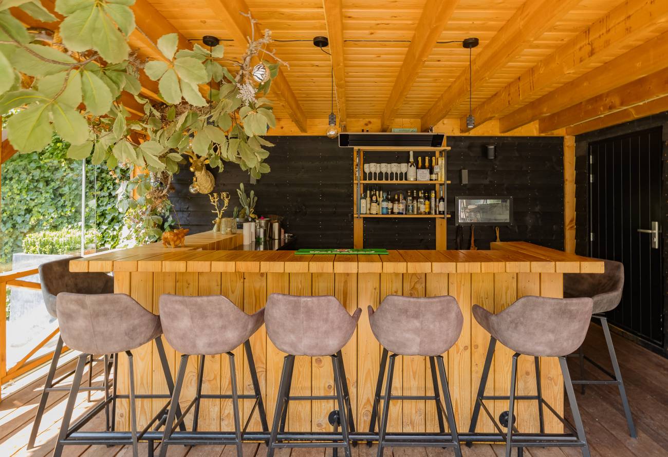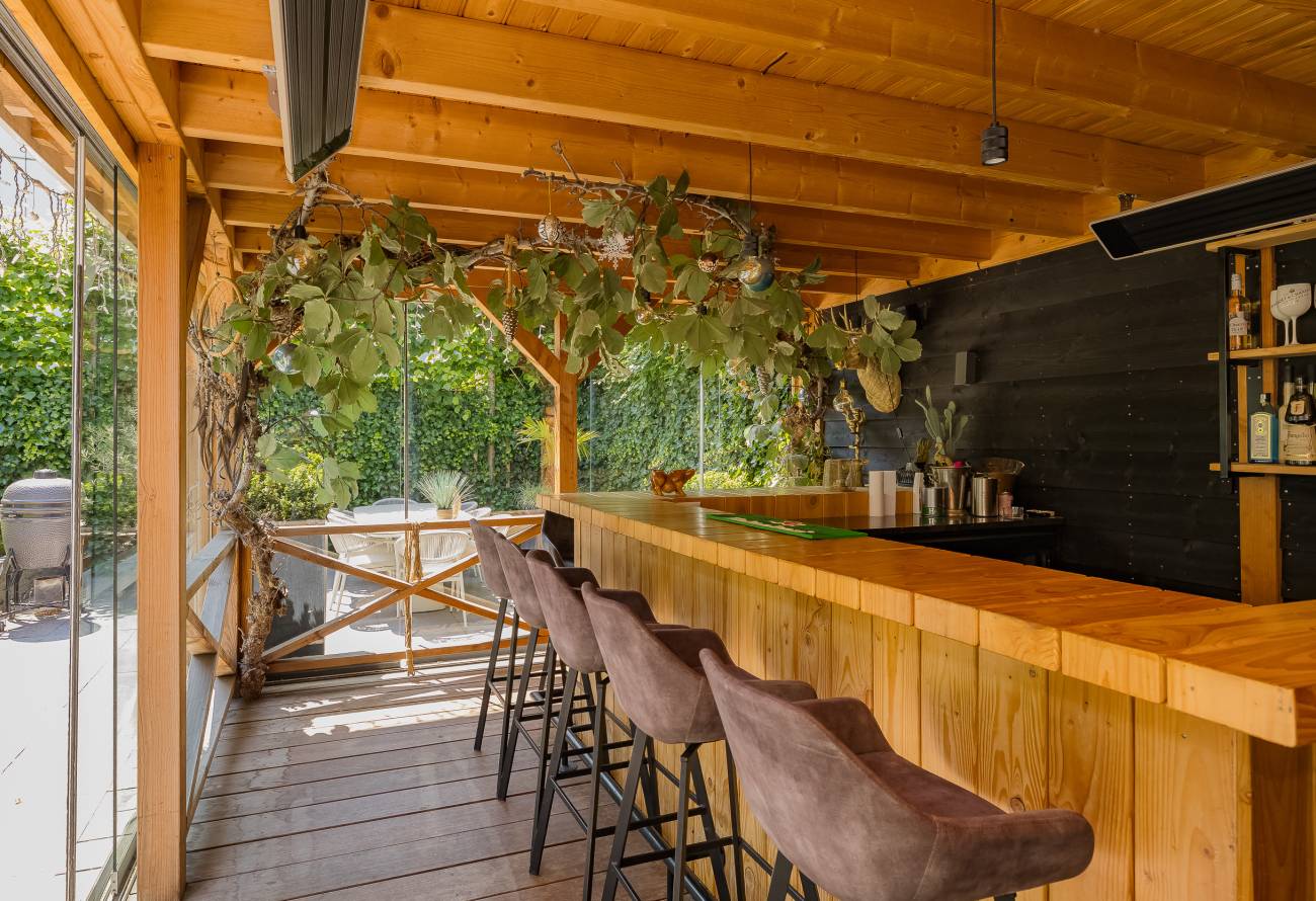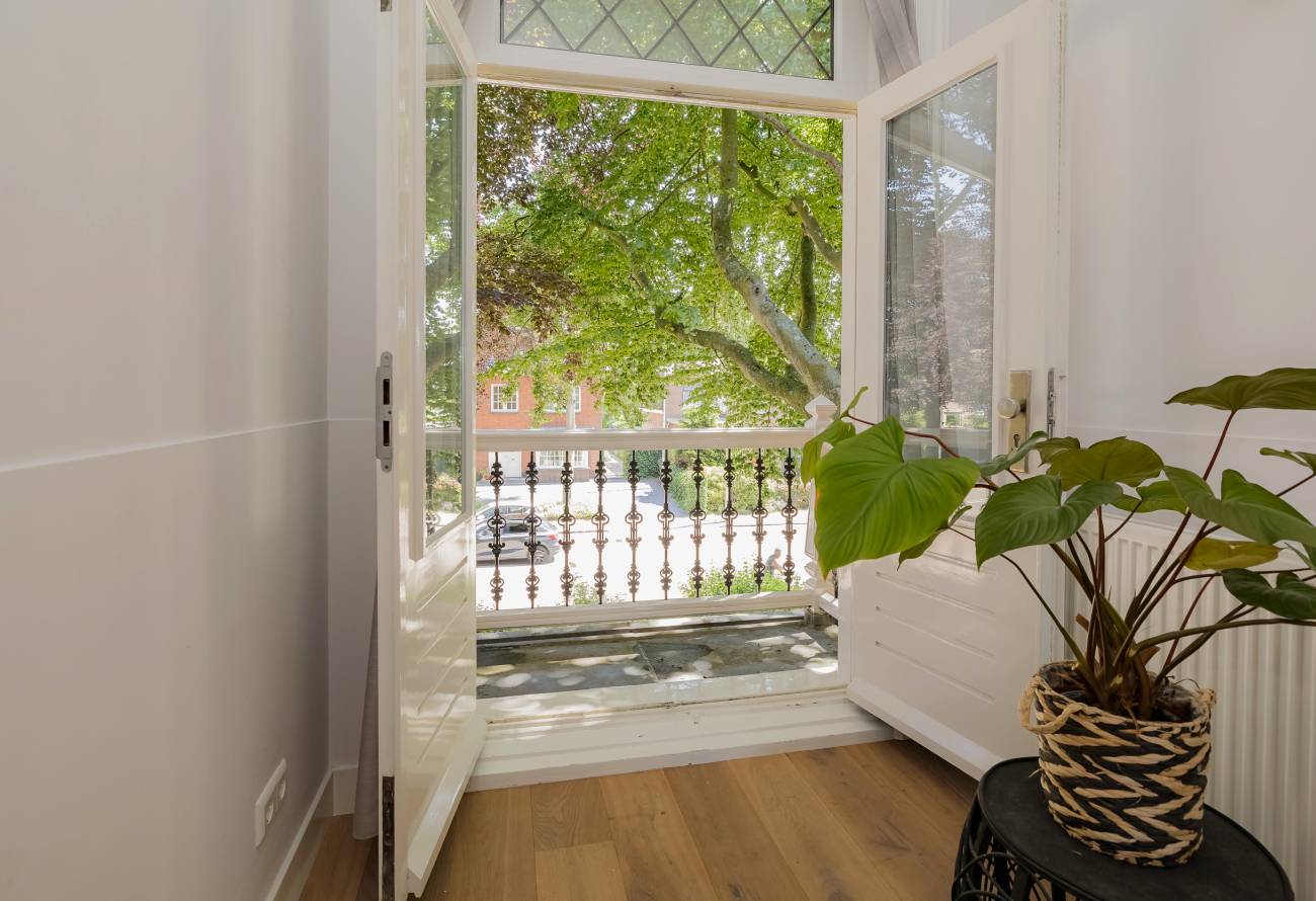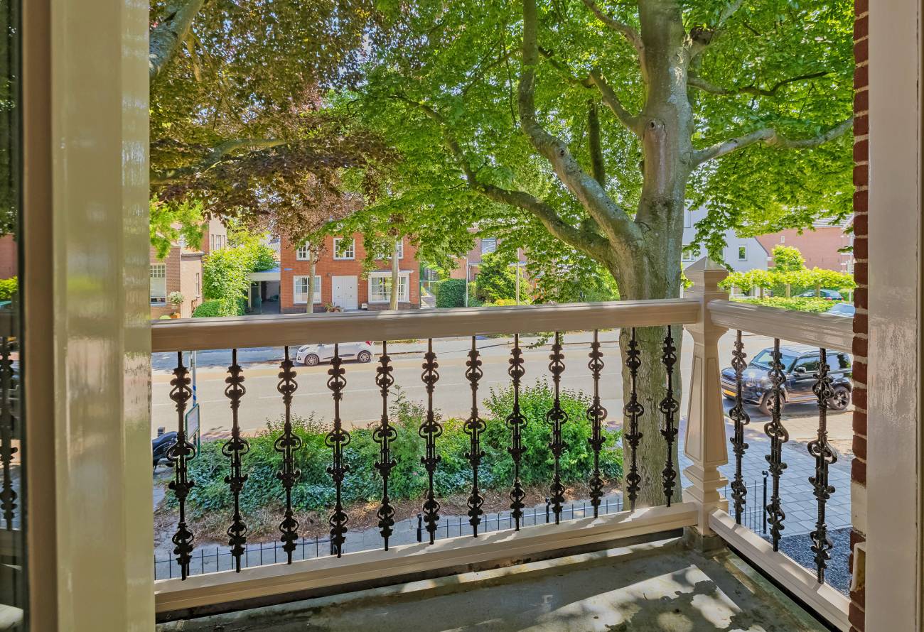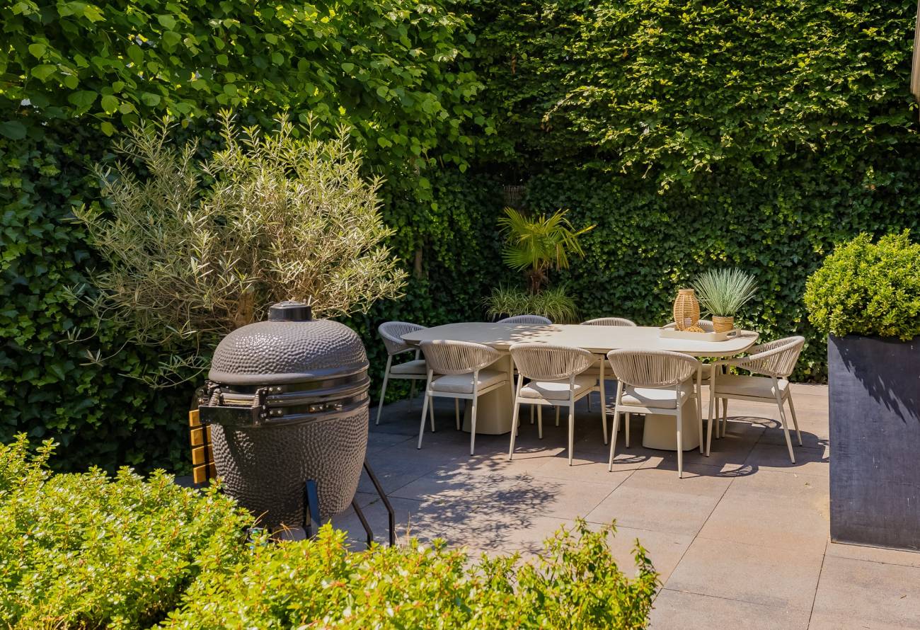De prachtig aangelegde tuin ligt rondom de woning en heeft o.a. een nieuw in authentieke stijl smeedijzeren hek, verlichting en beregening. De zeer zonnige achtertuin van 13 meter diep en 7.5 meter breed biedt veel privacy en is o.a. voorzien van een grote veranda waarin het ook in de koudere maanden goed toeven is.