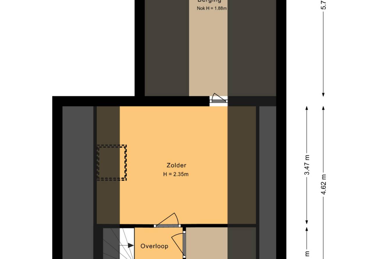 Tweede verdieping: Hier treffen we een laatste slaapkamer, een technische ruimte met CV ketel, aansluitingen voor was apparatuur en mechanische ventilatie box. Tevens is op de verdieping een grote bergruimte te vinden.