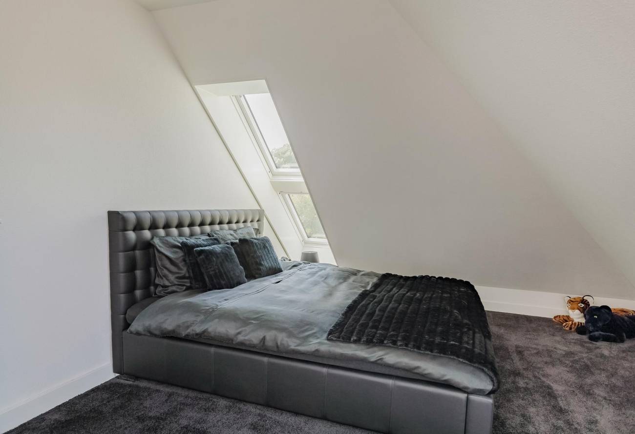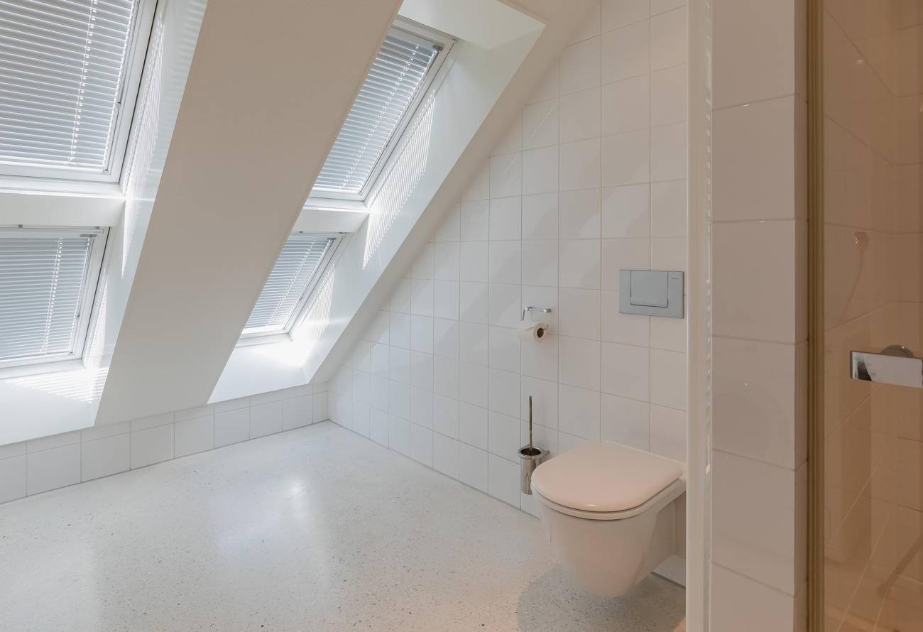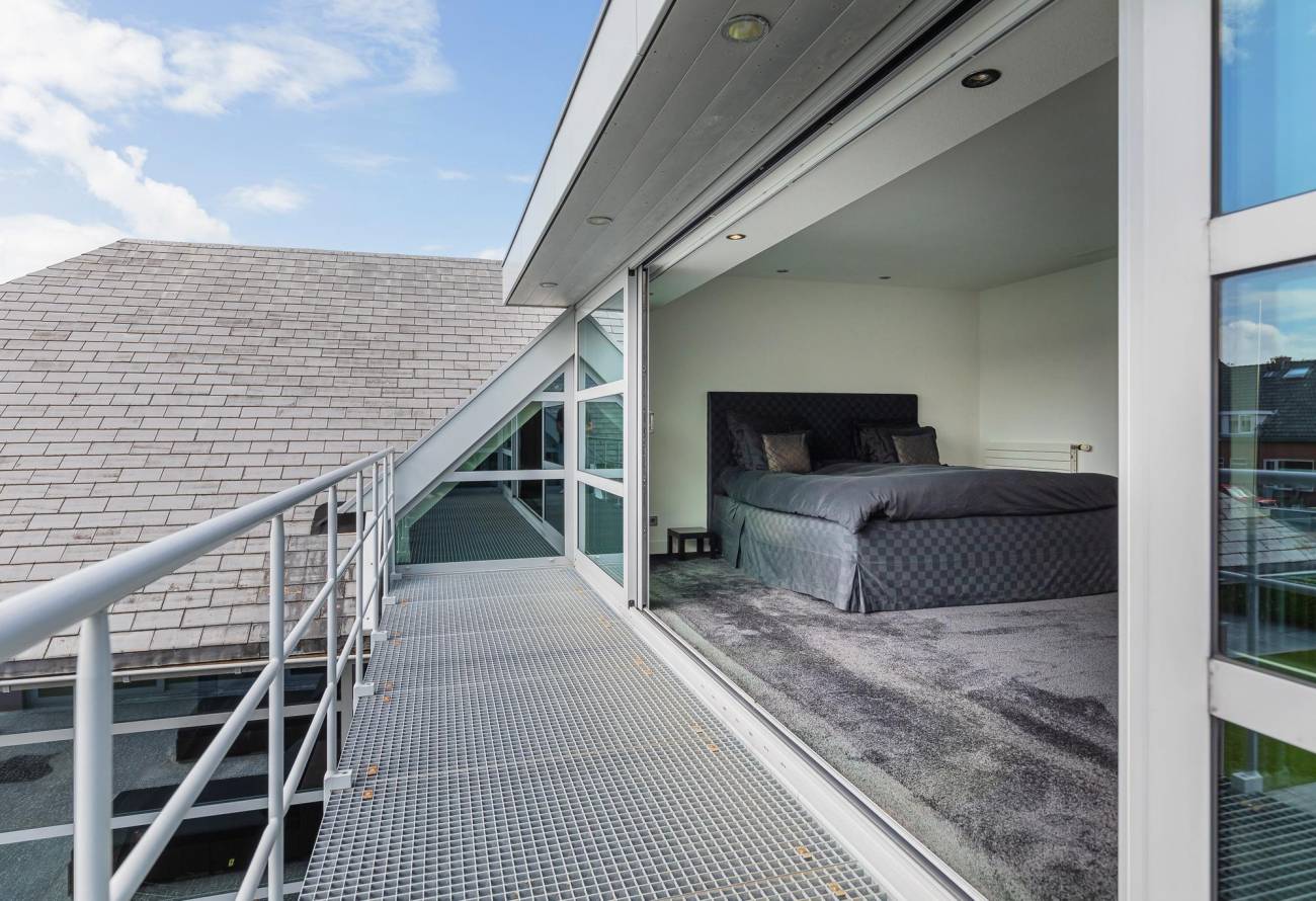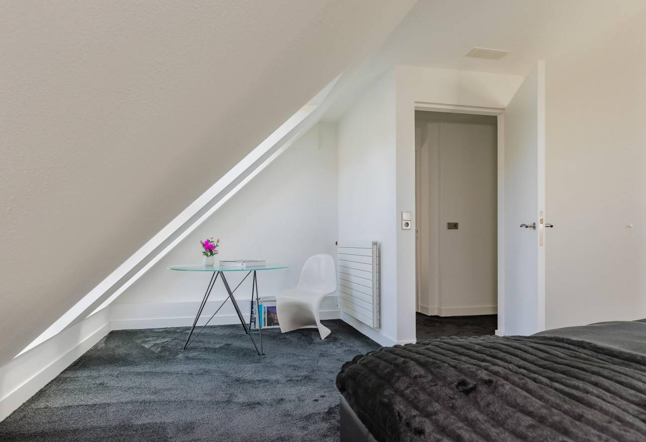 Op deze etage zijn 3 slaapkamers, 2 badkamers en een grote bergruimte. De zeer royale hoofdslaapkamer heeft een eigen luxe badkamer en een ruime kleedkamer. Het balkon is alleen vanuit deze kamer toegankelijk. 20 Dakramen zorgen voor extra lichtinval en ook hierin is de symmetrie doorgetrokken.