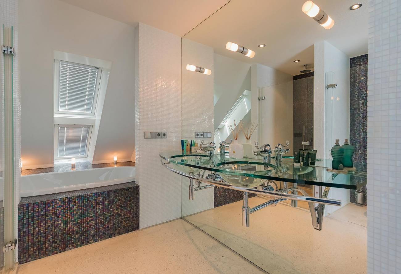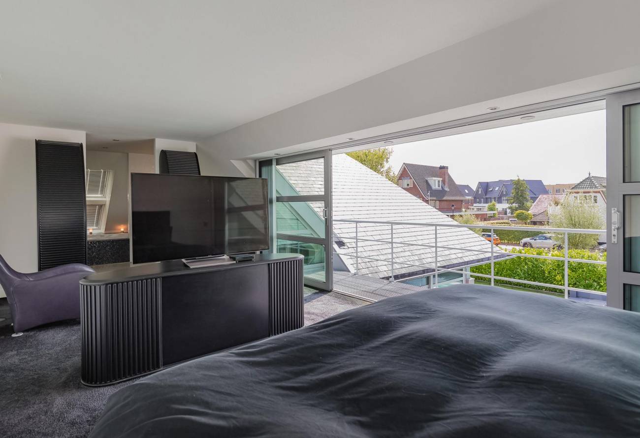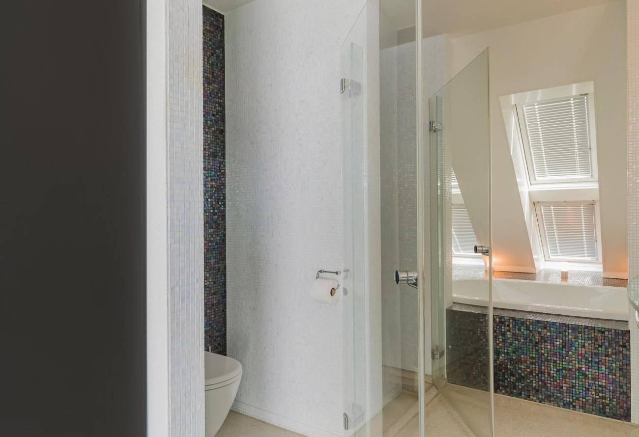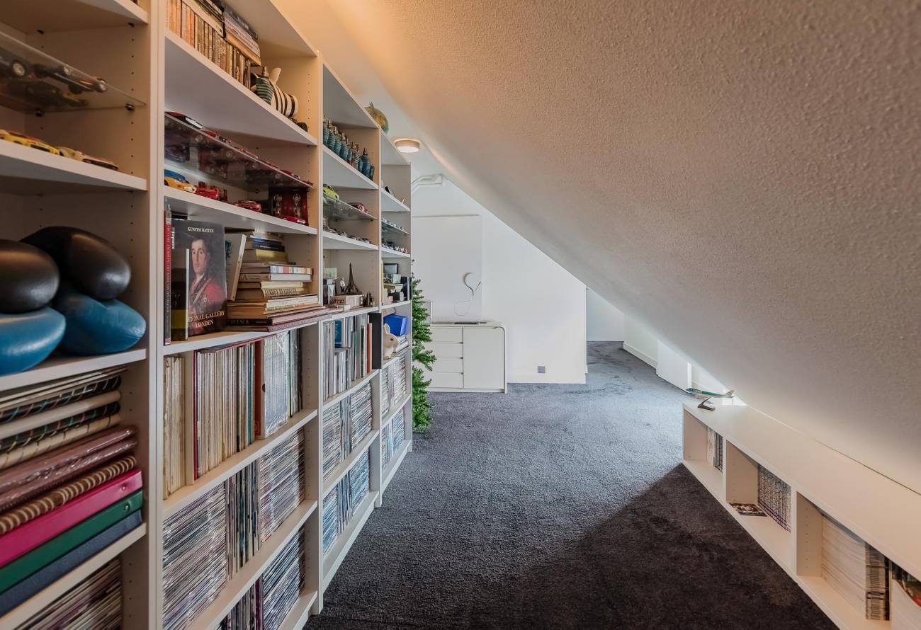Op deze etage zijn 3 slaapkamers, 2 badkamers en een grote bergruimte. De zeer royale hoofdslaapkamer heeft een eigen luxe badkamer en een ruime kleedkamer. Het balkon is alleen vanuit deze kamer toegankelijk. 20 Dakramen zorgen voor extra lichtinval en ook hierin is de symmetrie doorgetrokken.