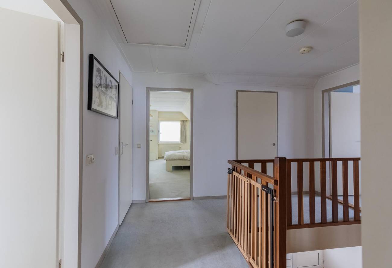 1e etage: royale overloop waarvan 4 slaapkamers grenzen, technische ruimte/opbergkast, badkamer met douche, wastafel en toilet. Hoofdslaapkamer met een 2e badkamer ensuite.