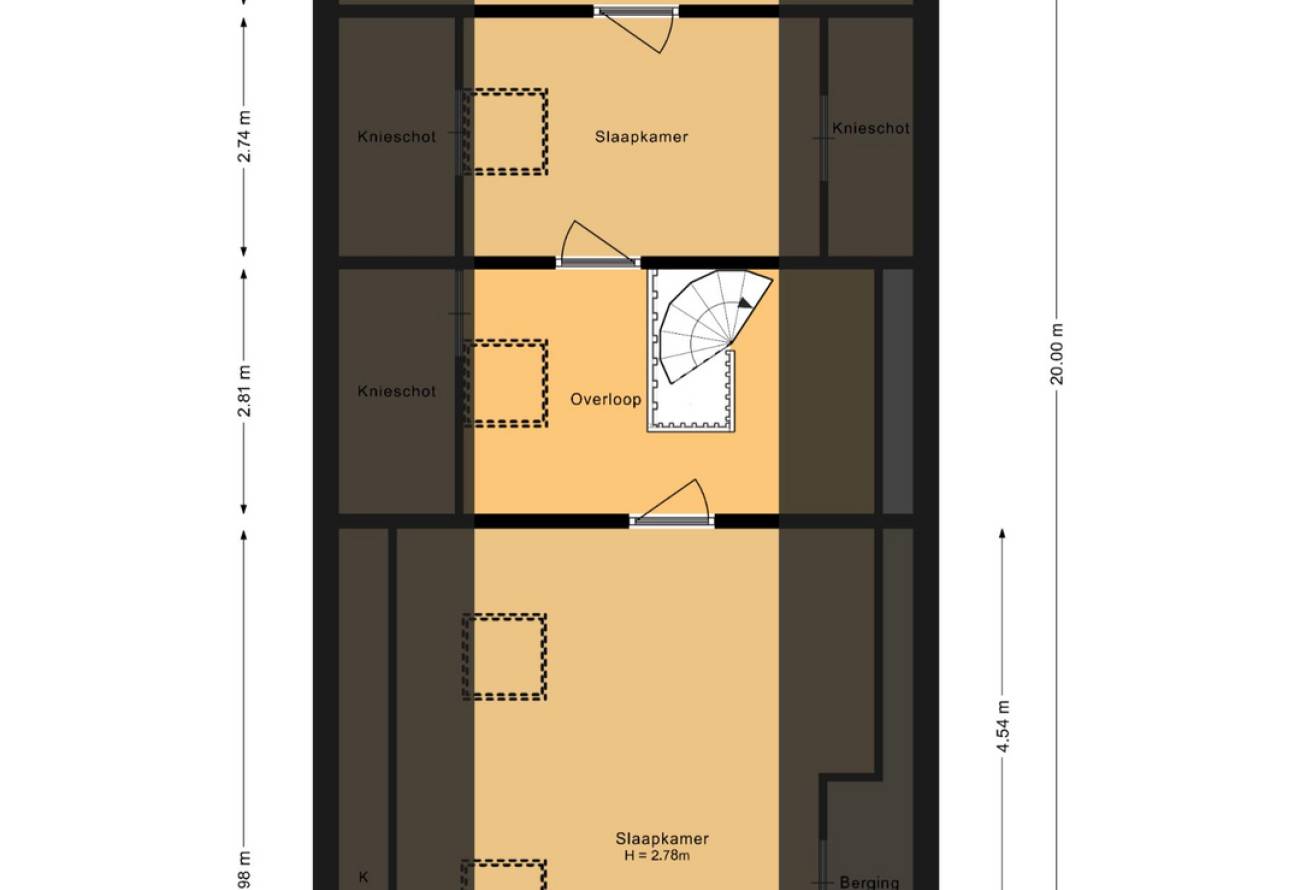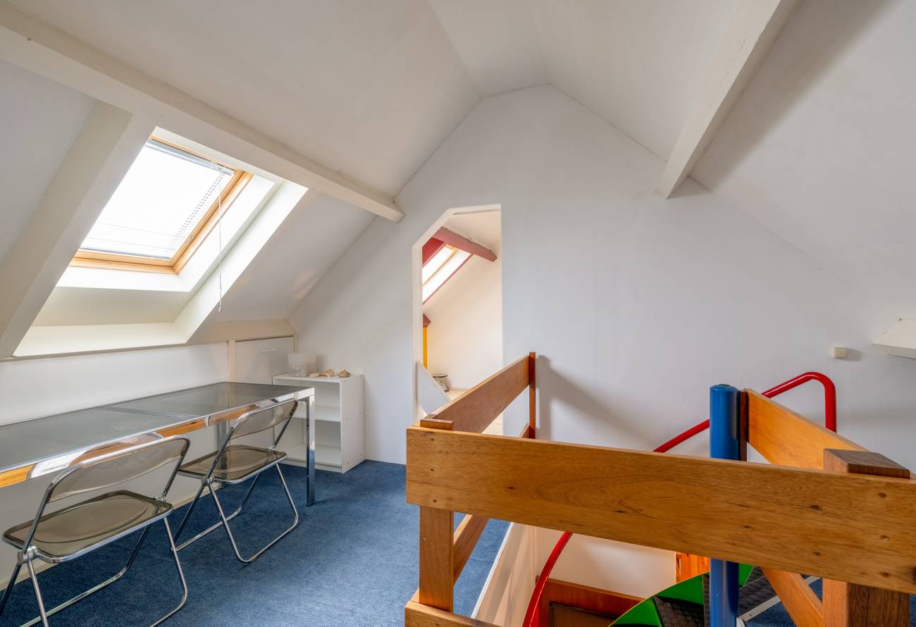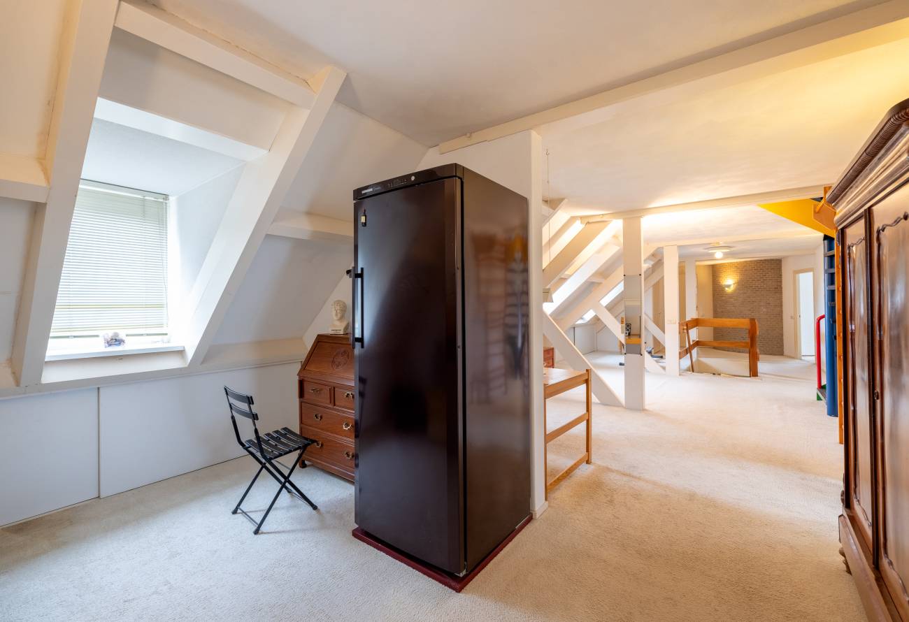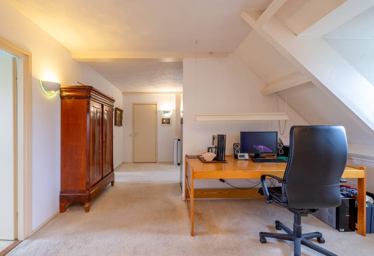 Via de spiltrap bereik je de tweede verdieping. Hier zijn nog twee extra slaapkamers, uitstekend geschikt als gastenkamer of thuiskantoor. Daarnaast is er volop bergruimte aanwezig.