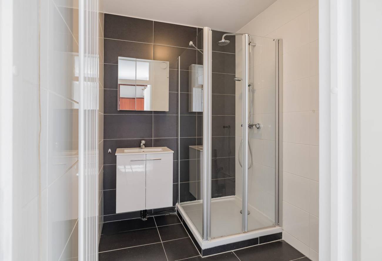 De twee slaapkamers zijn beide van goed formaat. De moderne badkamer is voorzien van douchecabine met regendouche, wastafel met meubel, designradiator. Tevens bevindt zich hier de aansluiting voor de wasmachine.
