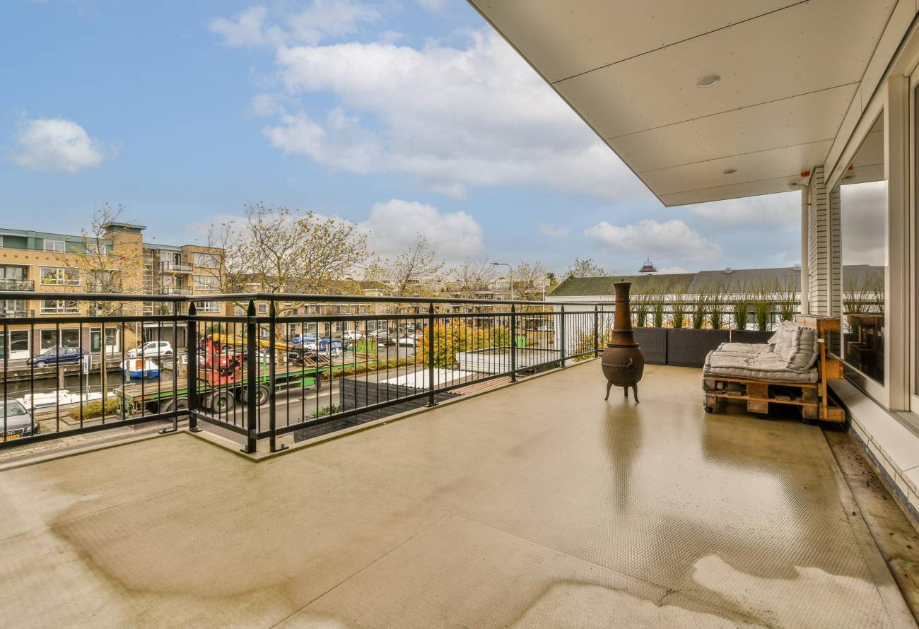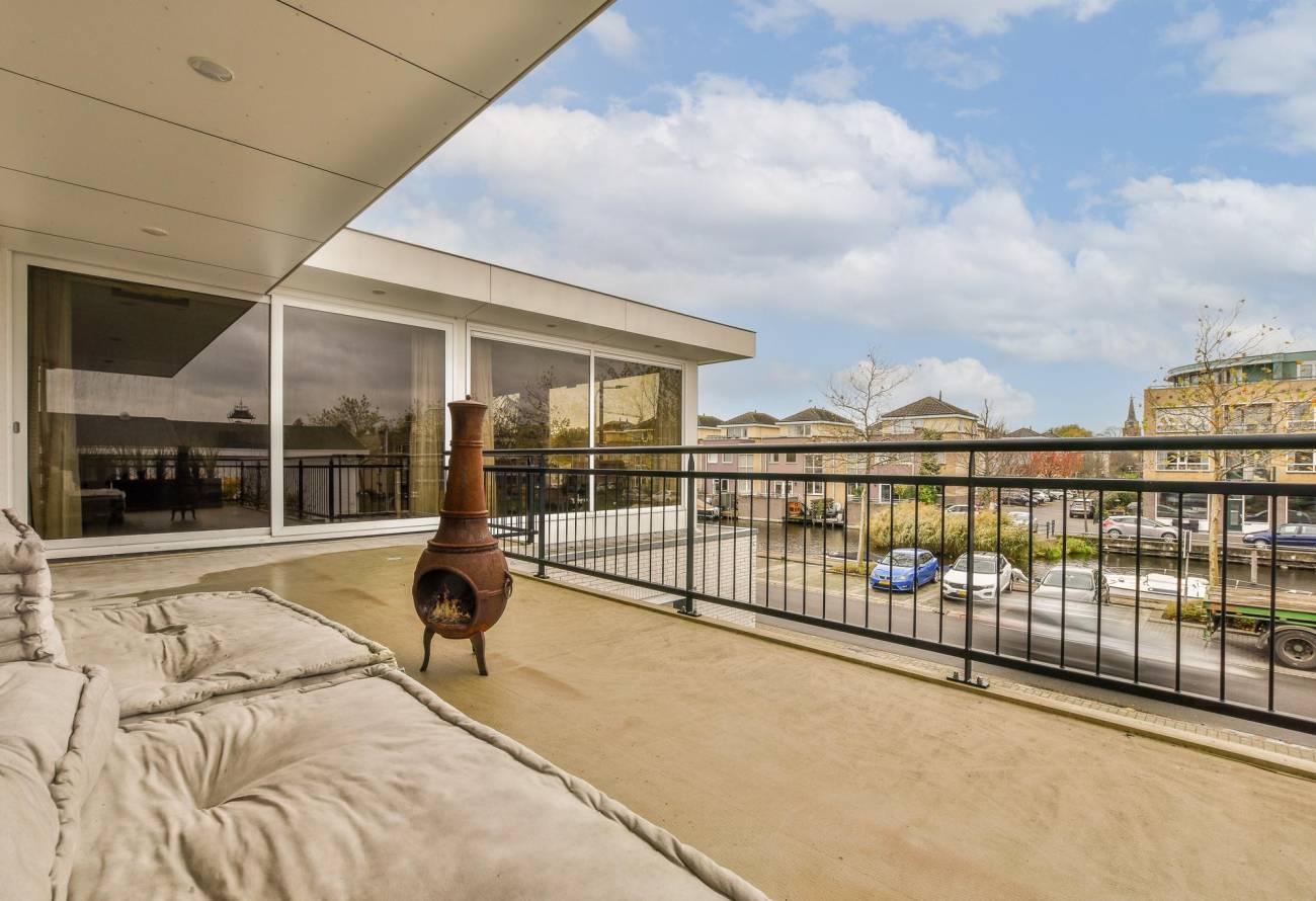 Mocht de zon verdwijnen vanaf het dakterras dan is er de mogelijkheid om te verplaatsen naar het balkon aan de voorzijde waar u kunt genieten van de avondzon en kunt u genieten van het uitzicht op de haven.