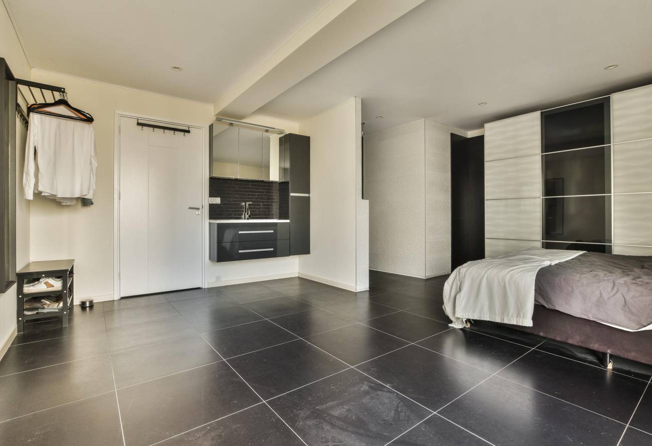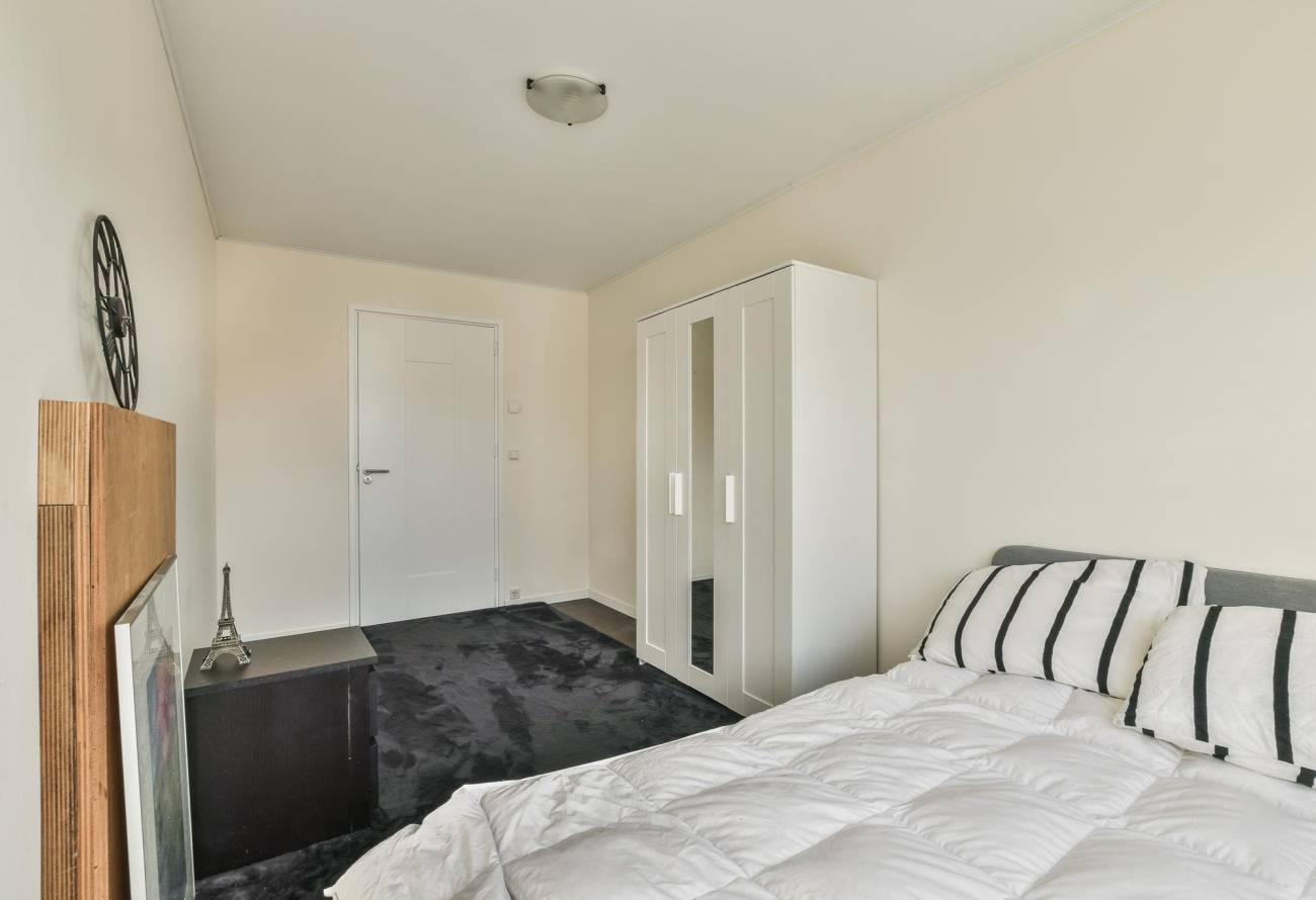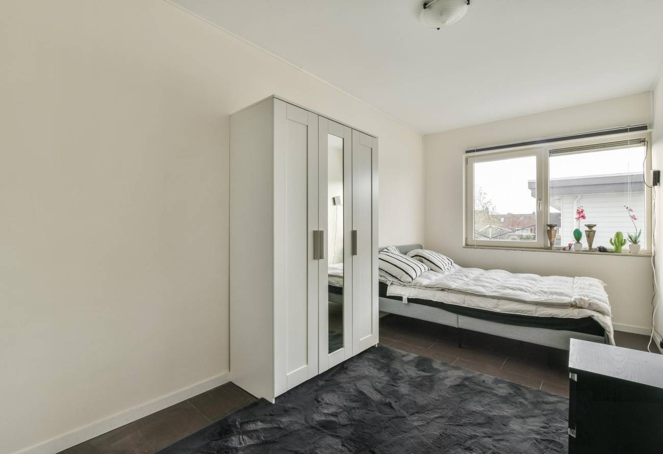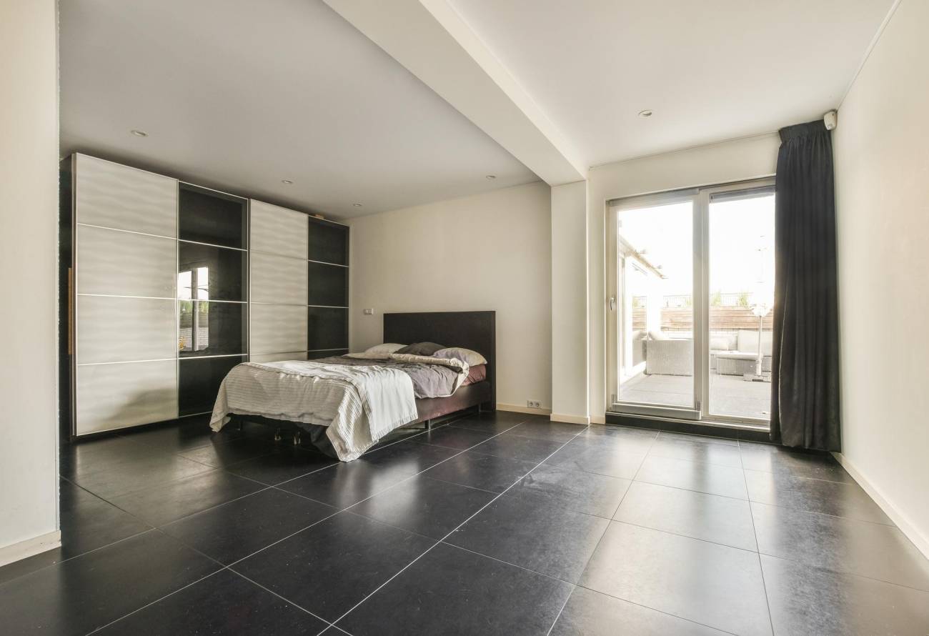 Via een schuifpui is er toegang tot het brede balkon aan de voorzijde van 26m².