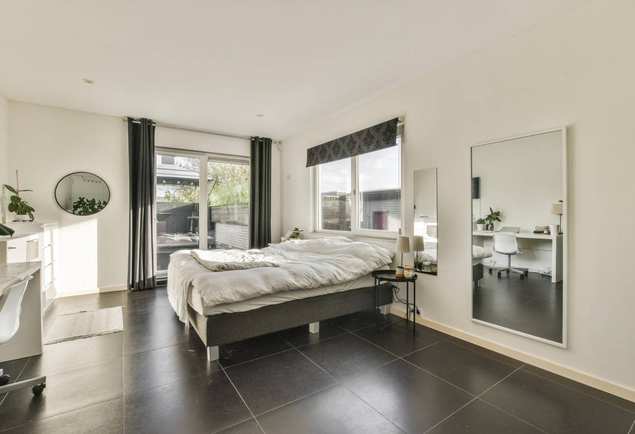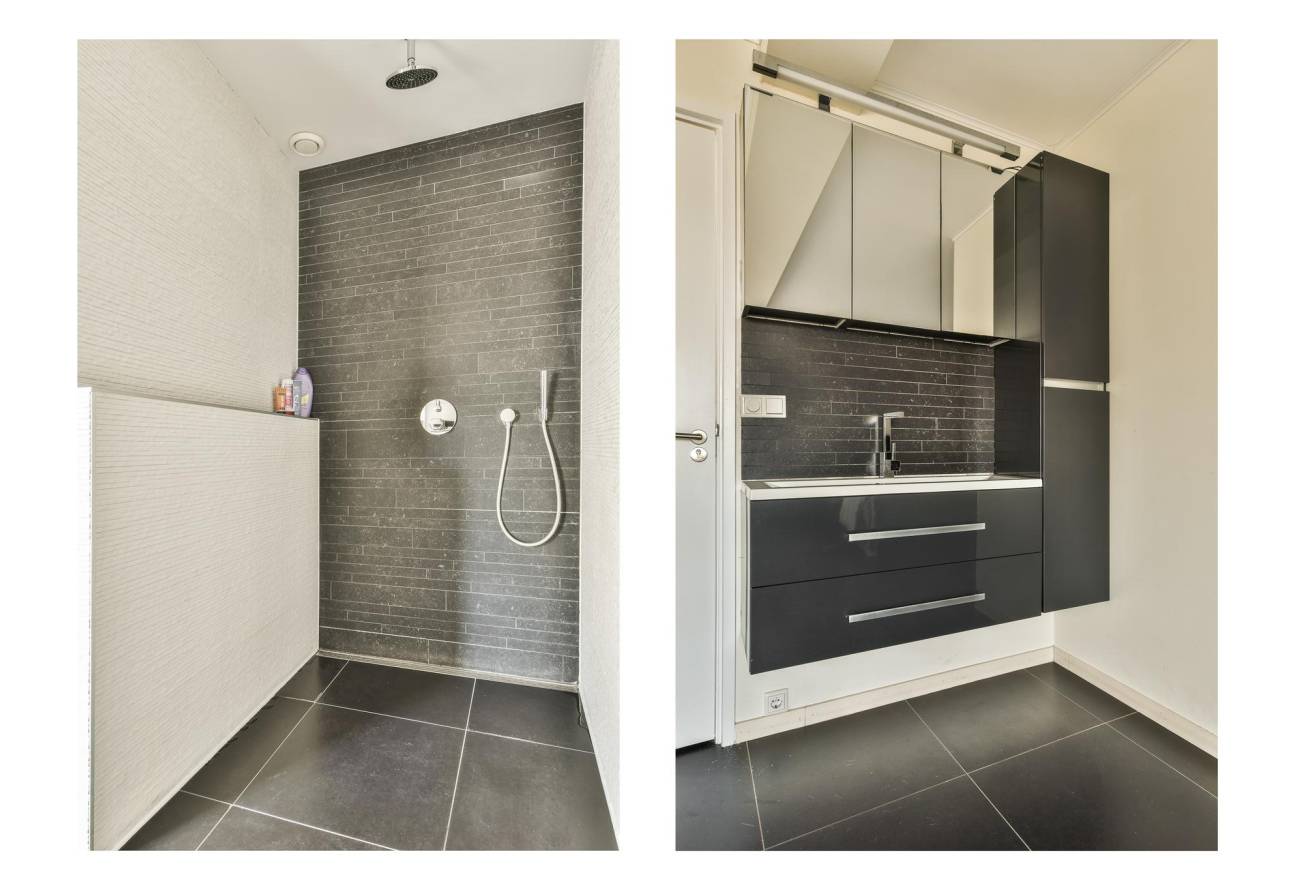 De vierde slaapkamer is aangrenzend met de badkamer en ideaal te gebruiken als kantoor of kleedkamer. Daarnaast heeft het woongedeelte een inpandige berging, eigen wasruimte met wastafel en directe toegang tot het terras.