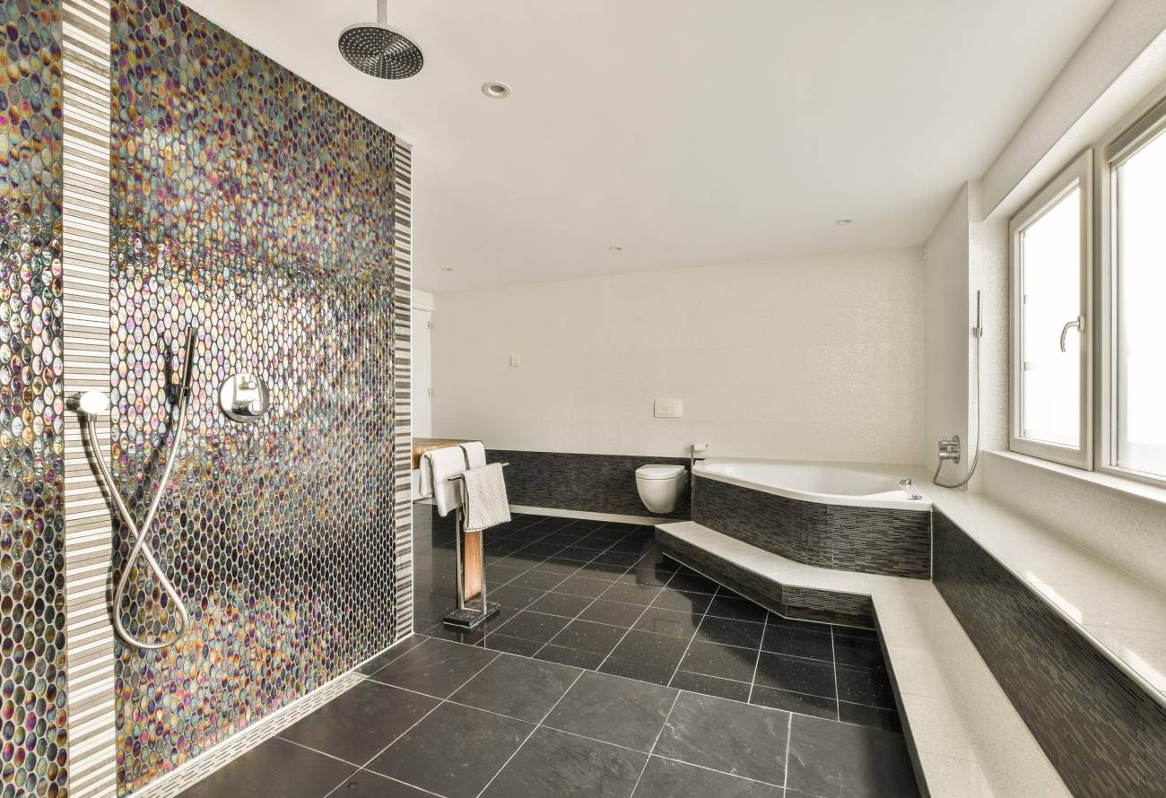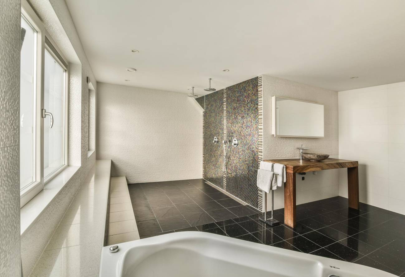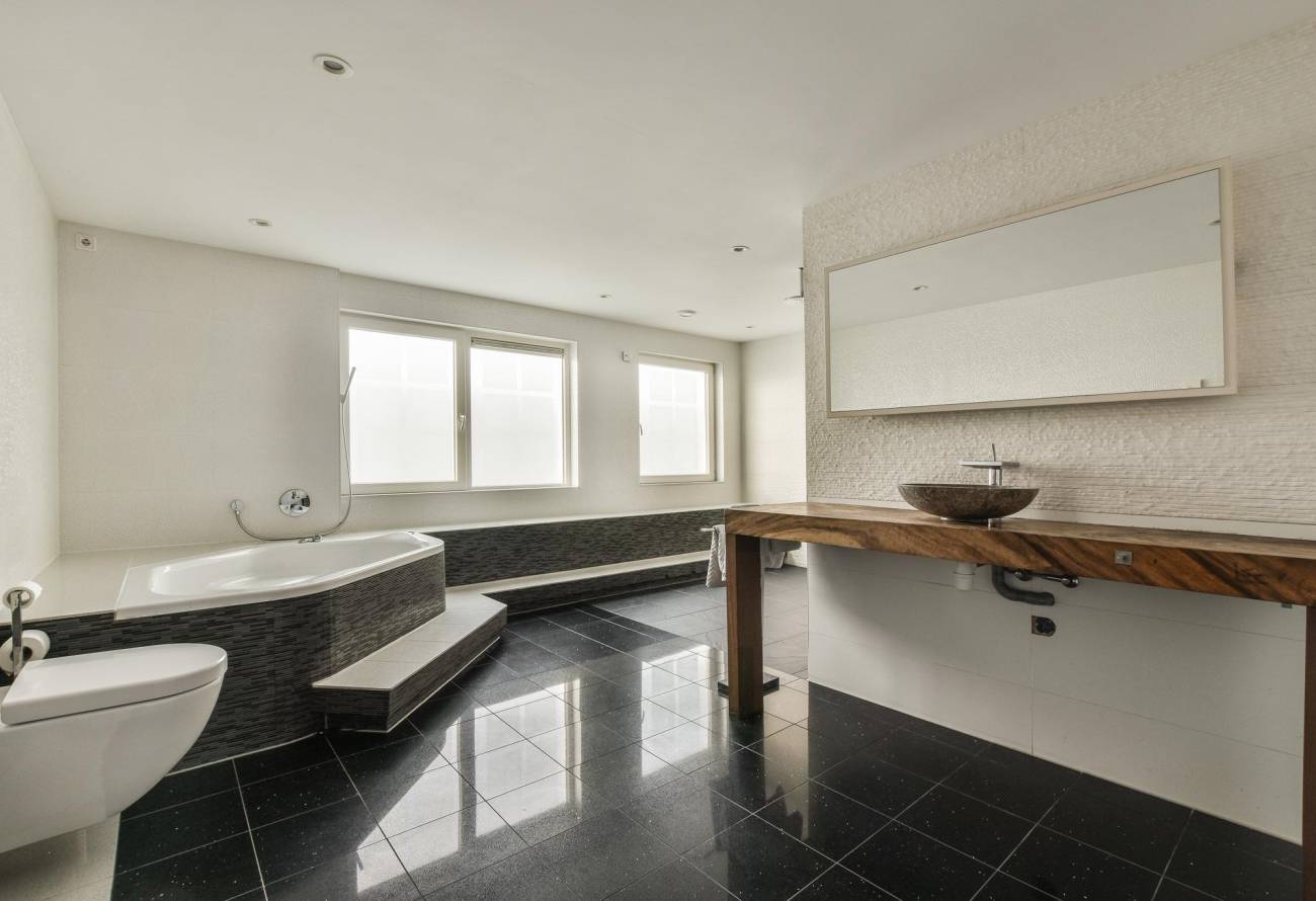 De twee slaapkamers aan de achterzijde zijn bijna identiek aan elkaar en zijn beide circa 22m². De aparte luxe badkamer is zeer ruim en is voorzien van zwevend toilet, wastafel met luxe mengkraan, ruim ligbad en inloopdouche met twee regendouchekoppen.