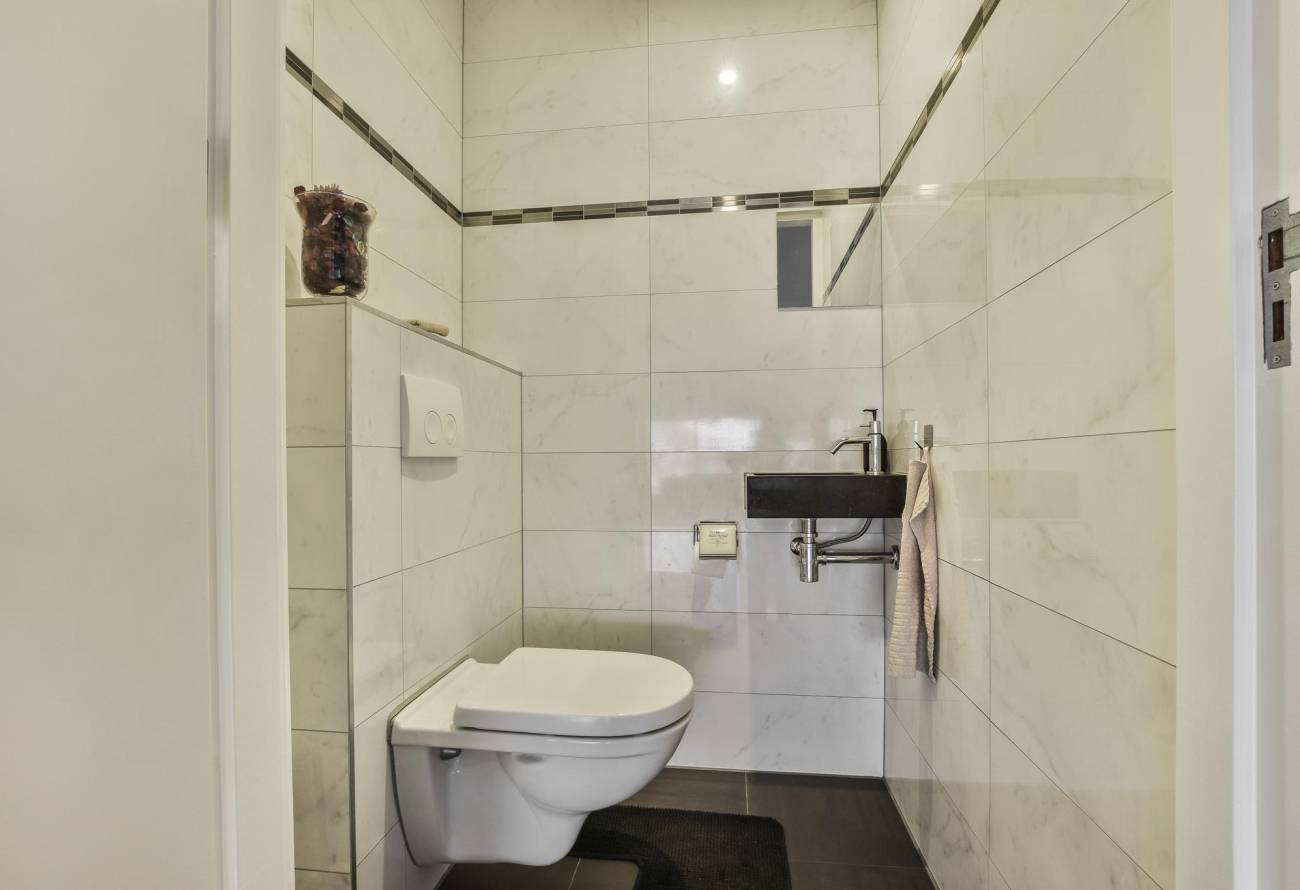 Tevens bevindt zich op de begane grond tweemaal een separate toiletruimte voorzien van een wastafel.