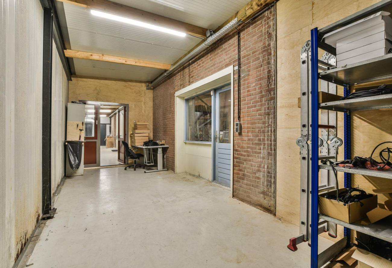 Fraaie showroom met schuifpuien, zeer royale bedrijfshal met overheaddeur, betonvloer en systeemplafond. De bedrijfshal beschikt aan zowel de achter als zijgevel over veel nuttige opslagruimte. Het kantoor is gesitueerd tussen de showroom en de bedrijfshal en heeft een goed overzicht over de bedrijfshal.