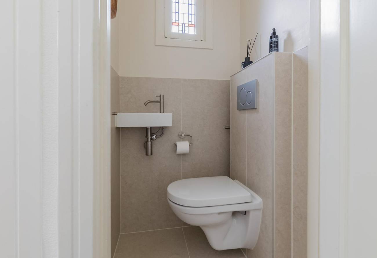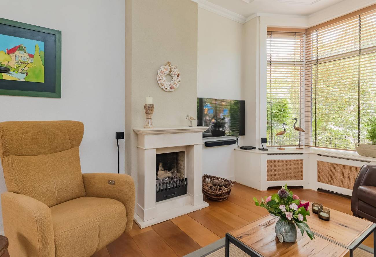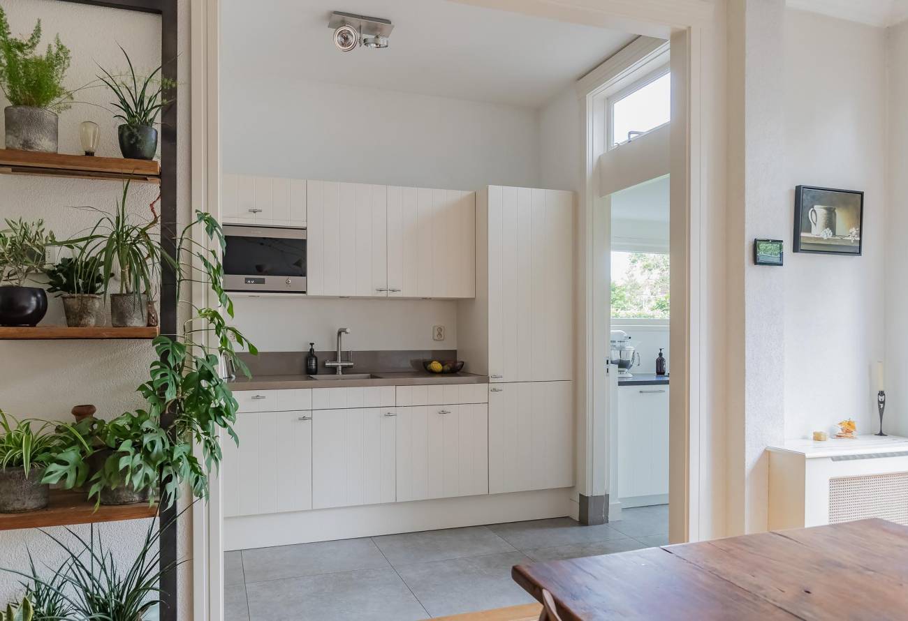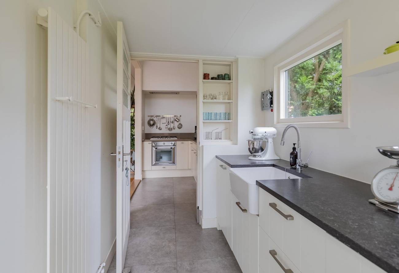 Entree, lichte hal, meterkast, modern zwevend toilet (2024). Sfeervolle woonkamer met massieve Robinia houten vloer en gashaard. De erker is voorzien kunststof kozijnen en HR++ beglazing. Aan de achterzijde bevinden zich de openslaande deuren met daarboven de glas in lood ramen. Zeer nette keuken, welke goed is onderhouden en is voorzien van allerhande inbouwapparatuur, waaronder: de oven, magnetron en het gasfornuis van het merk Smeg. Close-in boilers voor zowel de wastafel in de keuken als de butler sink in de bijkeuken. Verder is de keuken voorzien van Quooker (Franke), vaatwasser en koel-/vriescombinatie.