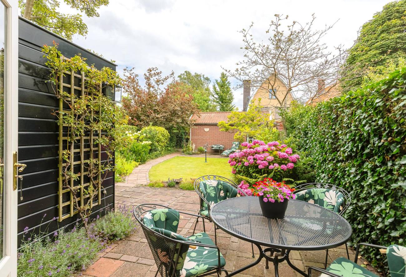De achtertuin heeft een diepte van ca. 20 meter en is verzorgd aangelegd. Zo zijn er meerdere terrassen waarop heerlijk genoten kan worden van de zon. Aan de achterzijde bevindt zich de stenen garage welke is voorzien van elektra en openslaande deuren. De oprit is toegankelijk via de Boonstraat en is afsluitbaar middels een hek.