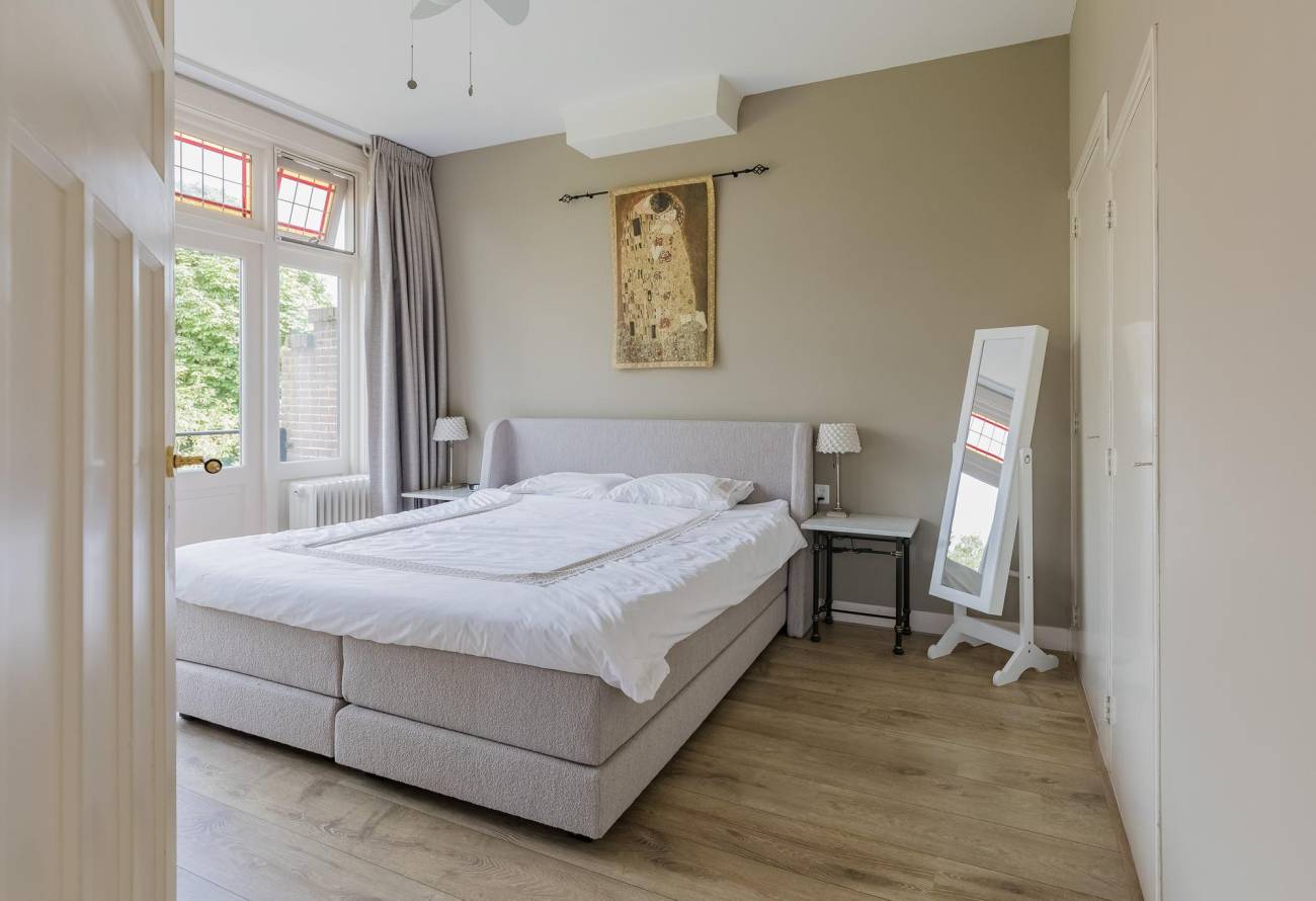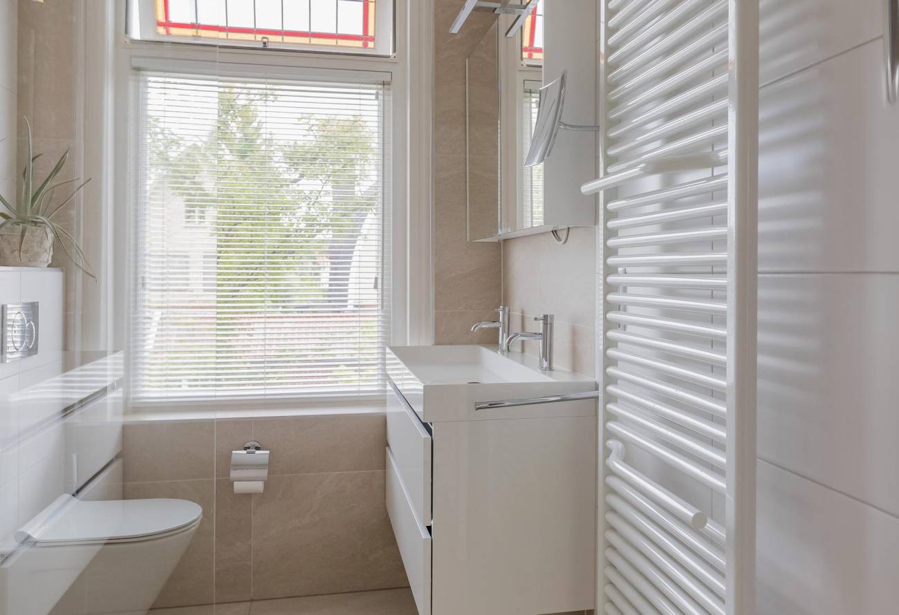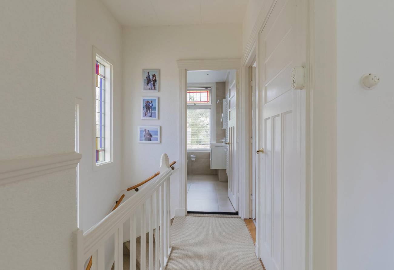 Vanwege de glas in lood ramen is de overloop heerlijk licht. Direct aan de linkerzijde bevindt zich de moderne badkamer (2020) welke is voorzien van dubbele wastafel met meubel, zwevend toilet, inloopdouche en designradiator. De hoofdslaapkamer is gelegen aan de achterzijde en beschikt over inbouwkasten en middels de openslaande deuren wordt het balkon bereikt. De andere twee slaapkamers zijn gelegen aan de voorzijde, waarvan één slaapkamer ideaal te gebruiken is als kantoor of kleedkamer.