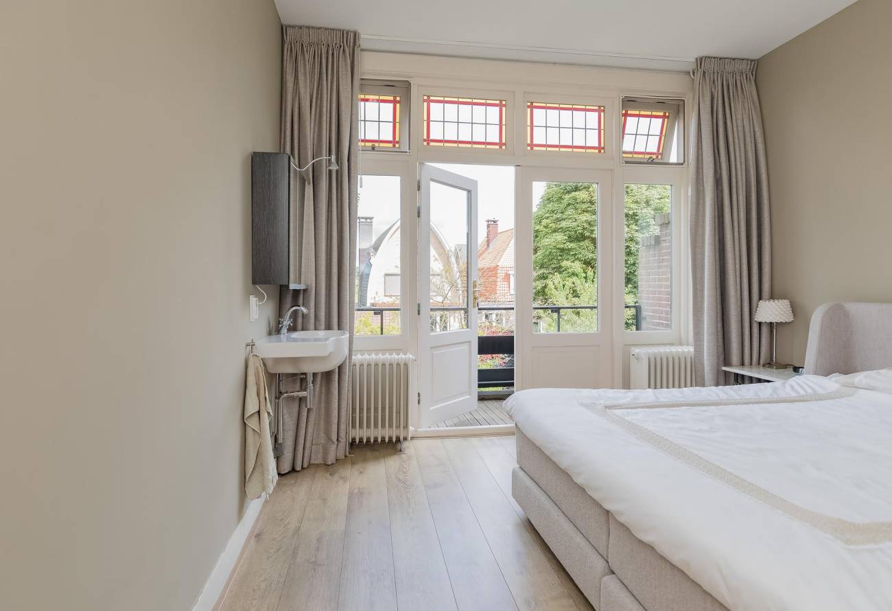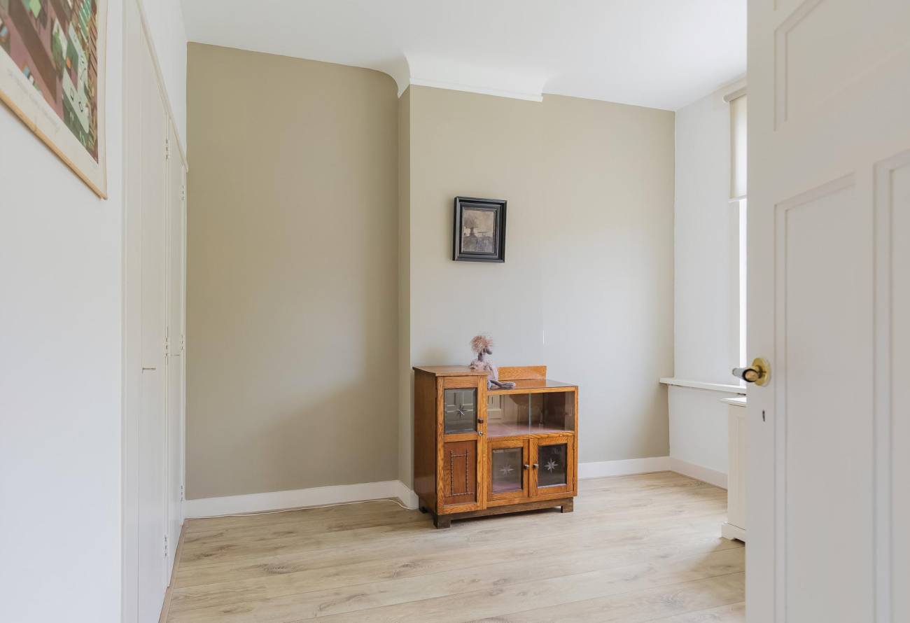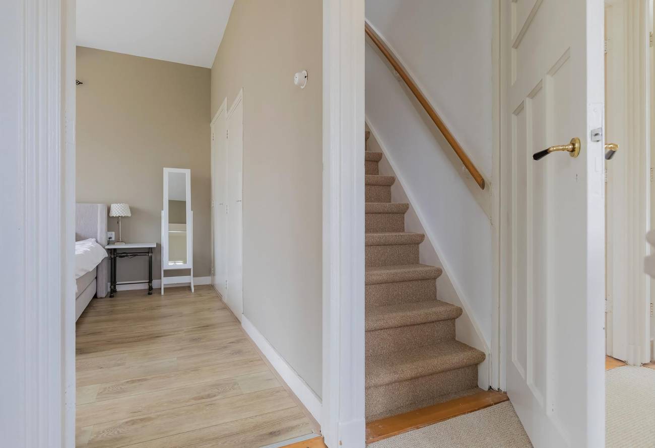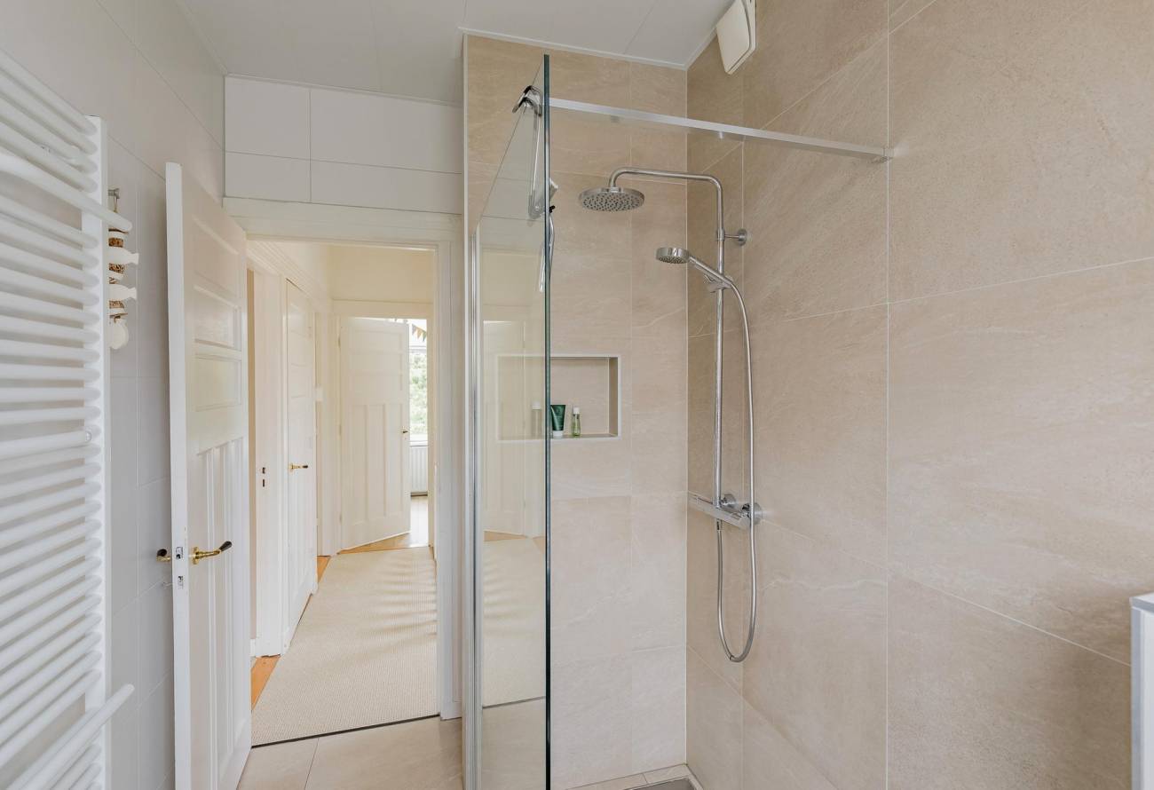 Vanwege de glas in lood ramen is de overloop heerlijk licht. Direct aan de linkerzijde bevindt zich de moderne badkamer (2020) welke is voorzien van dubbele wastafel met meubel, zwevend toilet, inloopdouche en designradiator. De hoofdslaapkamer is gelegen aan de achterzijde en beschikt over inbouwkasten en middels de openslaande deuren wordt het balkon bereikt. De andere twee slaapkamers zijn gelegen aan de voorzijde, waarvan één slaapkamer ideaal te gebruiken is als kantoor of kleedkamer.