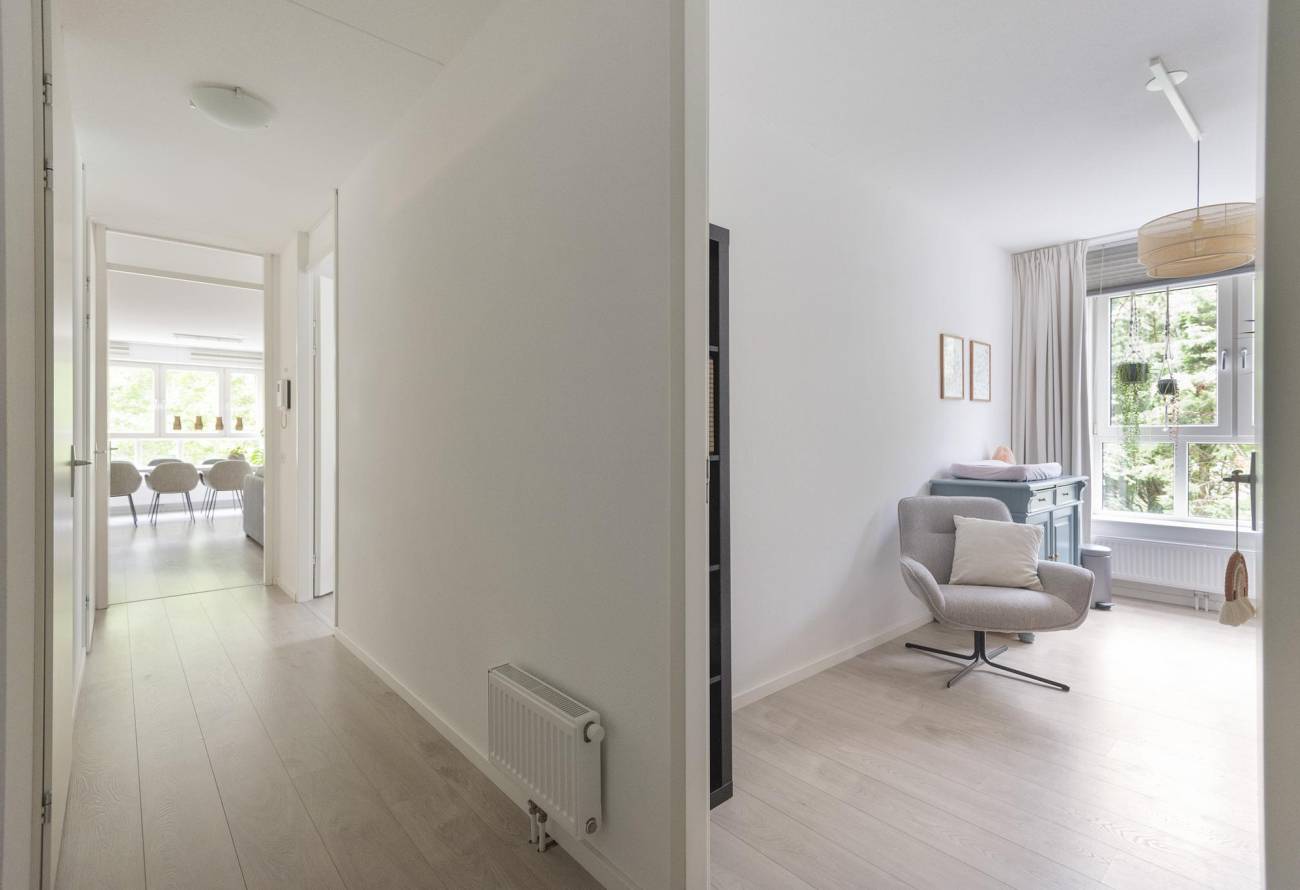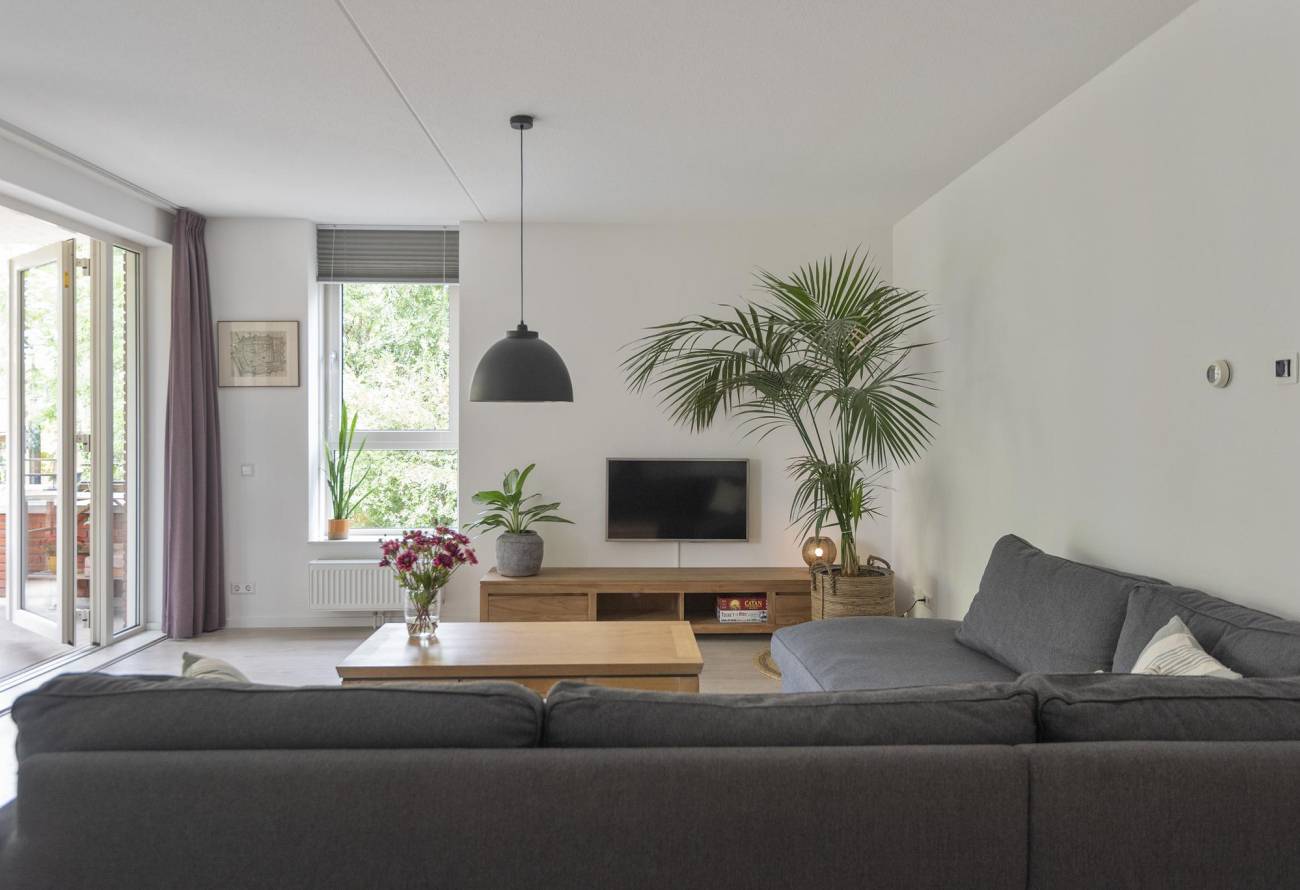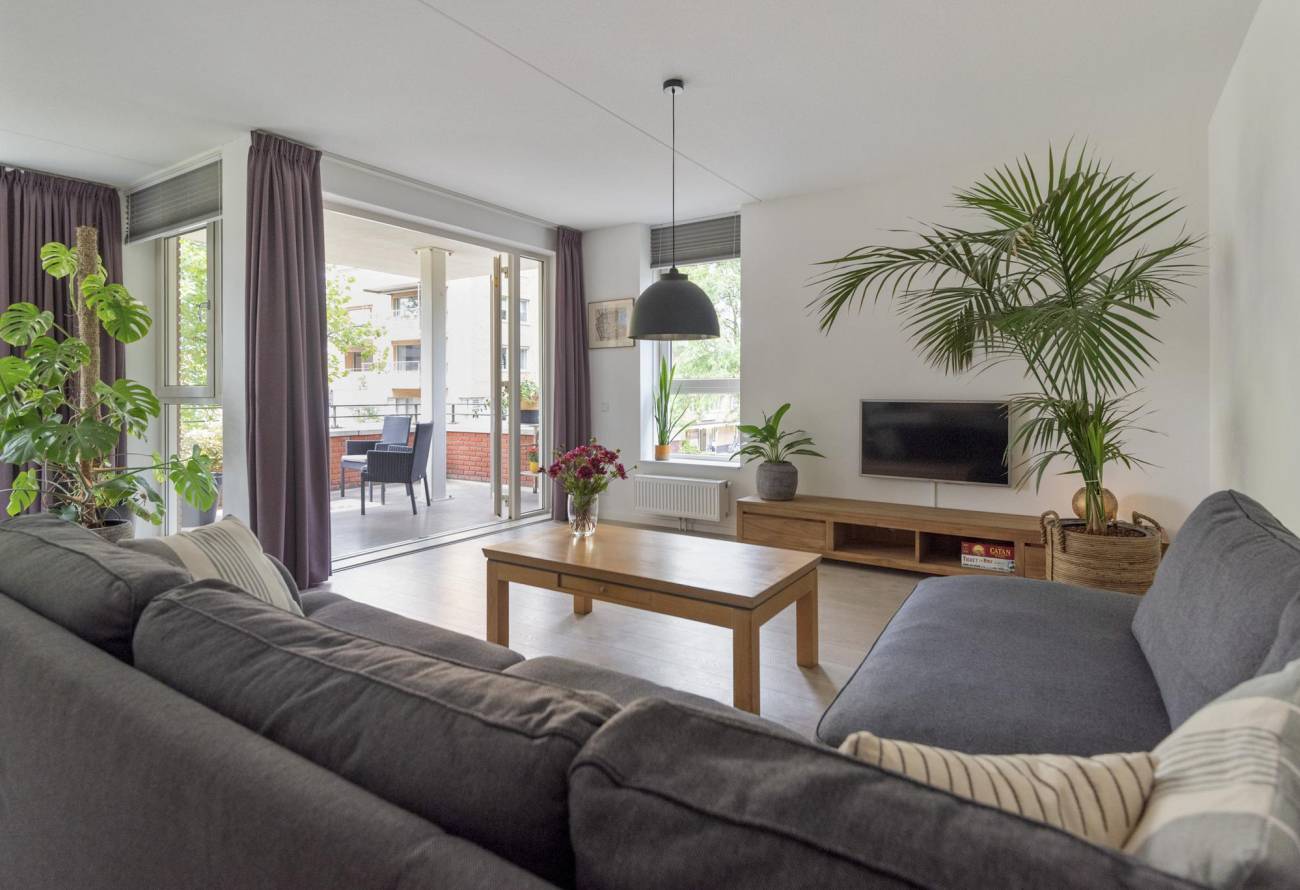 Het royale balkon is gelegen op het zuidwesten en hier kunt u heerlijk genieten van de zon maar tegelijkertijd ook van het groene uitzicht op het park.