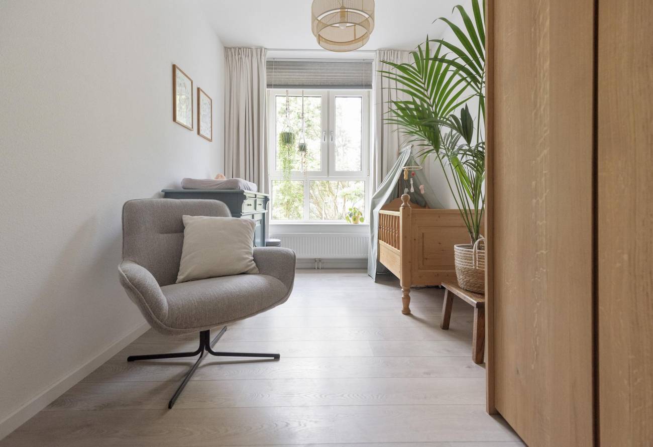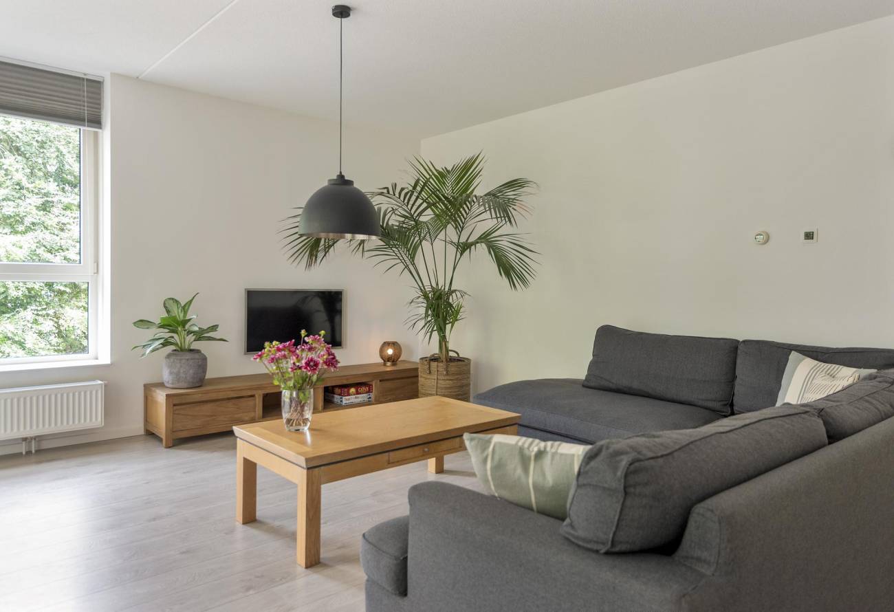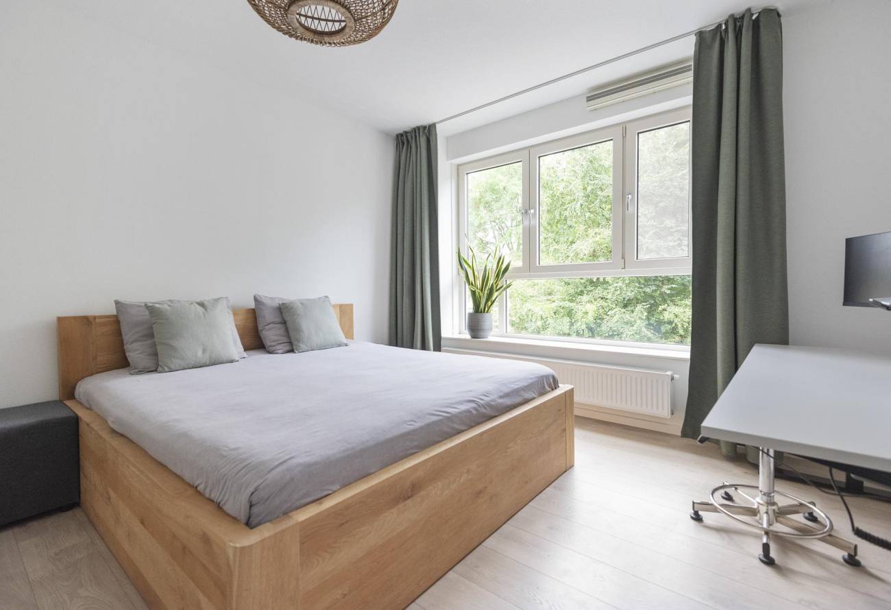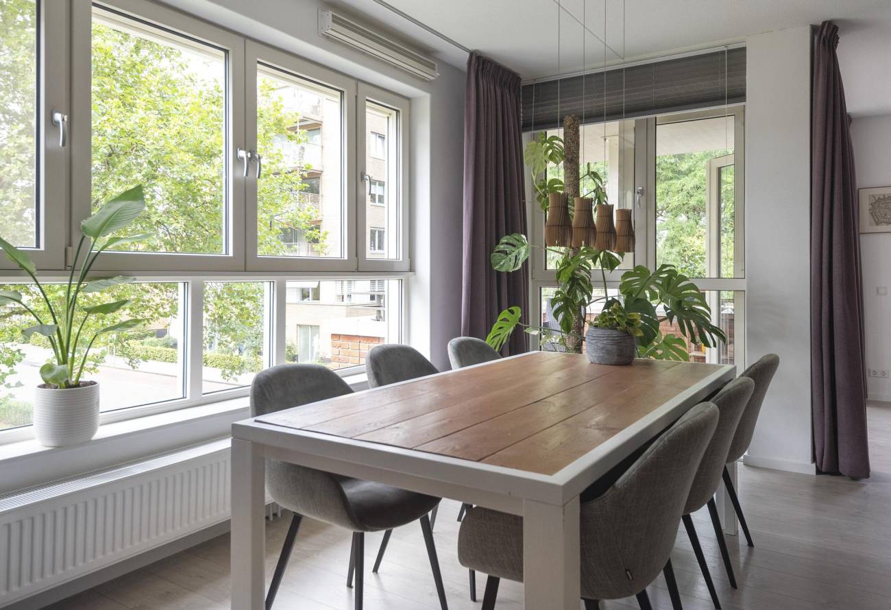 Het royale balkon is gelegen op het zuidwesten en hier kunt u heerlijk genieten van de zon maar tegelijkertijd ook van het groene uitzicht op het park.