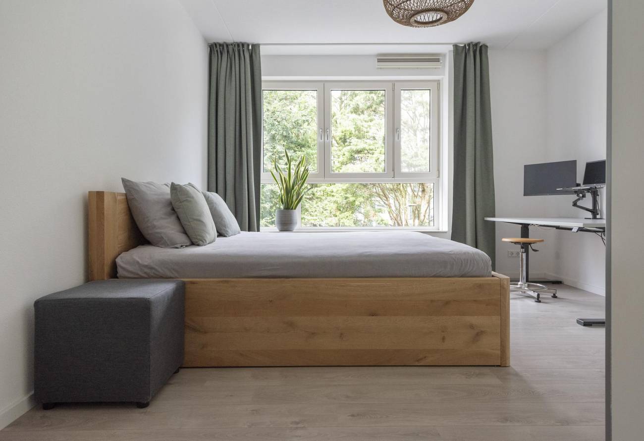 Het appartementencomplex ligt in de groene wijk Leids Houtkwartier, en wordt omringd door vier parken. Binnen enkele minuten wandelt u naar het historische centrum van Leiden, station Leiden Centraal, het Bio Science Park of het historische centrum van Oegstgeest. In de directe omgeving vindt u supermarkten, scholen, sport- en recreatiefaciliteiten en direct tegenover het complex bevinden zich huisartsen, een fysiopraktijk en een apotheek.