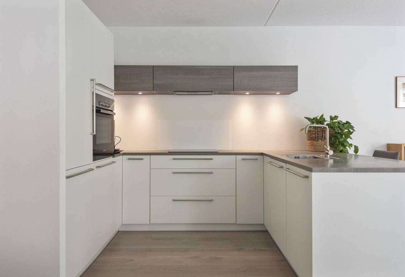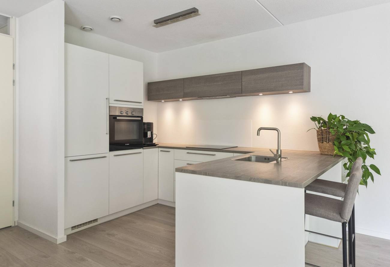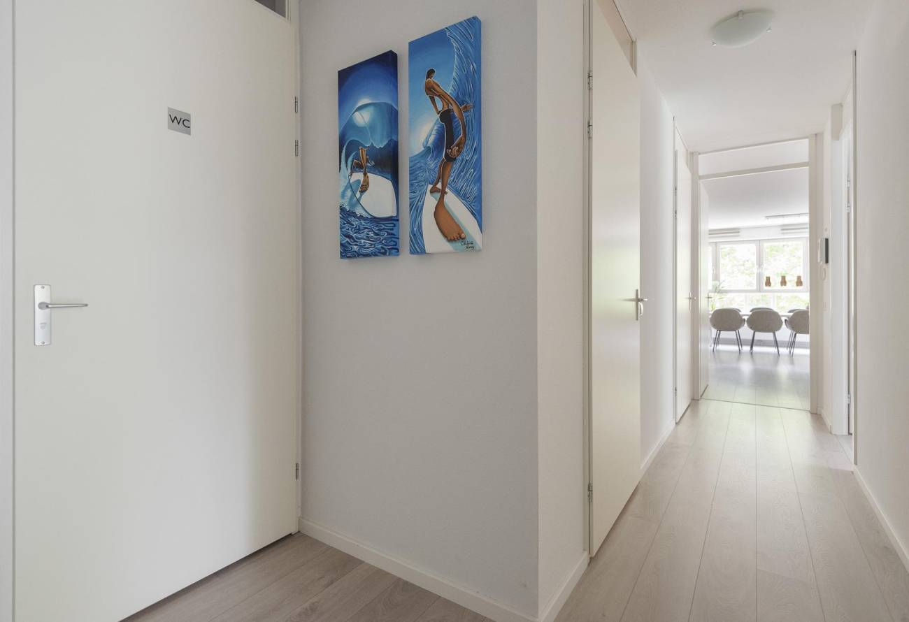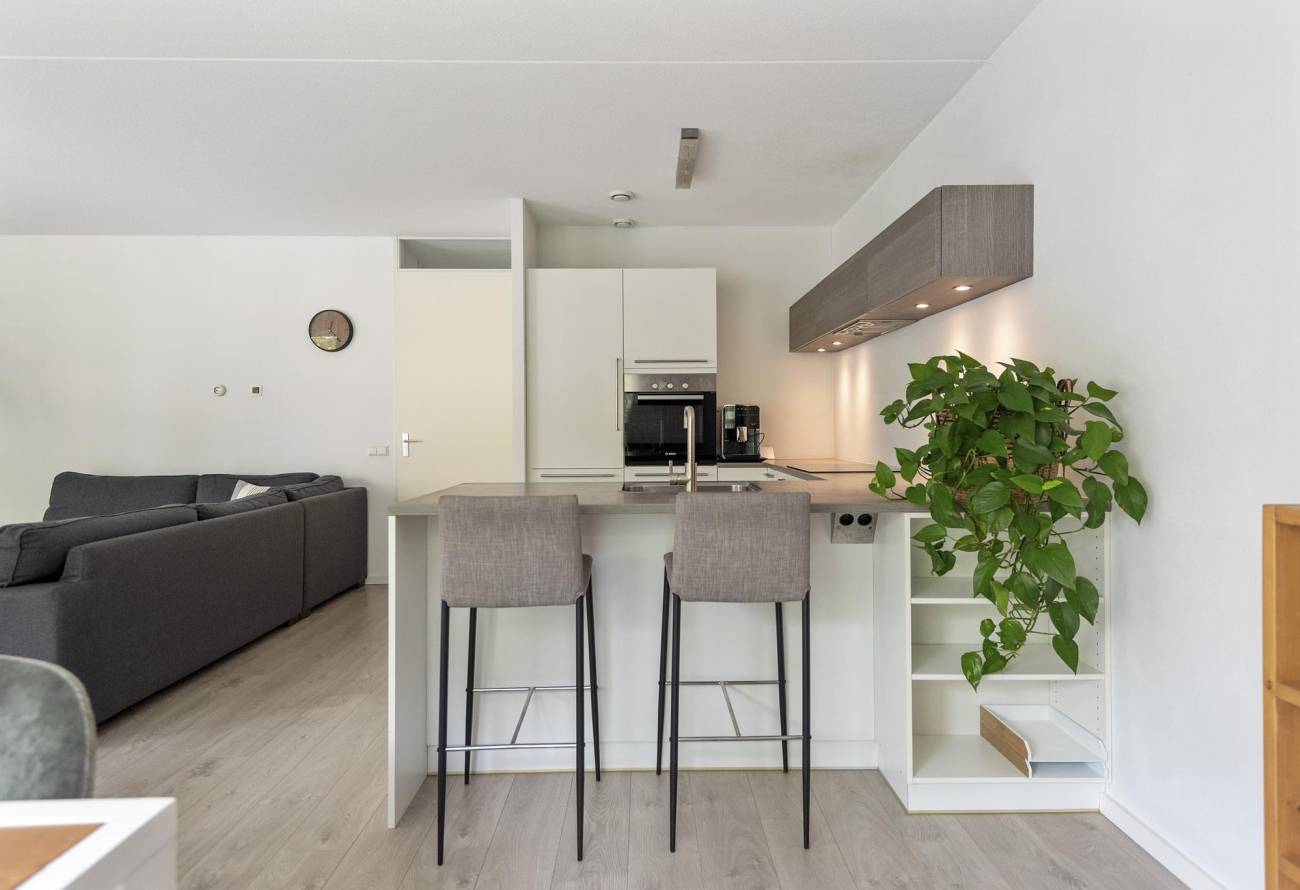 De entree van het appartement is gelegen op de 1e verdieping. Ruime hal met garderobe, meterkast, modern separaat toilet met wastafel. De woonkamer is heerlijk ruim en vanwege de vele raampartijen is er veel lichtinval. De moderne openkeuken met sfeervolle bar is voorzien van inbouwapparatuur, waaronder; koel-/vriescombinatie, vaatwasser, inductiekookplaat, oven en afzuigkap. De hoofdslaapkamer biedt voldoende ruimte voor al uw kleding en accessoires. De tweede slaapkamer is eveneens van goed formaat, ideaal voor kinderen, of als thuiskantoor. De moderne badkamer is geheel betegeld en voorzien van zwevend toilet, wastafel met meubel en ruime inloopdouche.