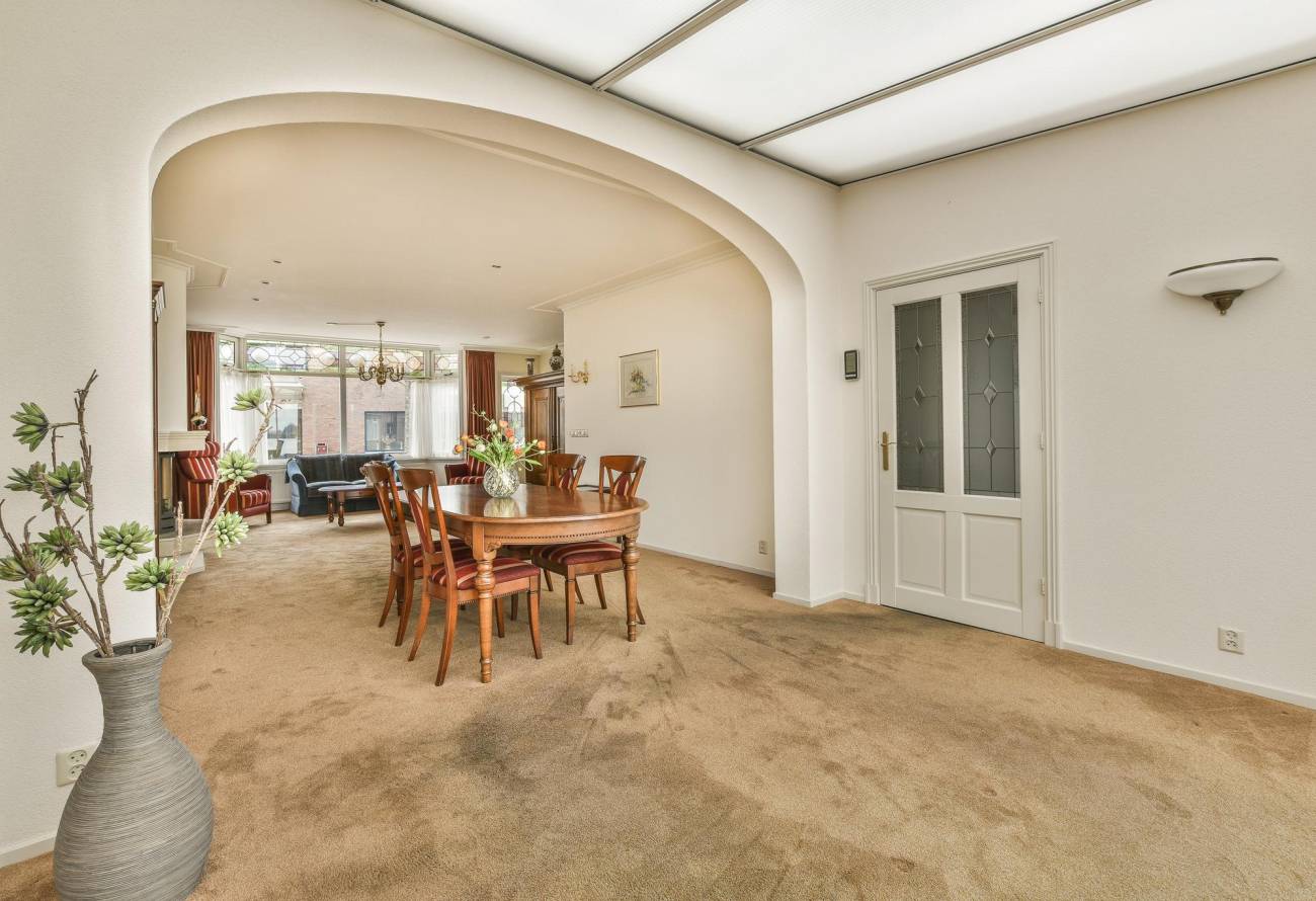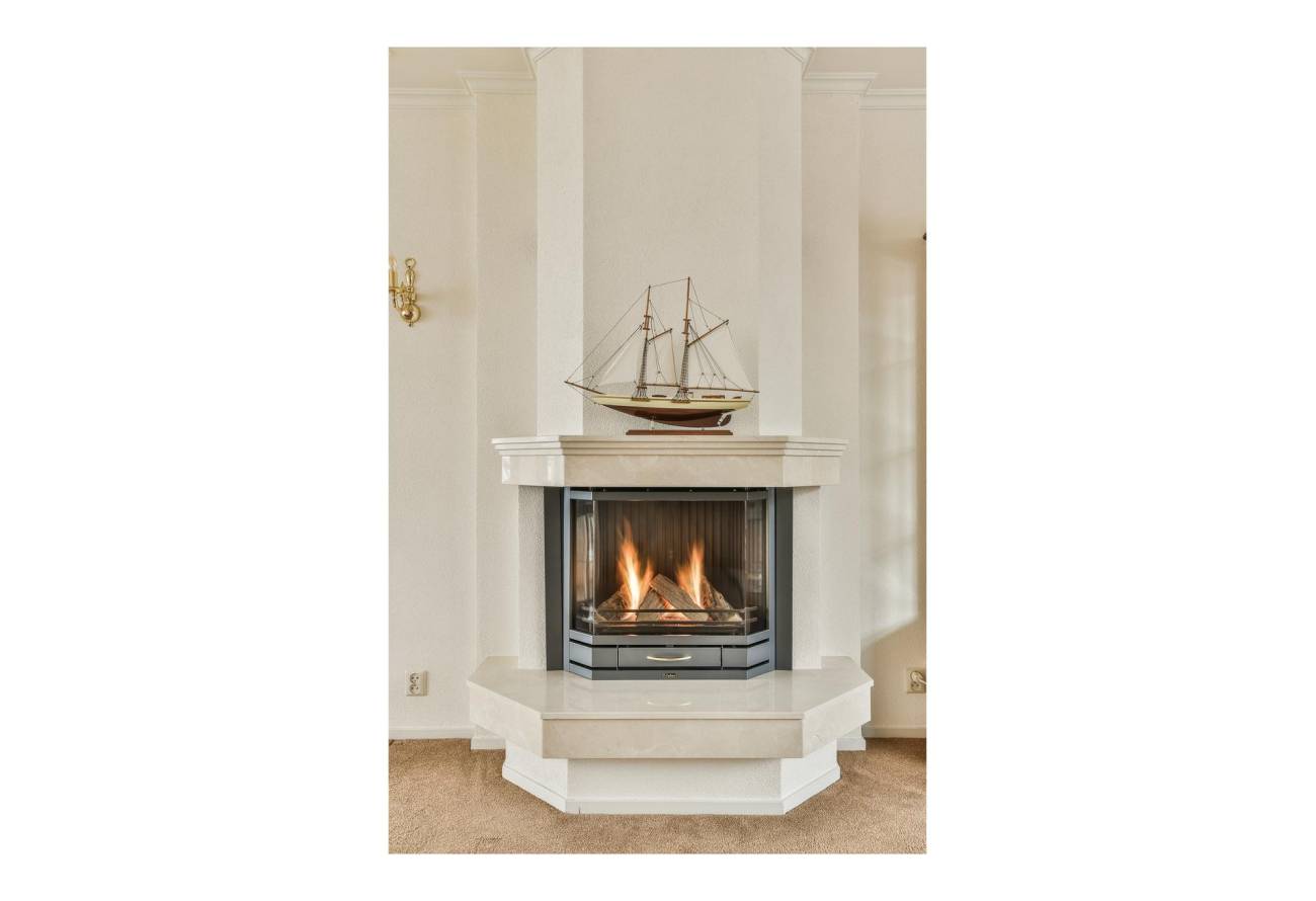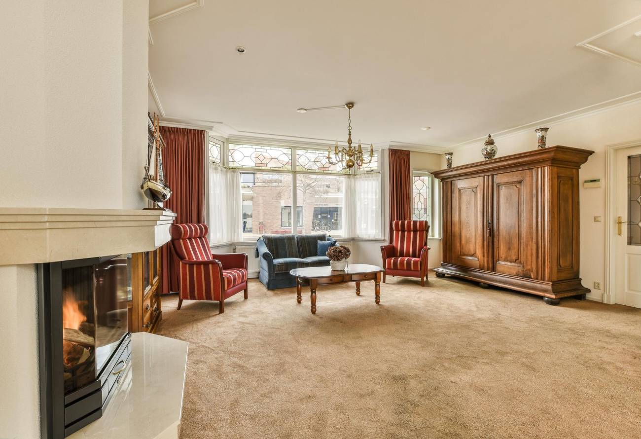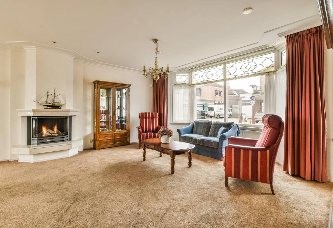 - Woonkamer met openhaard (gas) en hoge plafonds