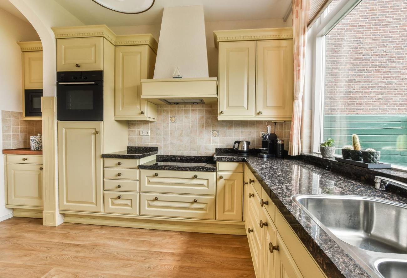 De woonkamer is v.v. vloerbedekking en een openhaard (gas). Vanuit de woonkamer is er toegang naar een tussenhal met deuren naar de lichte keuken, bijkeuken en toilet. Vanuit de hal is er ook een deur naar de achtertuin. De keuken is v.v. een L-opstelling en allerhande inbouw apparatuur, vanuit hier is er prachtig uitzicht op de achtertuin en het water!
