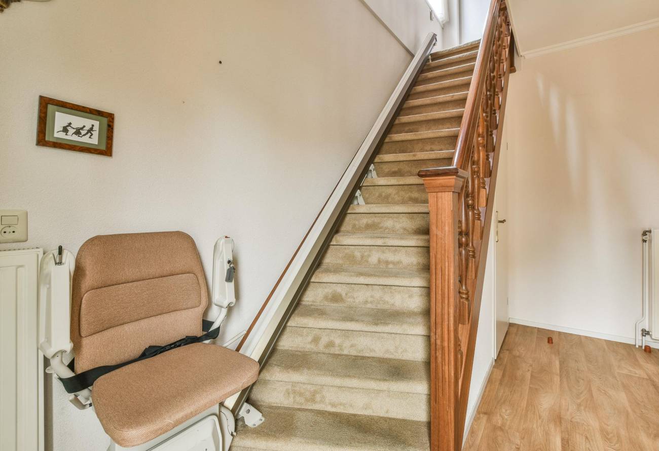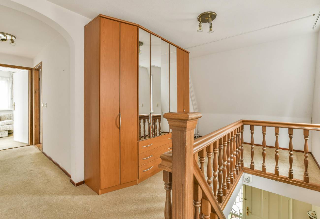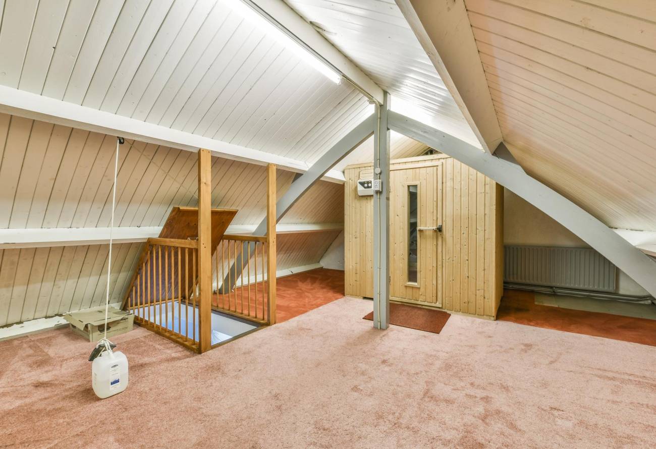 Vaste trap naar de riante zolderkamer met de opstelling van de cv-installatie en een heerlijke sauna!