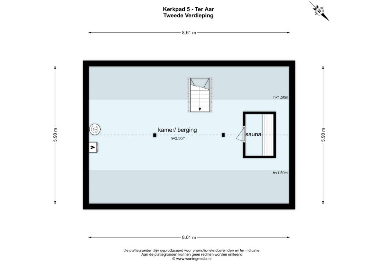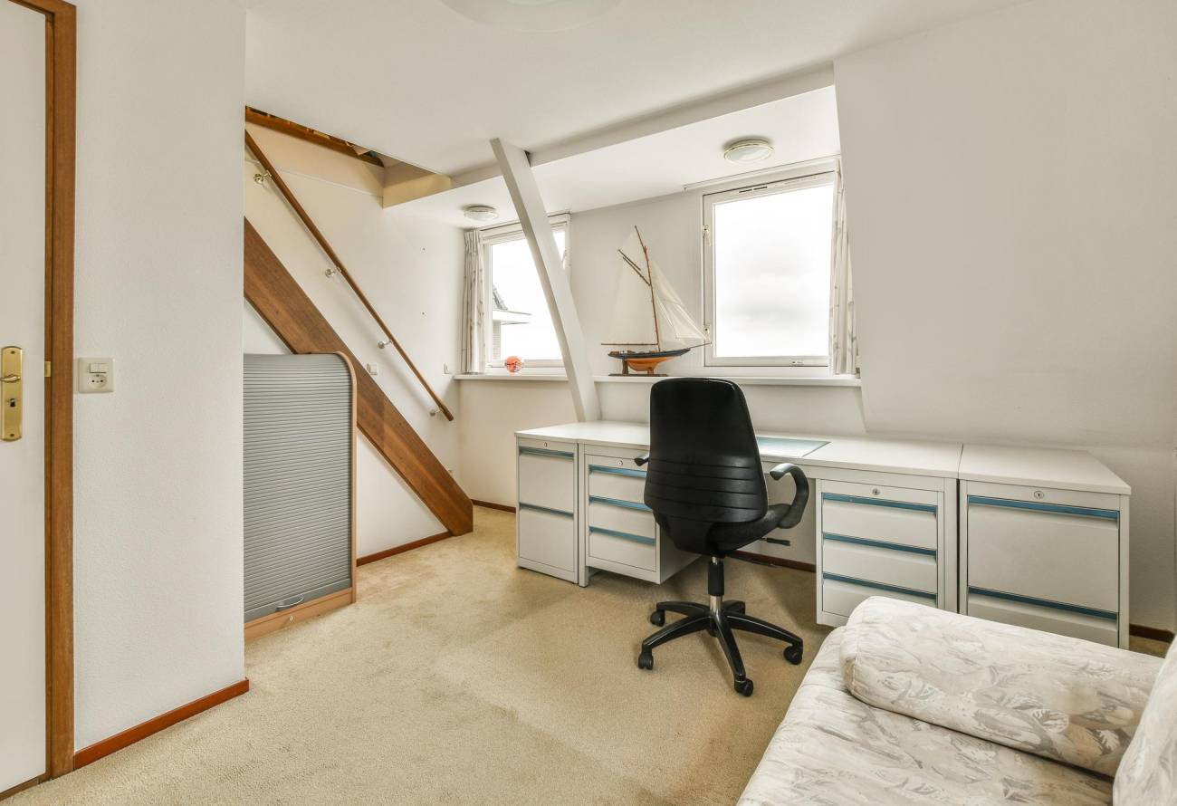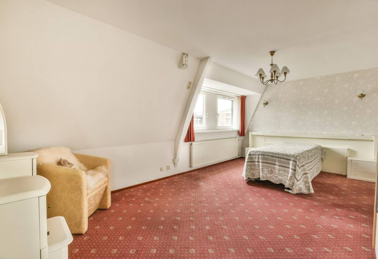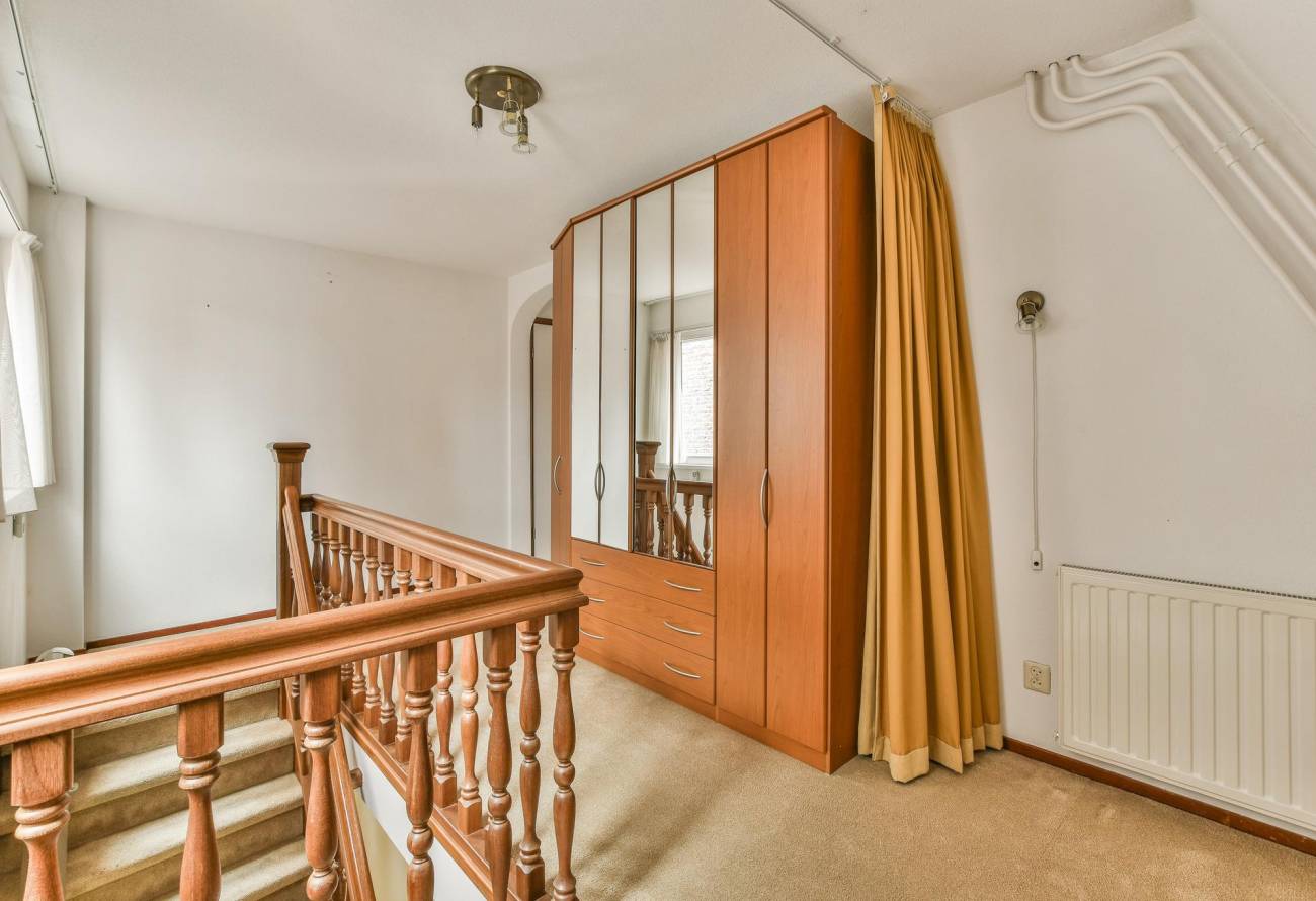 Vaste trap naar de riante zolderkamer met de opstelling van de cv-installatie en een heerlijke sauna!