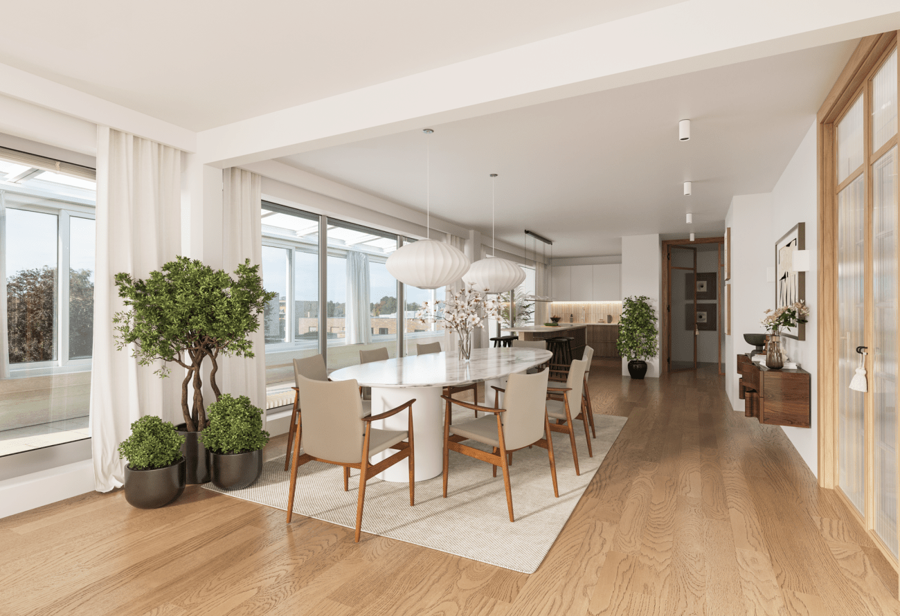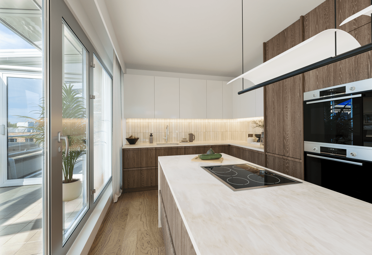 Het penthouse is netjes, doch enigszins gedateerd afgewerkt.