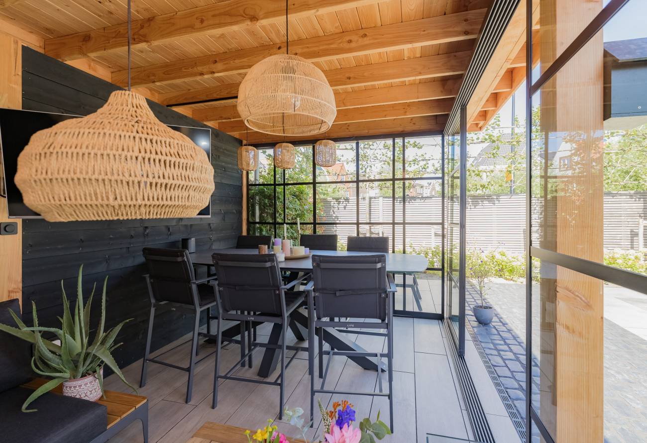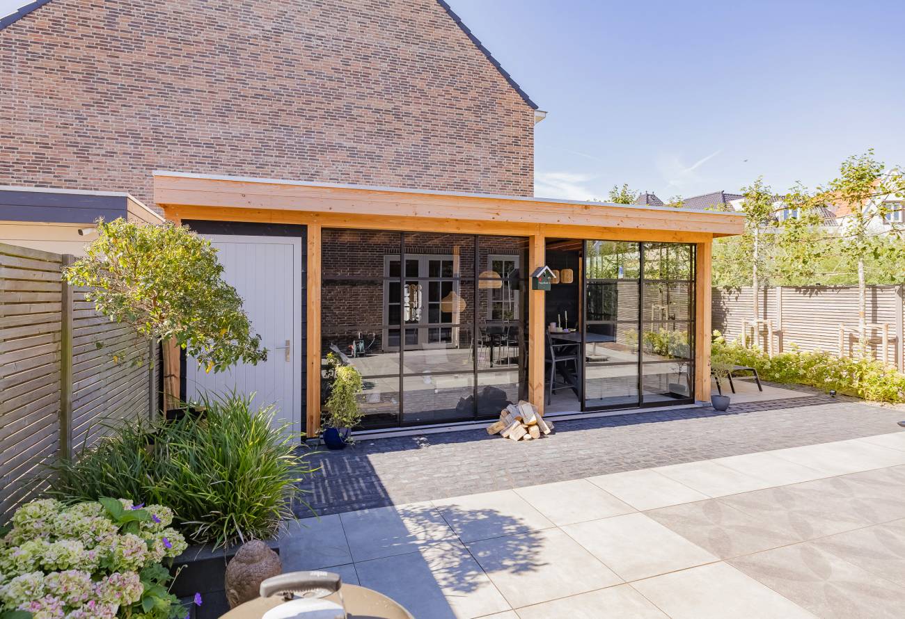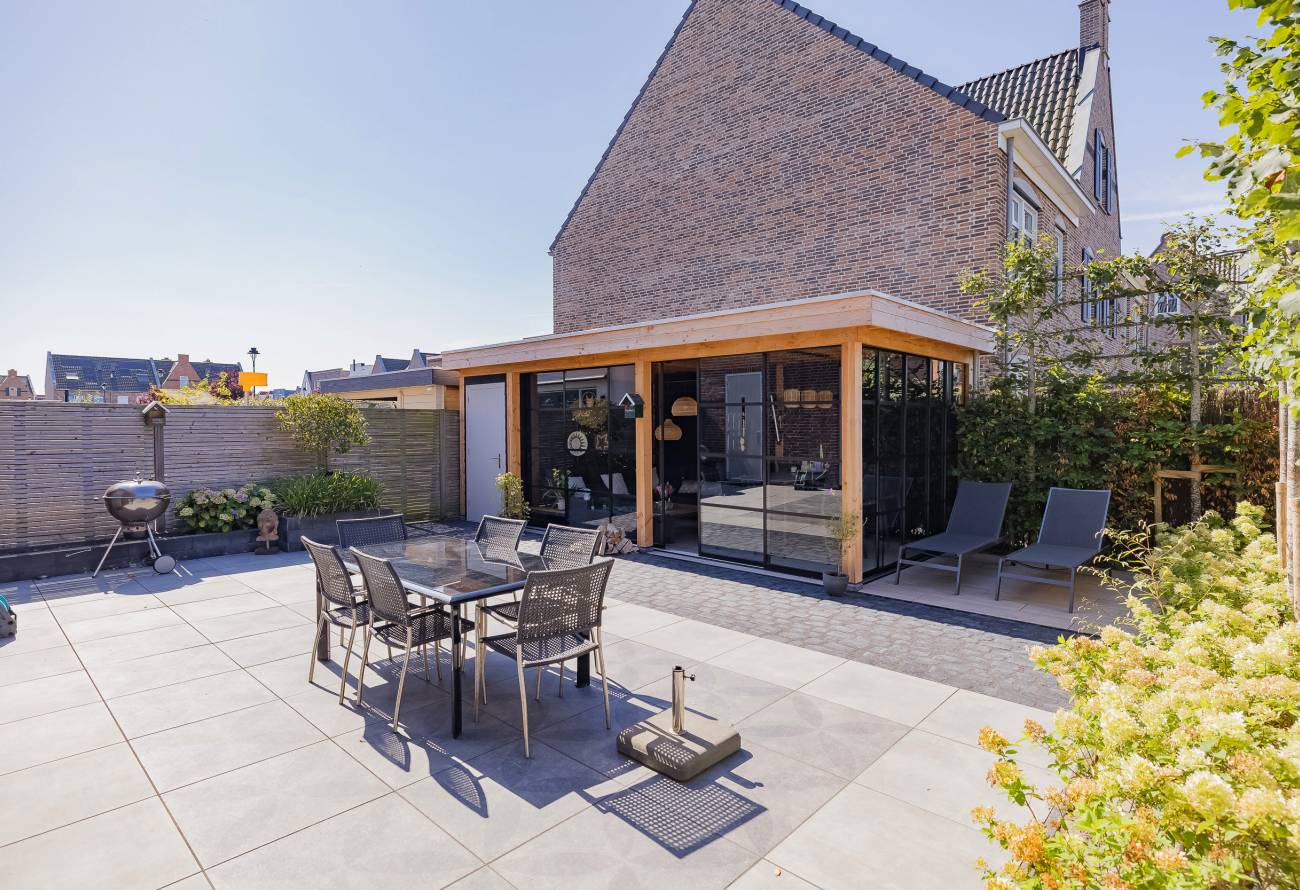 De zonnige tuin (ZW) met veranda maakt het woongenot compleet. Hier kun je alle seizoenen genieten van het buitenleven. De achterom zorgt voor een handige extra toegang tot de achtertuin.