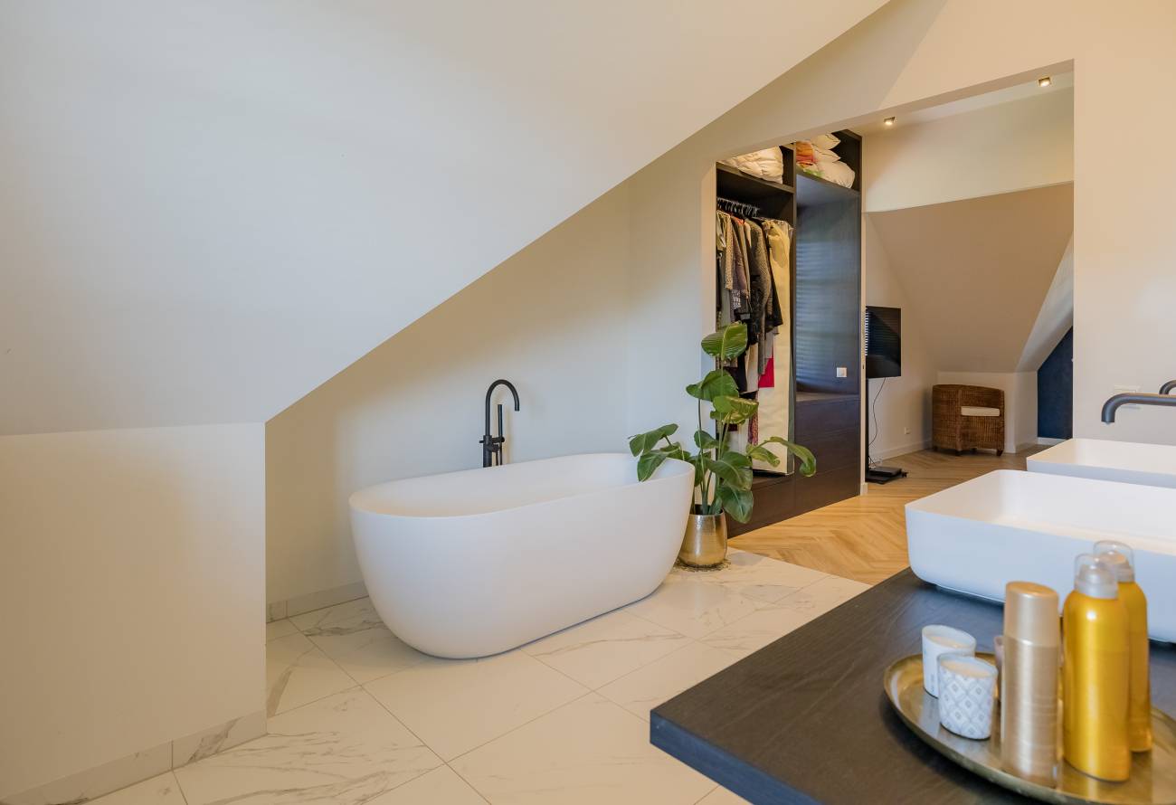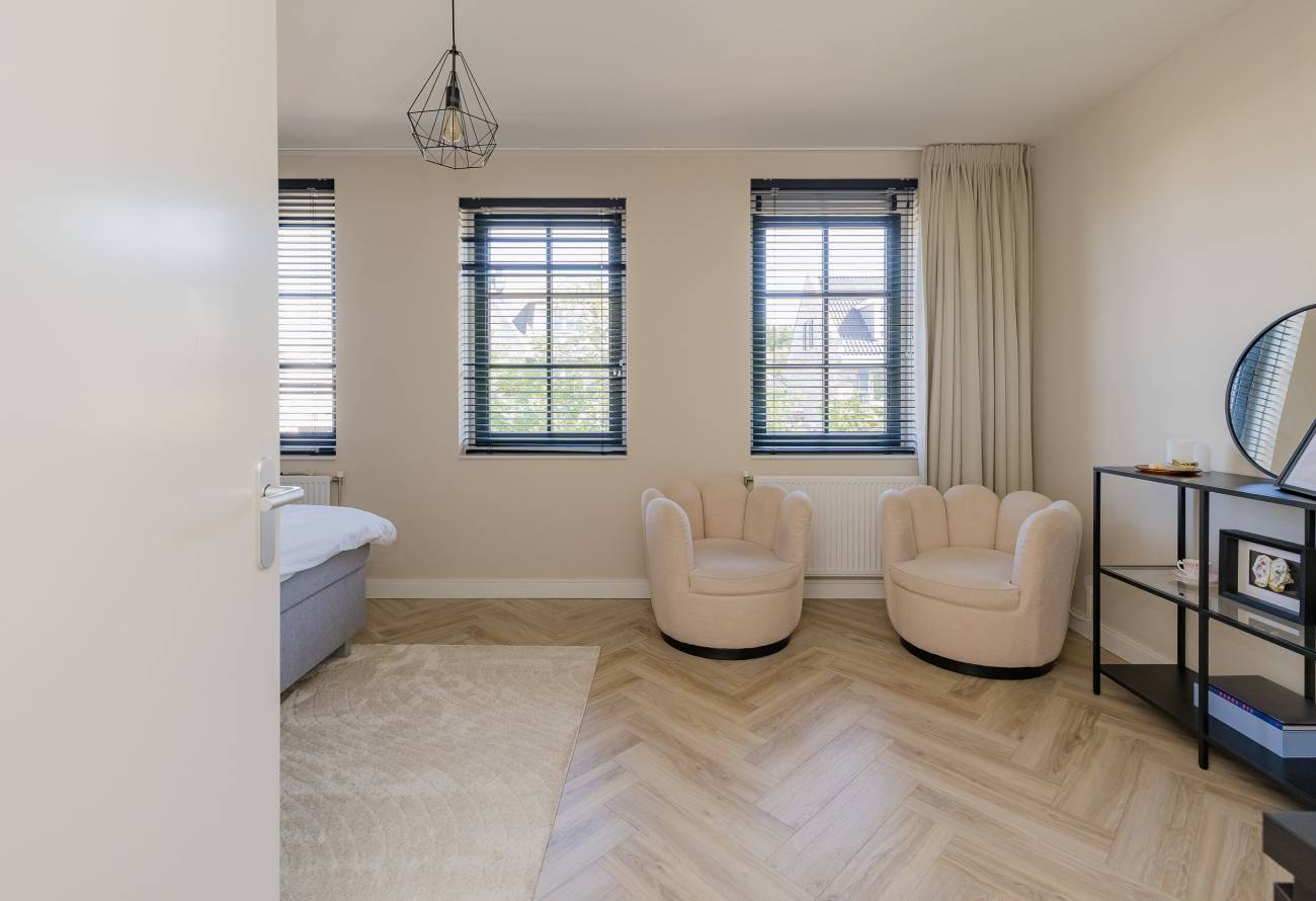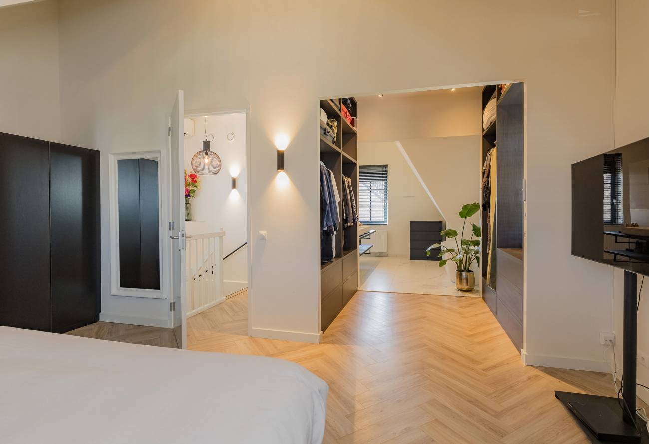 De tweede verdieping is een heerlijk privéverblijf: een royale slaapkamer met een eigen inloopkast en een ruime, luxe badkamer. Een ideale plek om volledig tot rust te komen. Tevens is er een was-/stookruimte welke is voorzien van een Japans toilet.