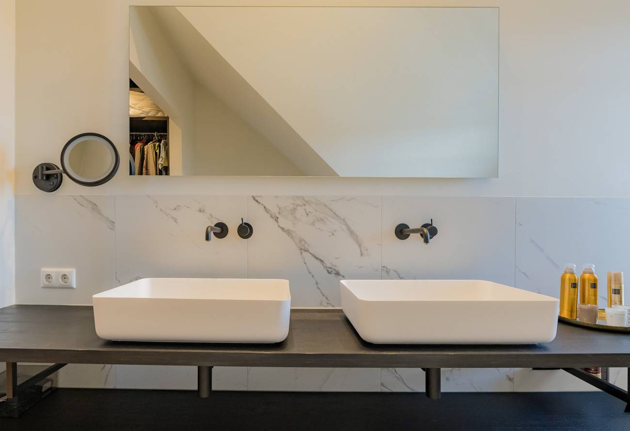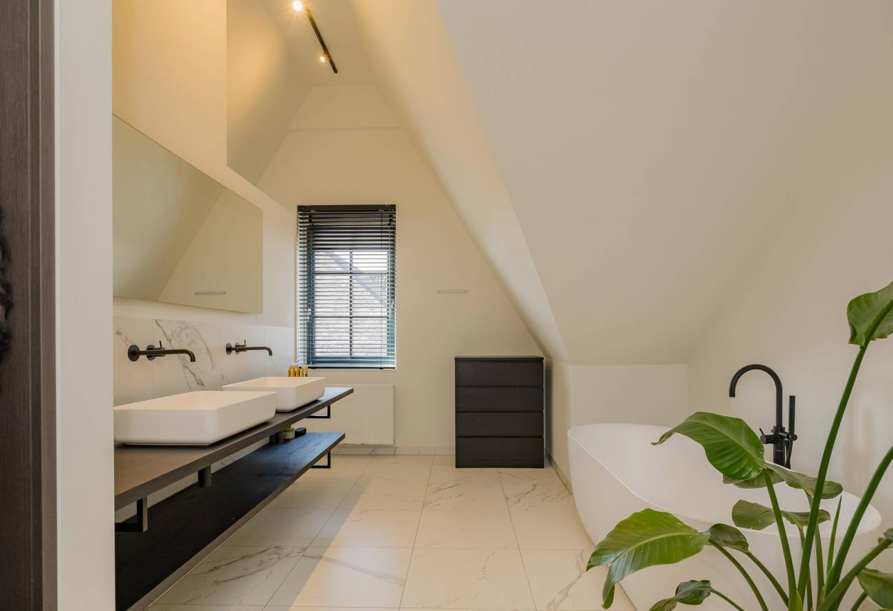 Op de eerste verdieping bevinden zich drie ruime slaapkamers met grote raampartijen die veel licht binnenlaten. De luxe badkamer is voorzien van een ruime inloopdouche en straalt comfort en stijl uit. Op de overloop is en separaat toilet.