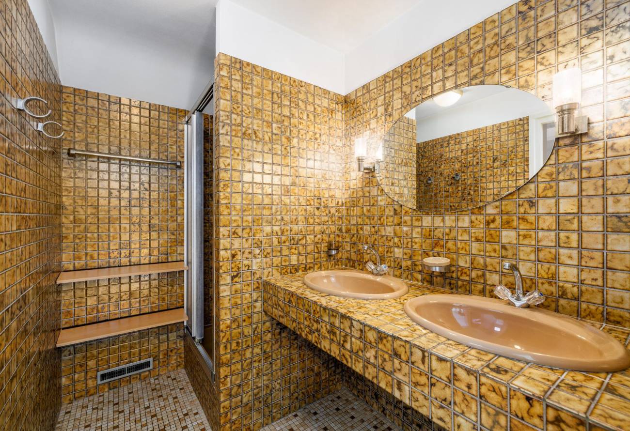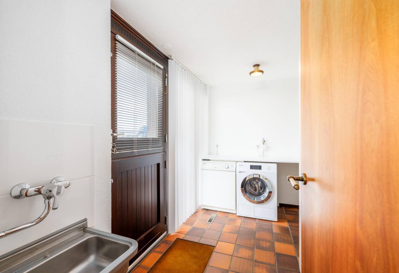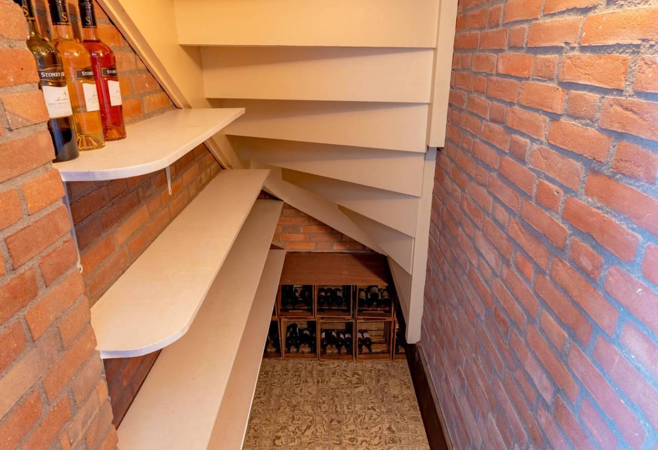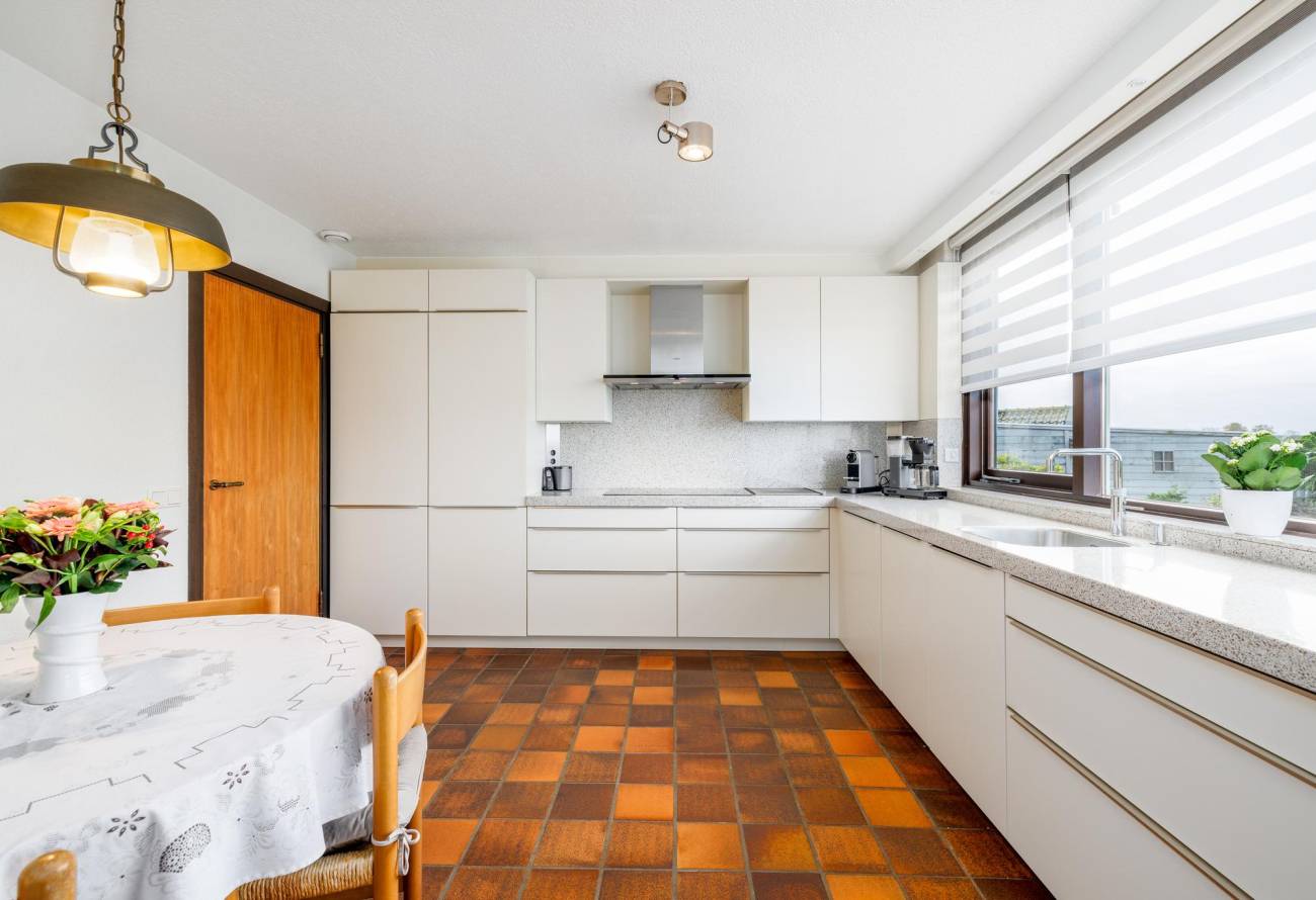 De villa heeft een zeer grote hal met garderoberuimte en een luxe toiletruimte. De royale Z-vormige woonkamer beschikt over een open haard en schuifpui naar de mooie tuin. De luxe woonkeuken is voorzien van moderne apparatuur en fraaie werkbladen. Daarnaast is er een grote bijkeuken met aansluitingen voor wasapparatuur en toegang tot de (wijn)kelder. De hoofdslaapkamer biedt veel vaste garderobekasten en een luxe badkamer met grote inloopdouche, 2e toilet, grote wastafel in meubel en badkamerkasten. Verder is er een grote werkkamer en dubbele garage met elektrische segmentdeur.