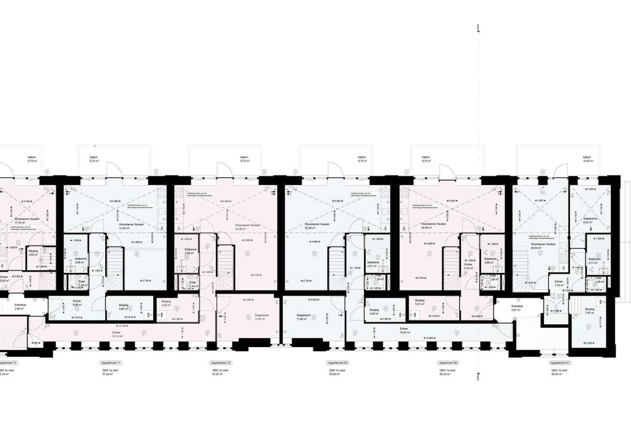 12 Koopappartementen met buitenruimten en een parkeerplaats.