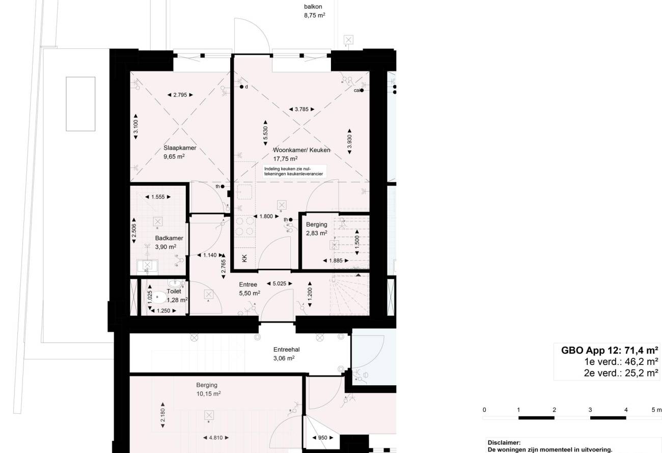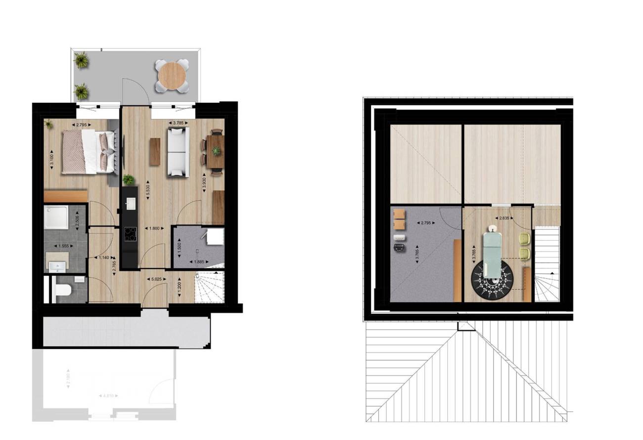 • De maisonnette appartementen (drie- of vierkamerappartementen) variëren in grootte van ca. 71 m2 tot ca. 116 m2