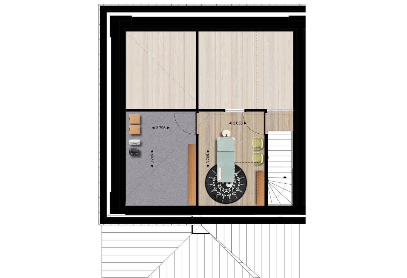 • In de maisonnette appartementen worden stompe deuren en houten kozijnen zonder bovenlicht geplaatst.