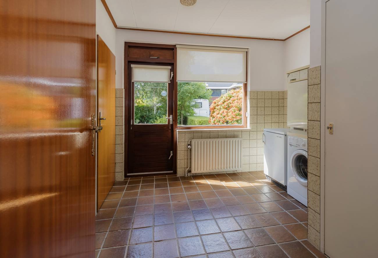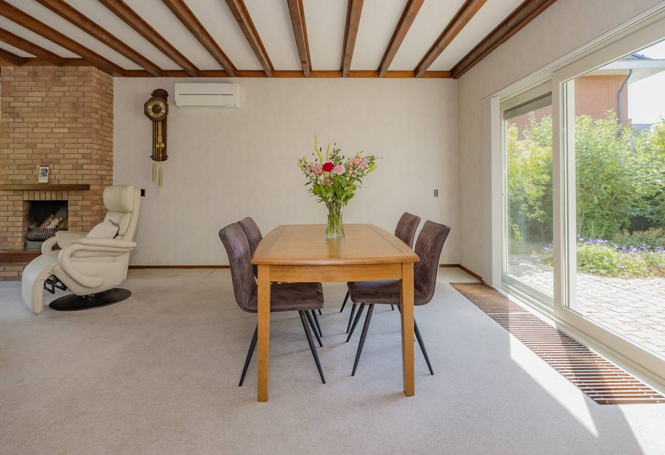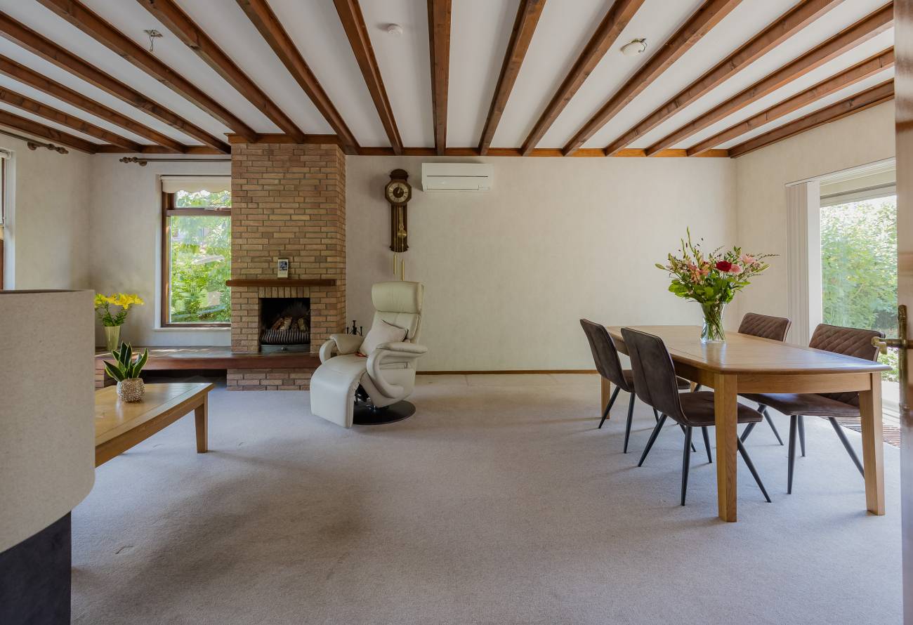 Je komt binnen in een ruime entree met een open trap die meteen een gevoel van licht en lucht geeft. Vanuit hier loop je door naar de royale woonkamer, waar grote ramen zorgen voor een veel daglicht. Met de hout gestookte haard maak je het extra gezellig in de winter, de aircoditioning houdt het lekker koel in de zomer. De gesloten keuken geeft toegang tot de praktische bijkeuken met plek voor de wasapparatuur. Extra fijn is de slaapkamer op de begane grond: ideaal als je levensloopbestendig wilt wonen, maar ook uitstekend geschikt als werkkamer of speelruimte.
