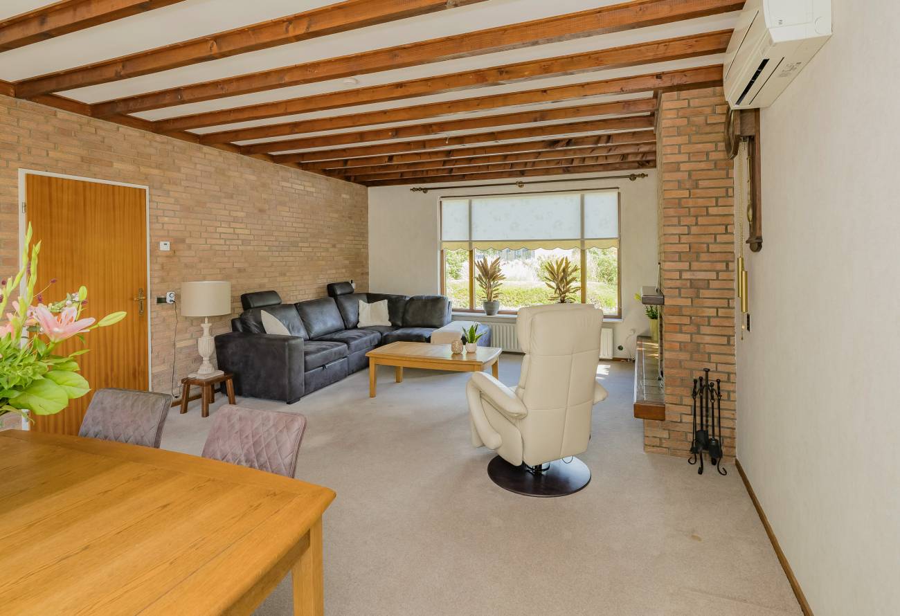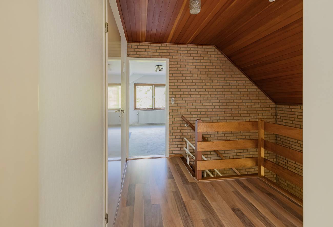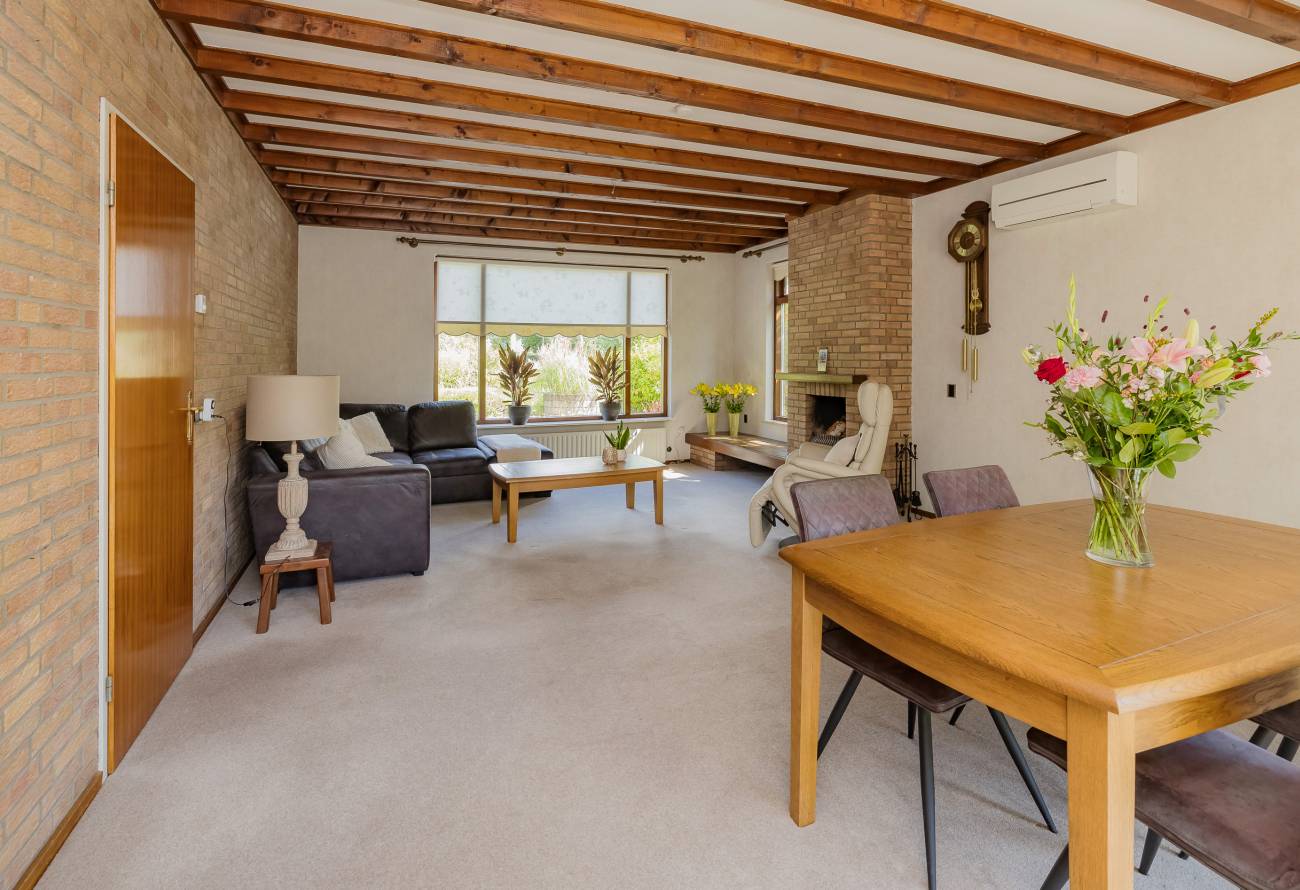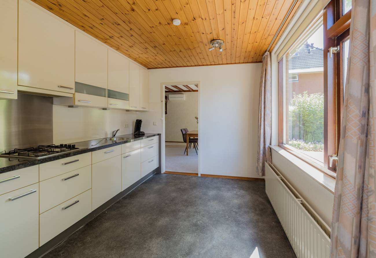 Je komt binnen in een ruime entree met een open trap die meteen een gevoel van licht en lucht geeft. Vanuit hier loop je door naar de royale woonkamer, waar grote ramen zorgen voor een veel daglicht. Met de hout gestookte haard maak je het extra gezellig in de winter, de aircoditioning houdt het lekker koel in de zomer. De gesloten keuken geeft toegang tot de praktische bijkeuken met plek voor de wasapparatuur. Extra fijn is de slaapkamer op de begane grond: ideaal als je levensloopbestendig wilt wonen, maar ook uitstekend geschikt als werkkamer of speelruimte.