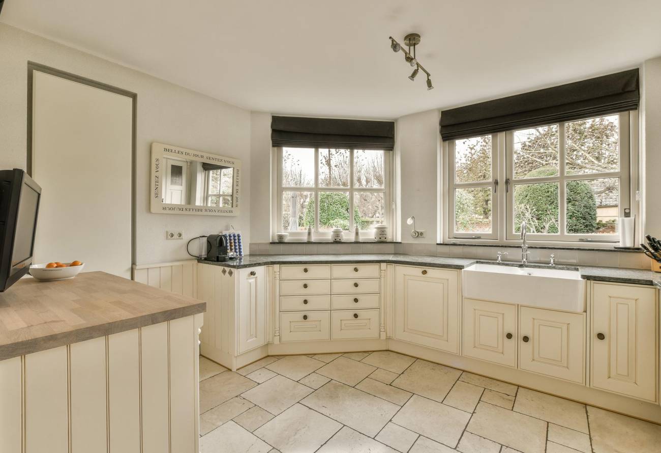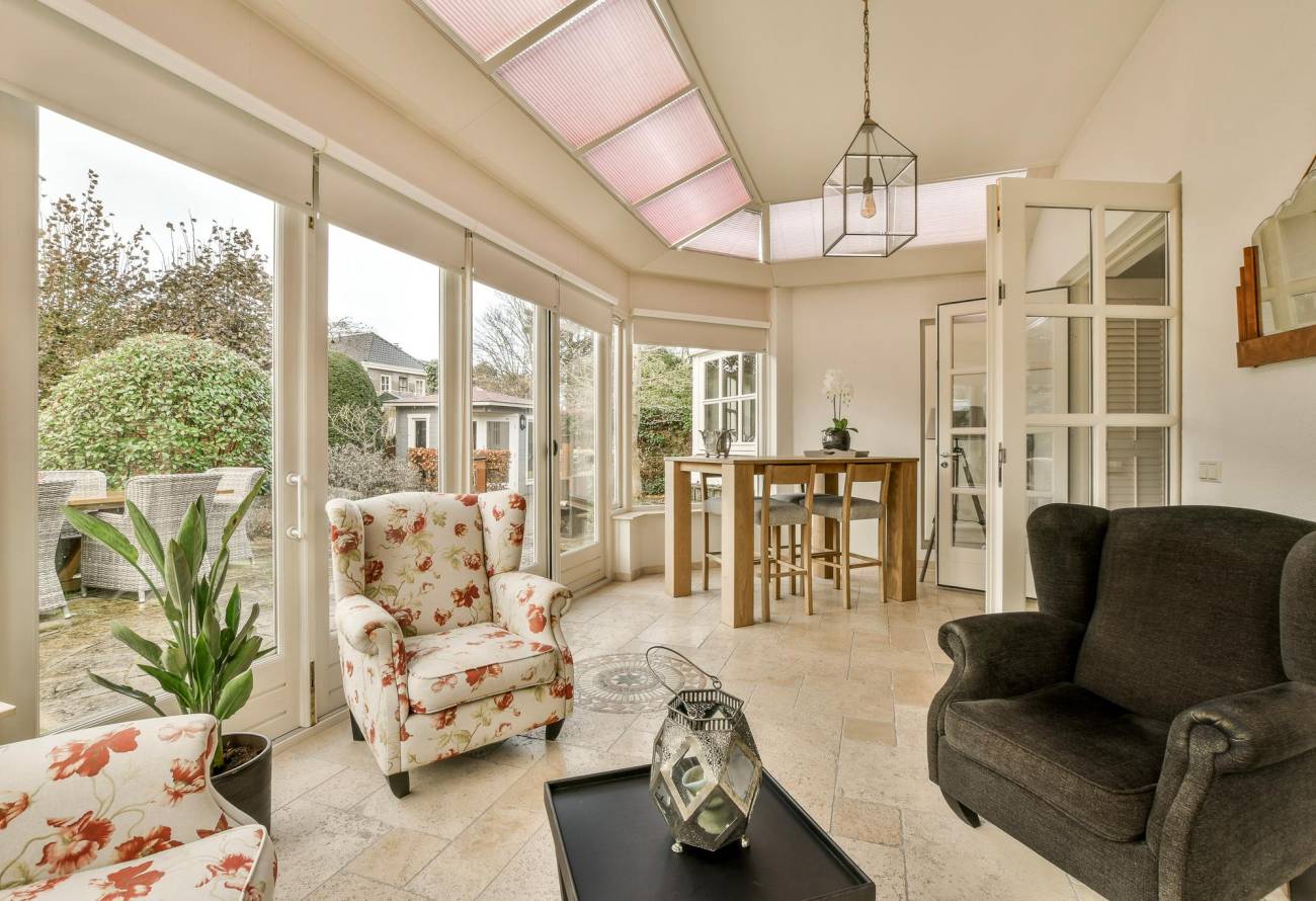De hal, de keuken en de serre zijn voorzien van een natuurstenen vloer waarbij de vloer in de serre is voorzien van vloerverwarming.