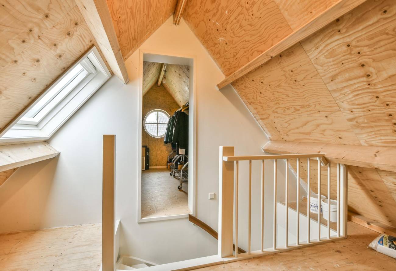 Een vaste trap leidt naar de 2e etage waar nog 1 of 2 slaapkamers te realiseren zijn. Tevens staat hier de cv-ketel opgesteld.