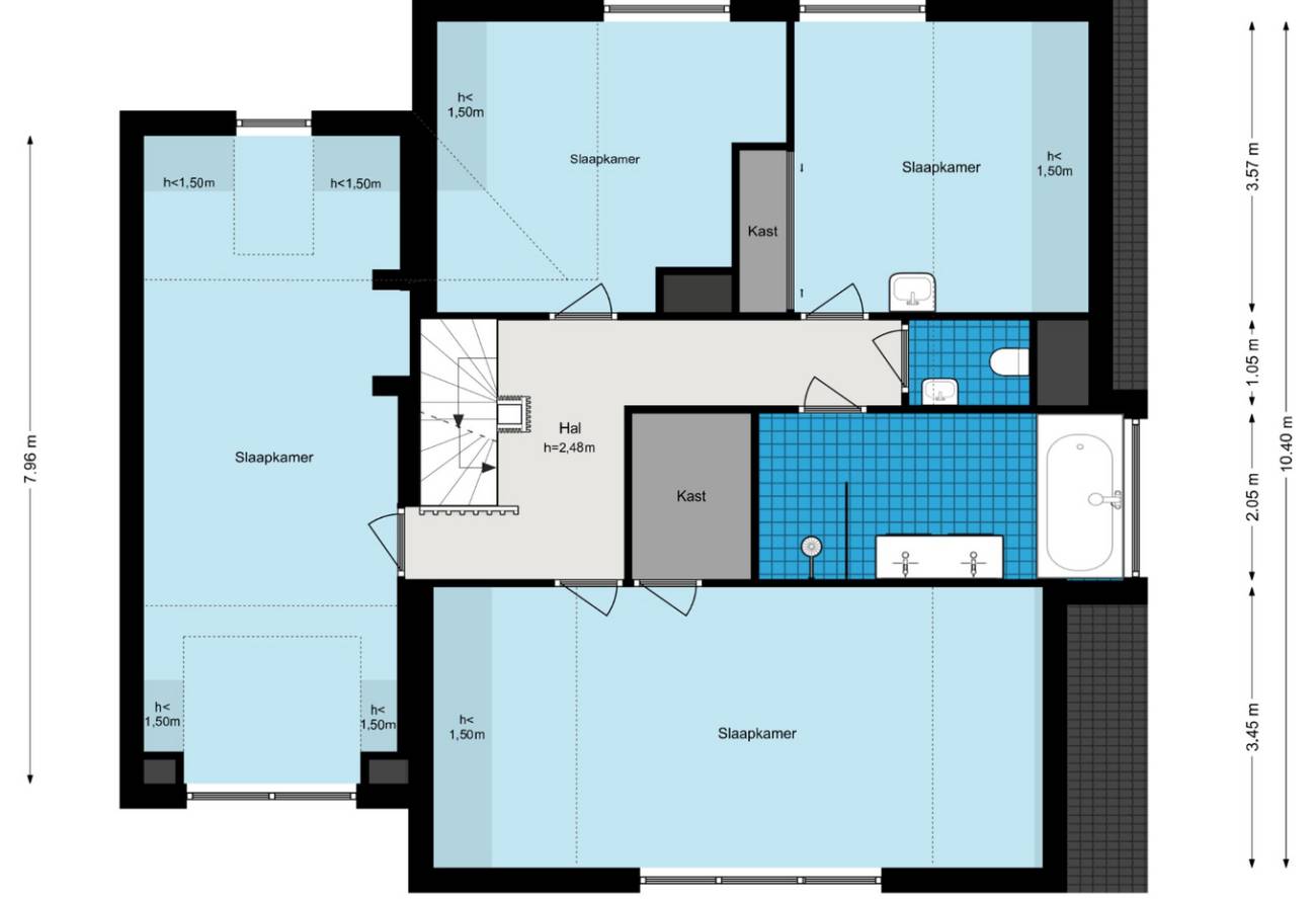 Op deze etage bevinden zich een riante ouderslaapkamer met inloopkast, 3 ruime slaapkamers, een luxe moderne badkamer met vloerverwarming en een separaat toilet.