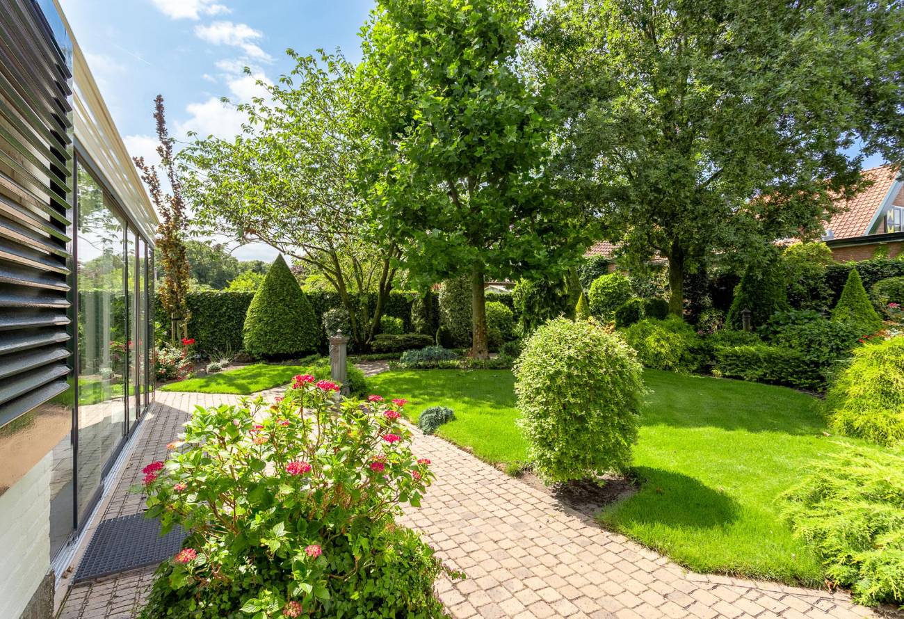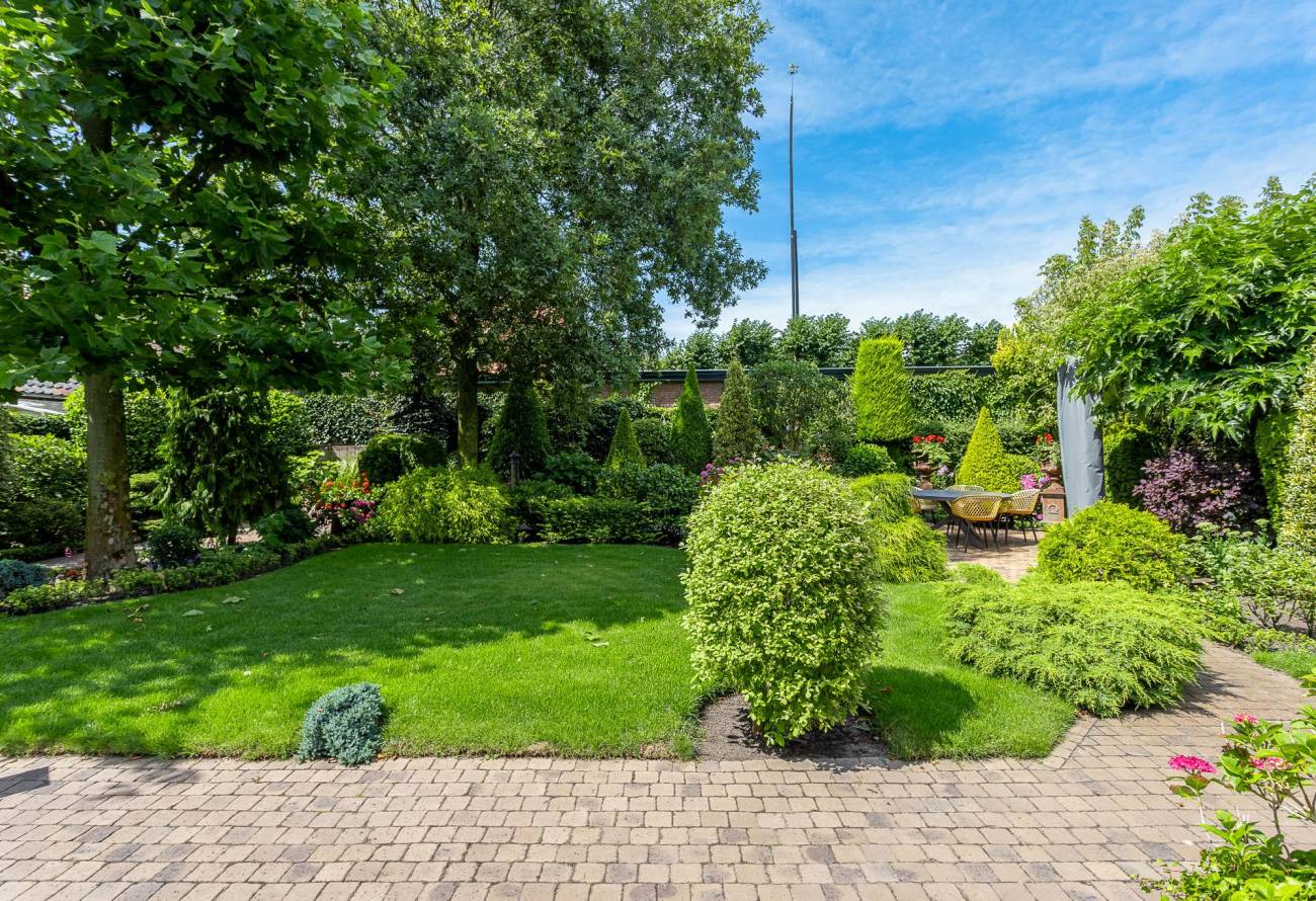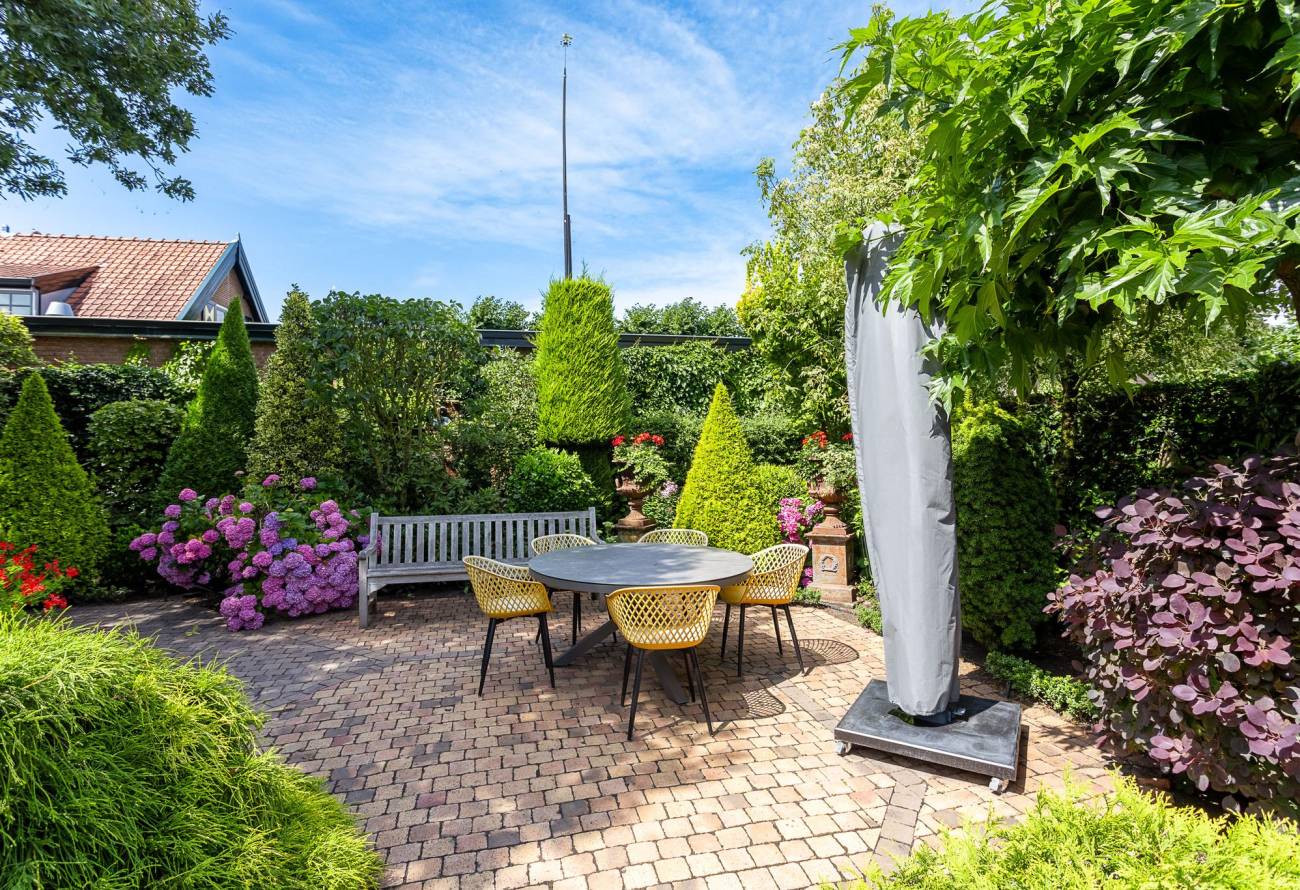 De fraai aangelegde tuin heeft meerdere terrassen, een sproei installatie met eigen bron, elektra, verlichting en een buitenkraan. De schietpaal van het laatst overgebleven originele Schuttershof van Nederland, Gilde van St. Joris (1477), is vanuit de tuin goed zichtbaar.