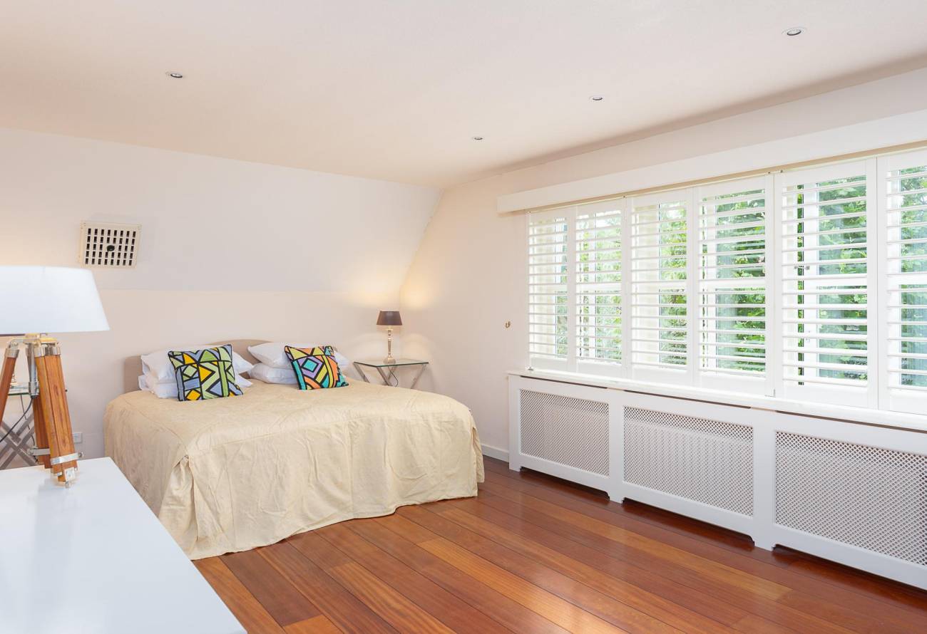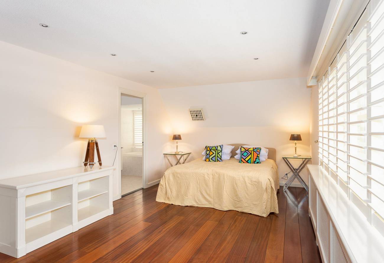 Hier is een ruime overloop, 4 slaapkamers en 2 badkamers. Op de vloer ligt Jatobahout. De ouderslaapkamer heeft vaste kasten, een groot raam met uitzicht op de tuin en een eigen ruime badkamer.